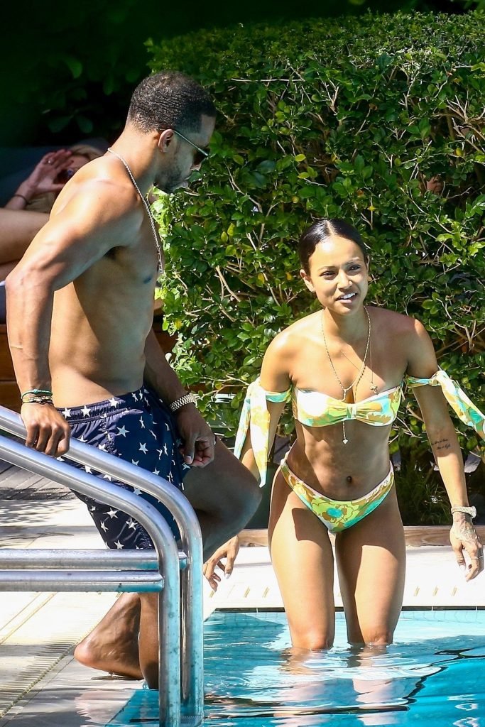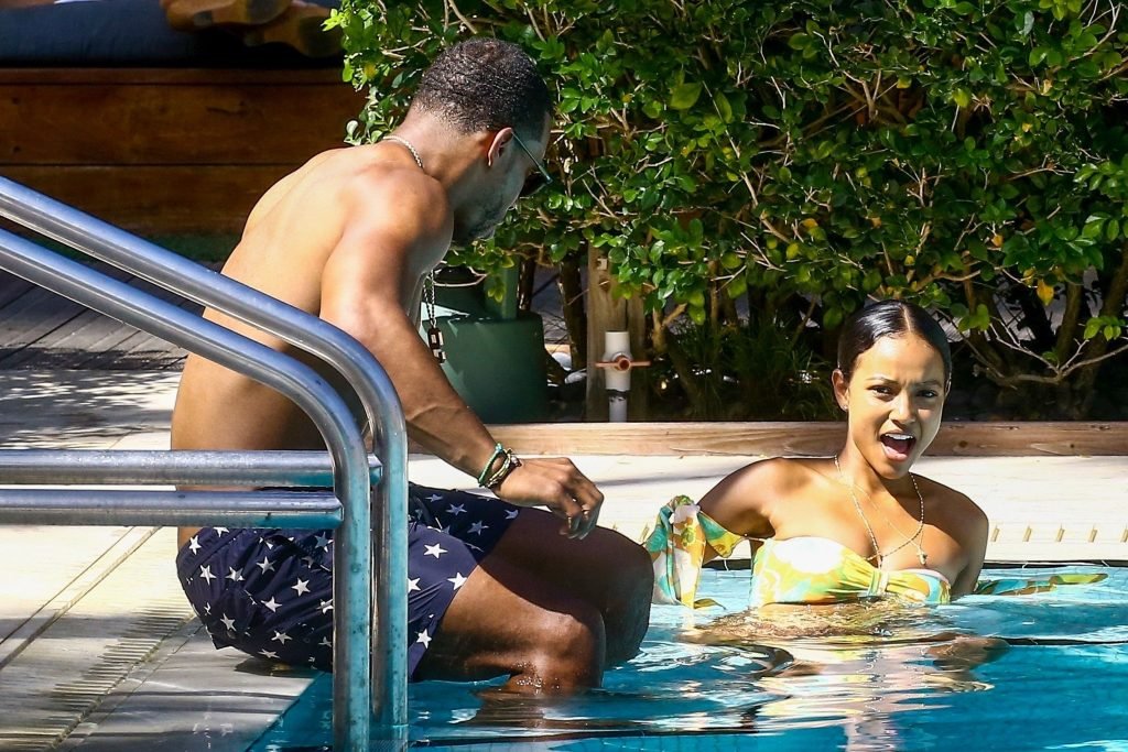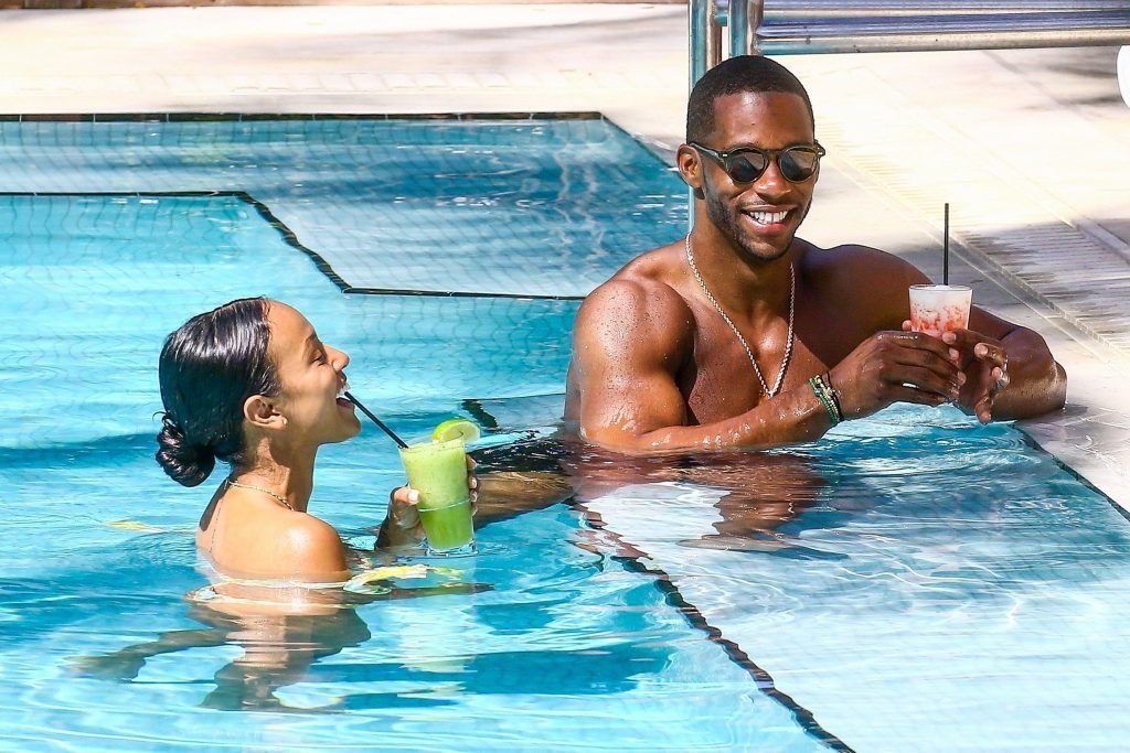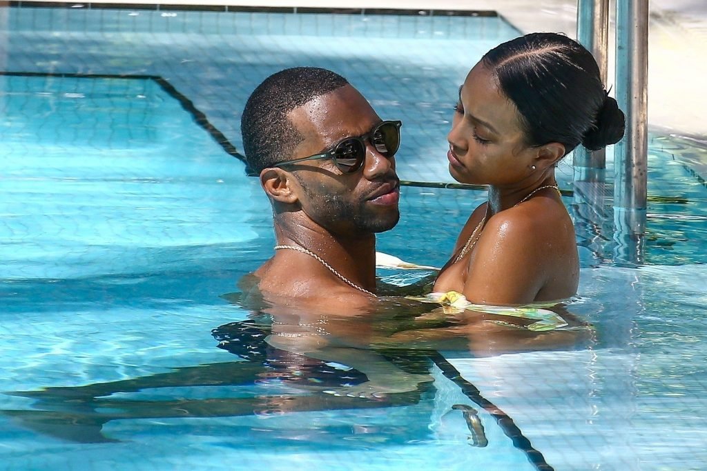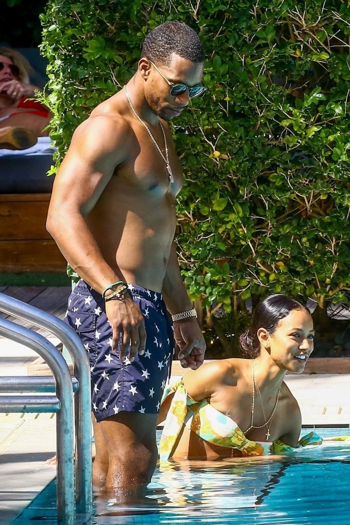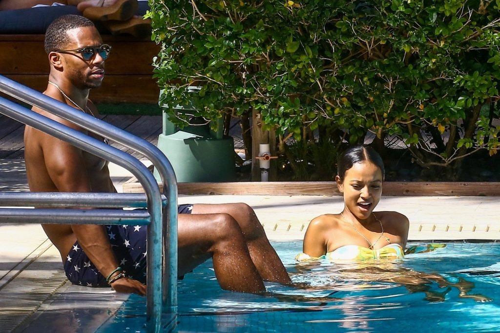 Karrueche Tran и американский футболист Виктор Круз наслаждаются днем вместе у бассейна в Майами, 13.04.2018. Горячая брюнетка продемонстрировала свою фигуру в отеле. Karrueche Tran — модель, дизайнер, актриса телевидения и кино (Claws (2017), Only for One Night (2016)). Возраст – 29 лет.