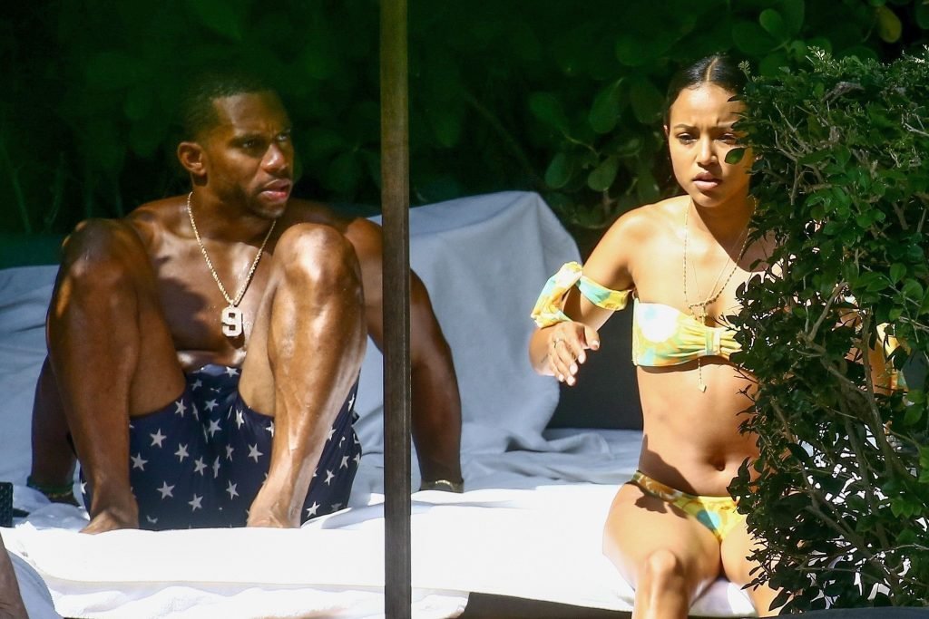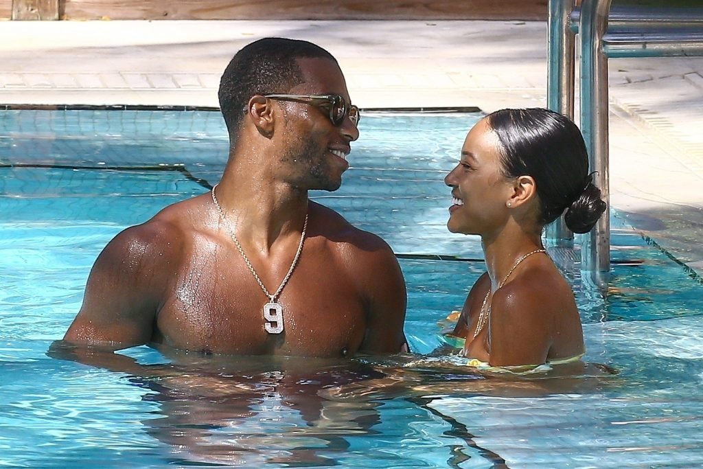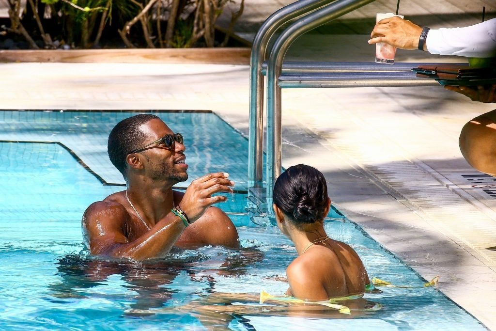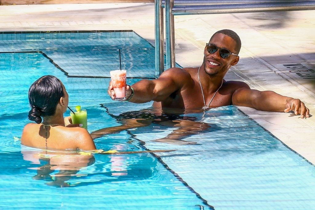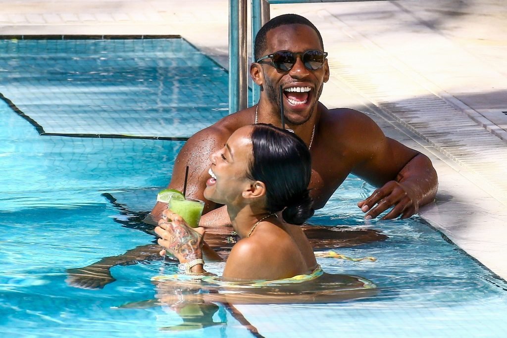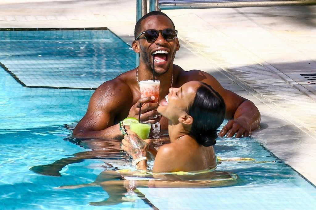 Karrueche Tran и американский футболист Виктор Круз наслаждаются днем вместе у бассейна в Майами, 13.04.2018. Горячая брюнетка продемонстрировала свою фигуру в отеле. Karrueche Tran — модель, дизайнер, актриса телевидения и кино (Claws (2017), Only for One Night (2016)). Возраст – 29 лет.