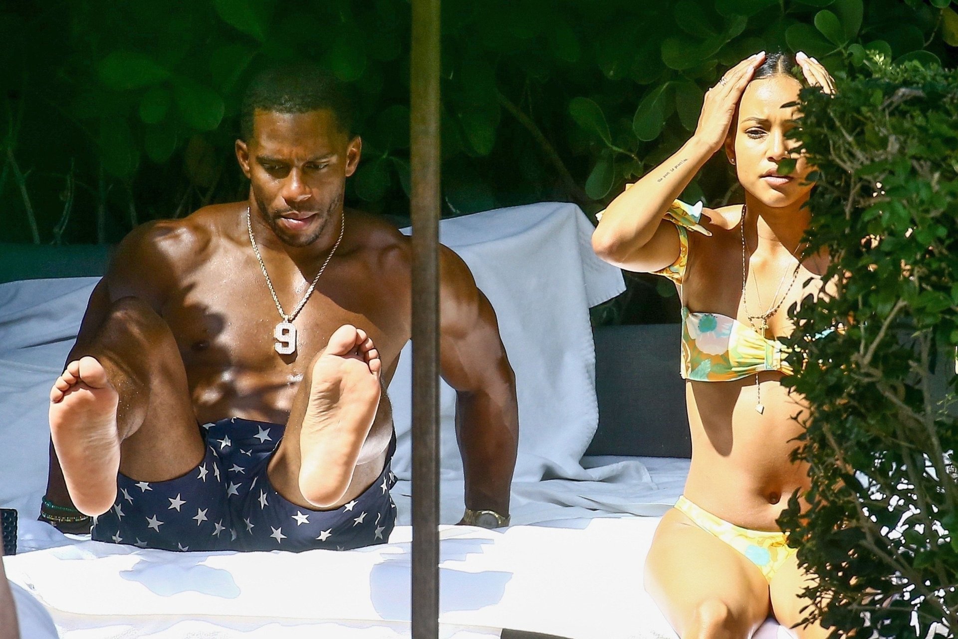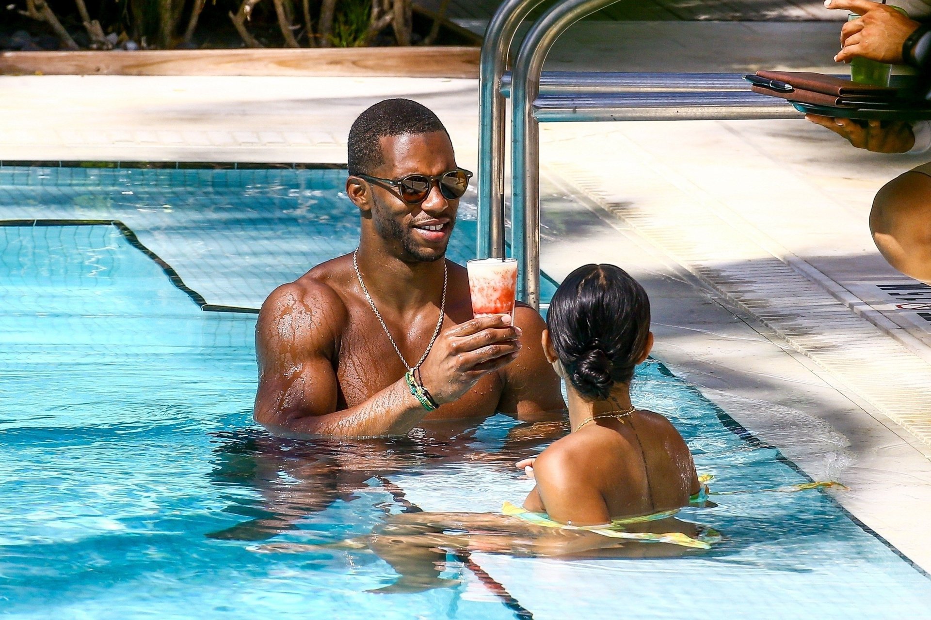 Karrueche Tran и американский футболист Виктор Круз наслаждаются днем вместе у бассейна в Майами, 13.04.2018. Горячая брюнетка продемонстрировала свою фигуру в отеле. Karrueche Tran — модель, дизайнер, актриса телевидения и кино (Claws (2017), Only for One Night (2016)). Возраст – 29 лет.