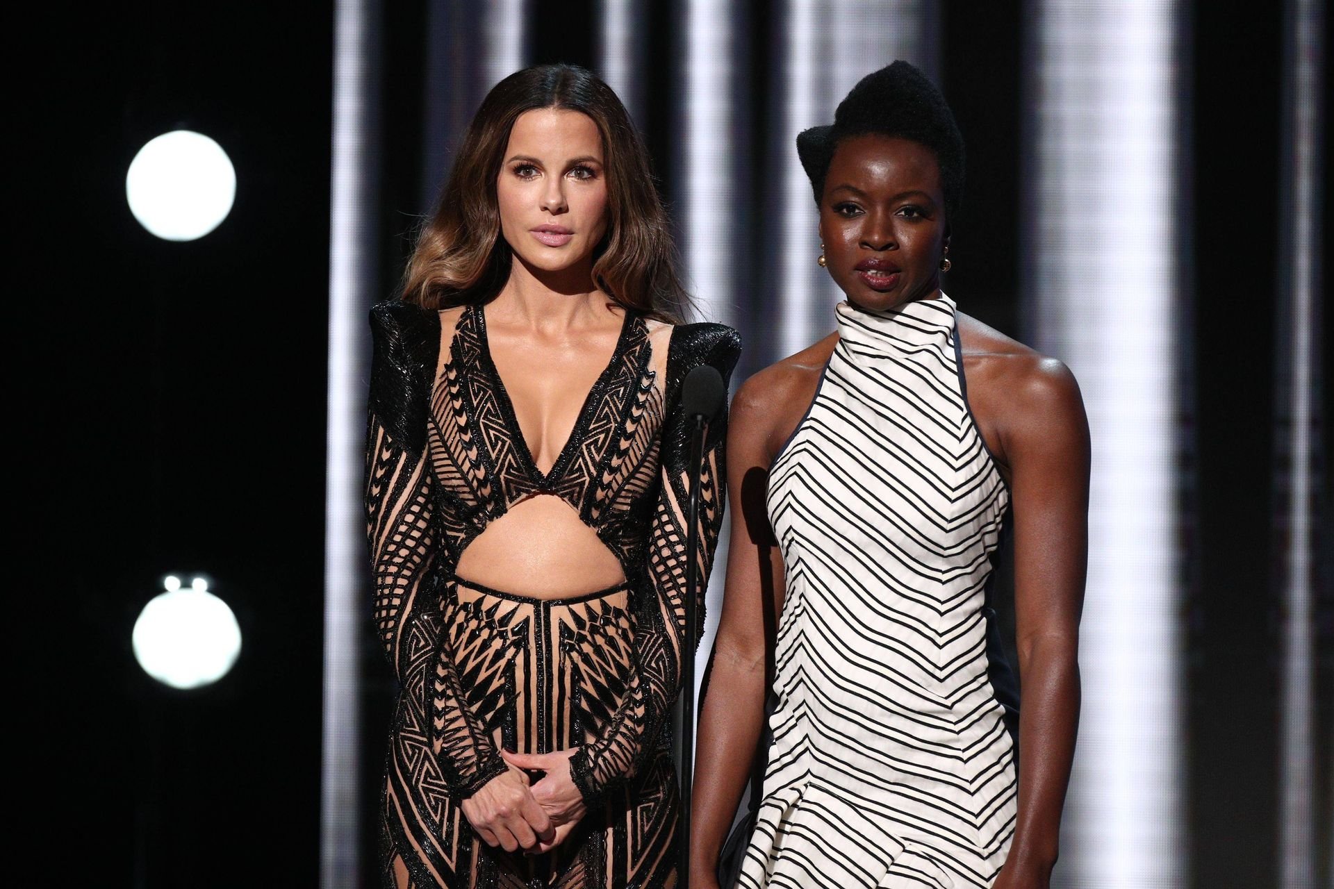Актриса Кейт Бекинсейл продемонстрировала свои сексуальные ноги, ступни и декольте на 50-й церемонии вручения премий NAACP Image Awards в Голливуде, 30.03.2019.