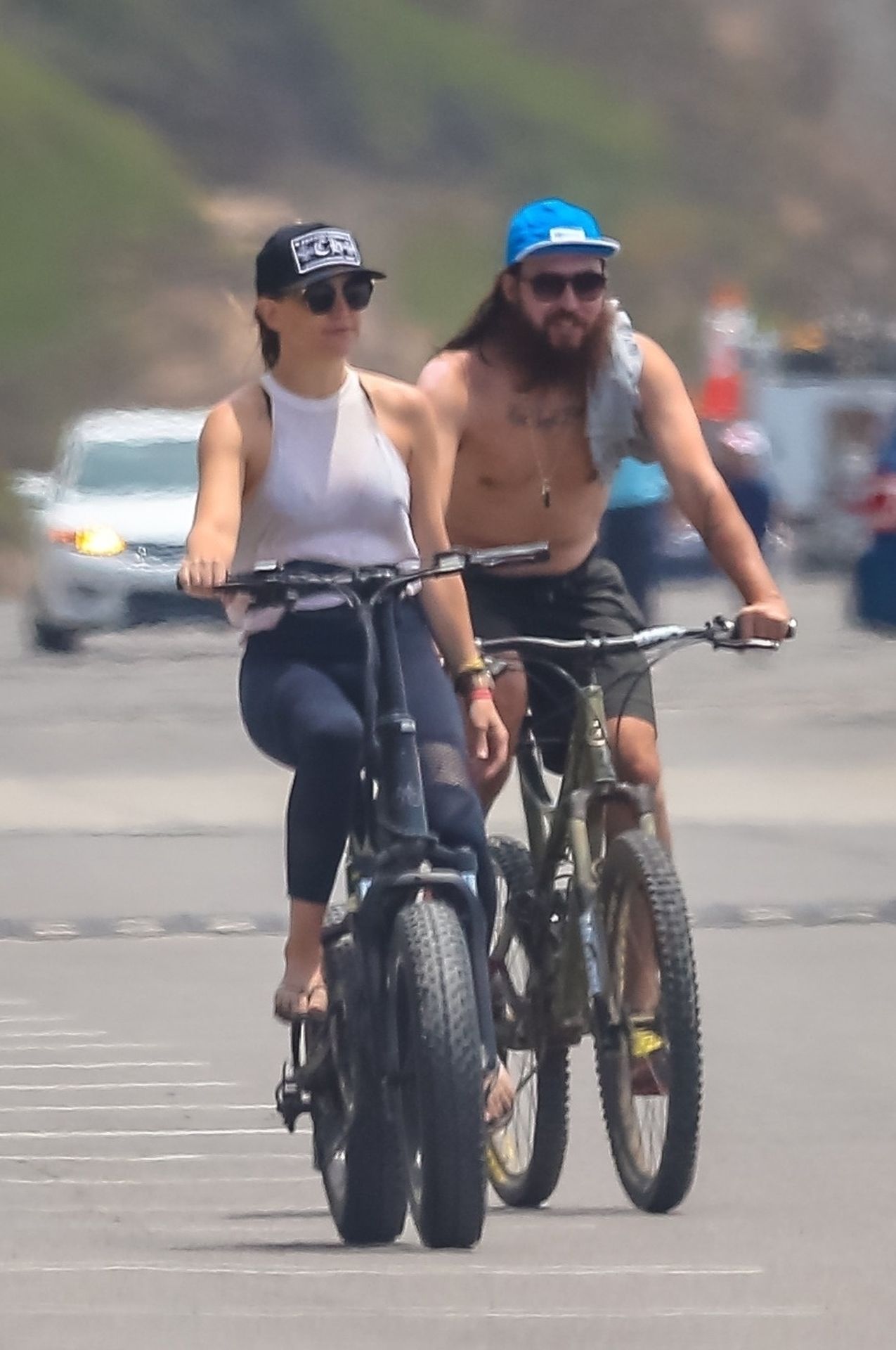 Кейт Хадсон и Дэнни Фудзикава наслаждаются велопрогулкой в Малибу, 02.06.2020. 41-летняя актриса демонстрирует свои прелести на улице.