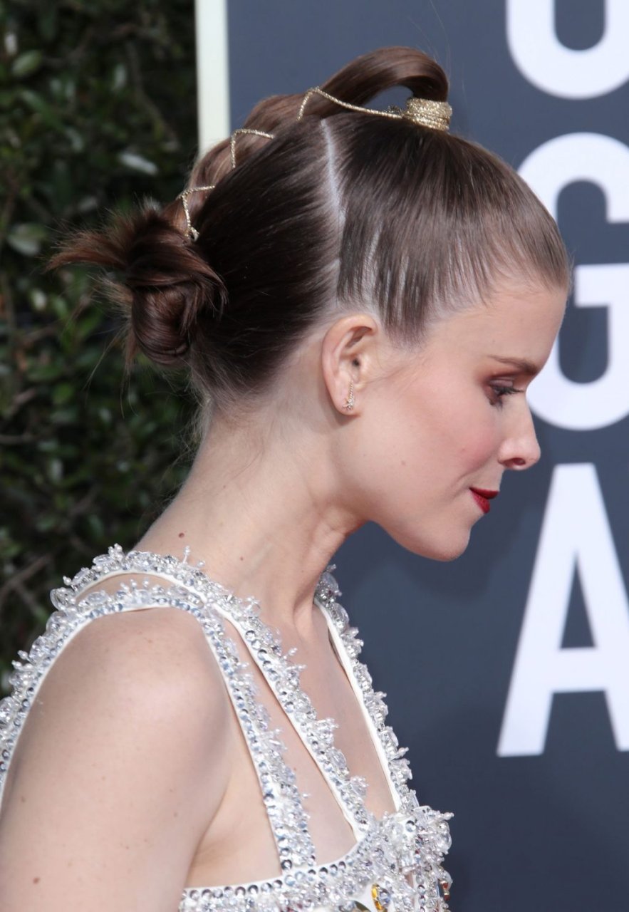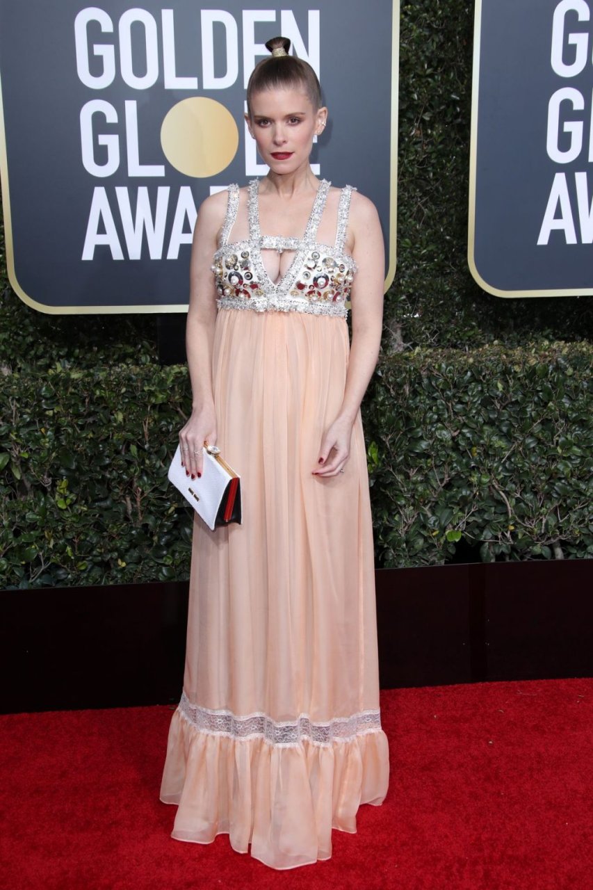 Американская актриса Кейт Мара (35) демонстрирует декольте на 76-й ежегодной церемонии вручения премии «Золотой глобус» в Беверли-Хиллз, 01.06.2019.