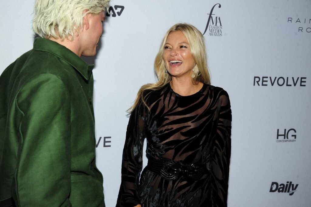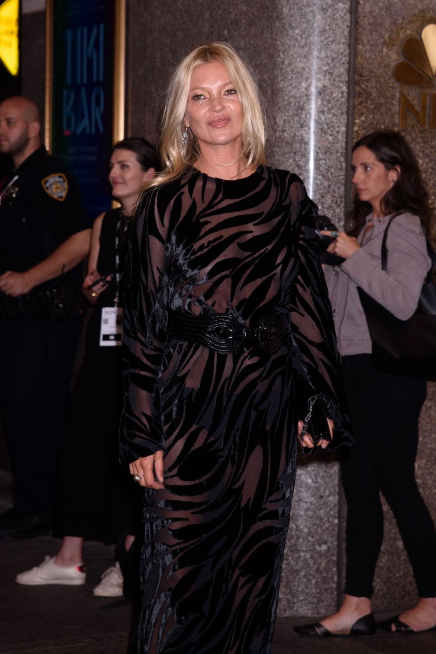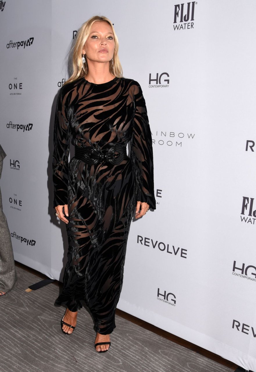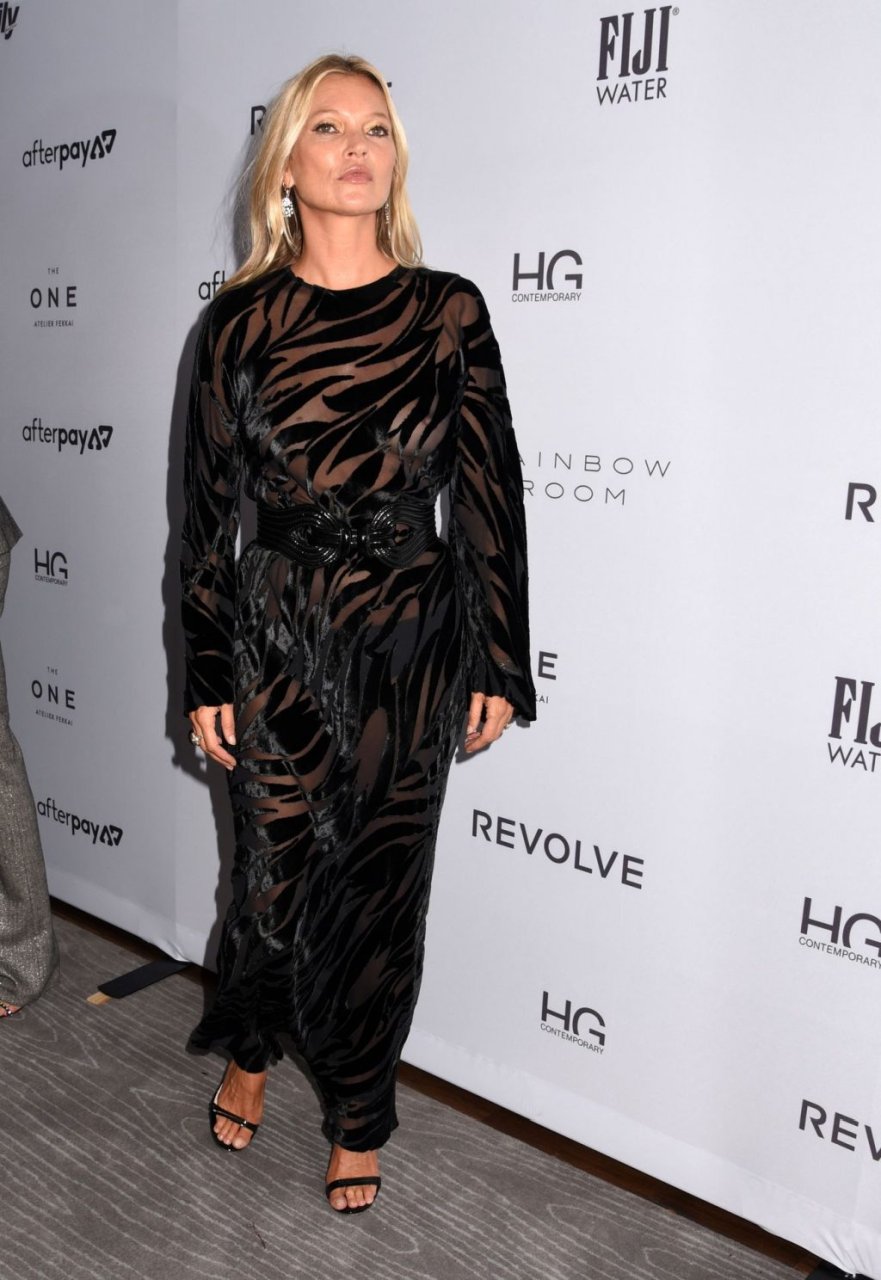 Супермодель Кейт Мосс в откровенном прозрачном макси-черном платье прибывает на церемонию награждения Daily Front Row Fashion Media Awards, которая проходила в Rainbow Room в Рокфеллер-центре в Нью-Йорке, 09.05.2019. 45-летняя супермодель в отличной форме! Она сильно похудела в последнее время, выглядит подтянутой и здоровой.