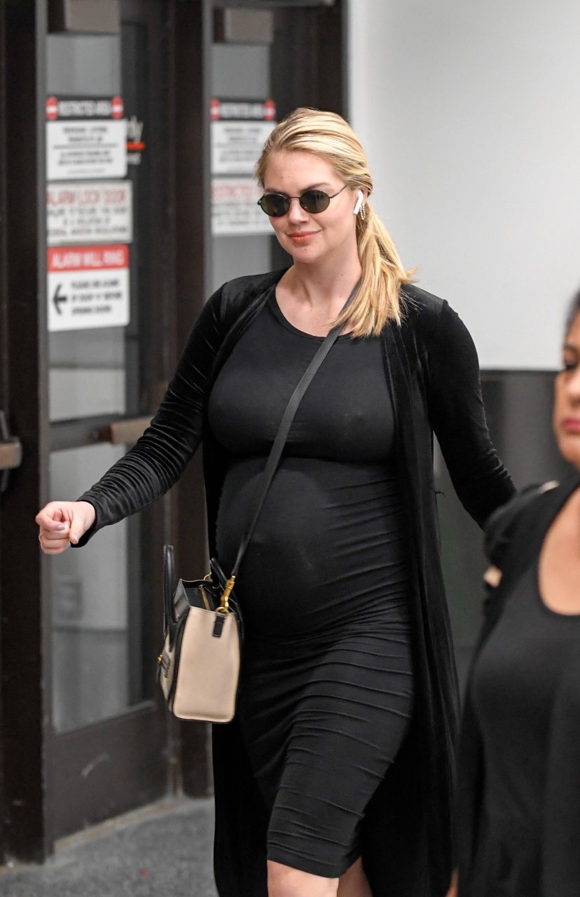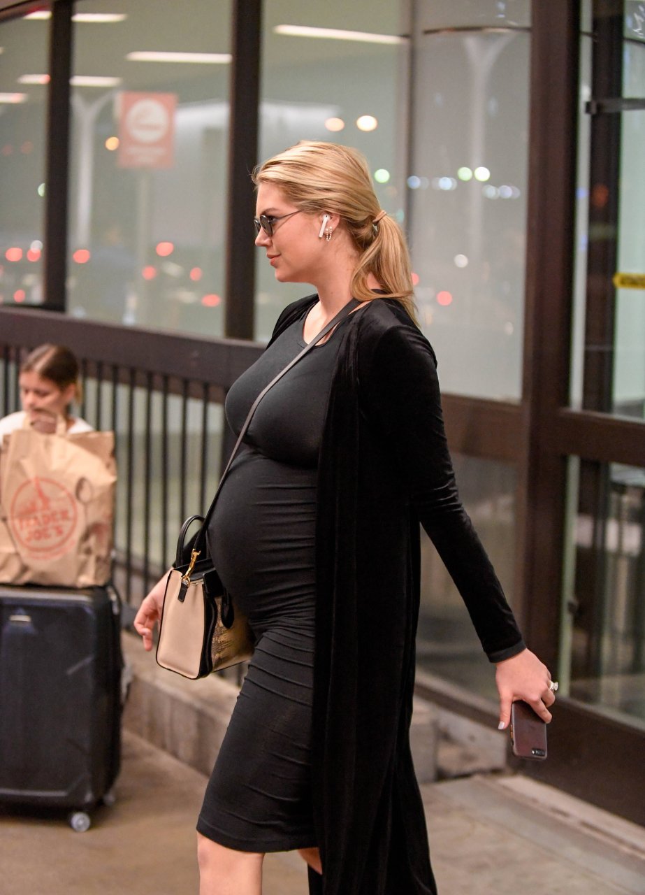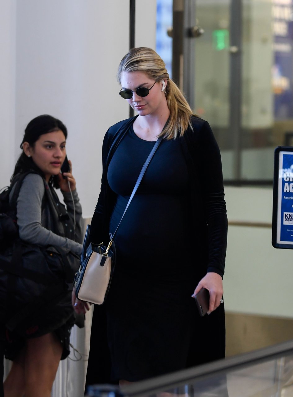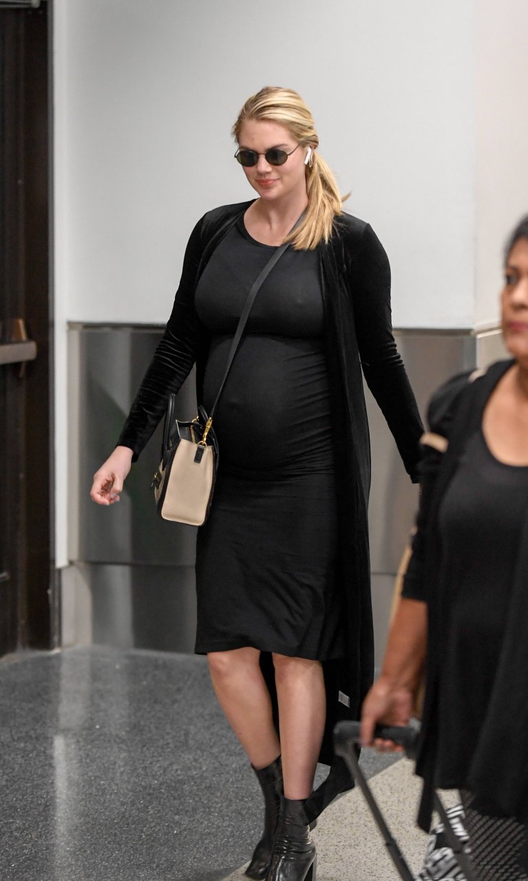 Модель и актриса Кейт Аптон демонстрирует свой животик беременной, прибывая в аэропорт LAX, 27.09.2018. Она готовится стать матерью впервые, как стало известно в середине июля. Аптон объявила об этом своим подписчикам в Instagram, а её муж Джастин Верландер поддержал её в сети, сказав, что она станет хорошей мамой.