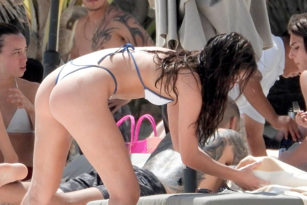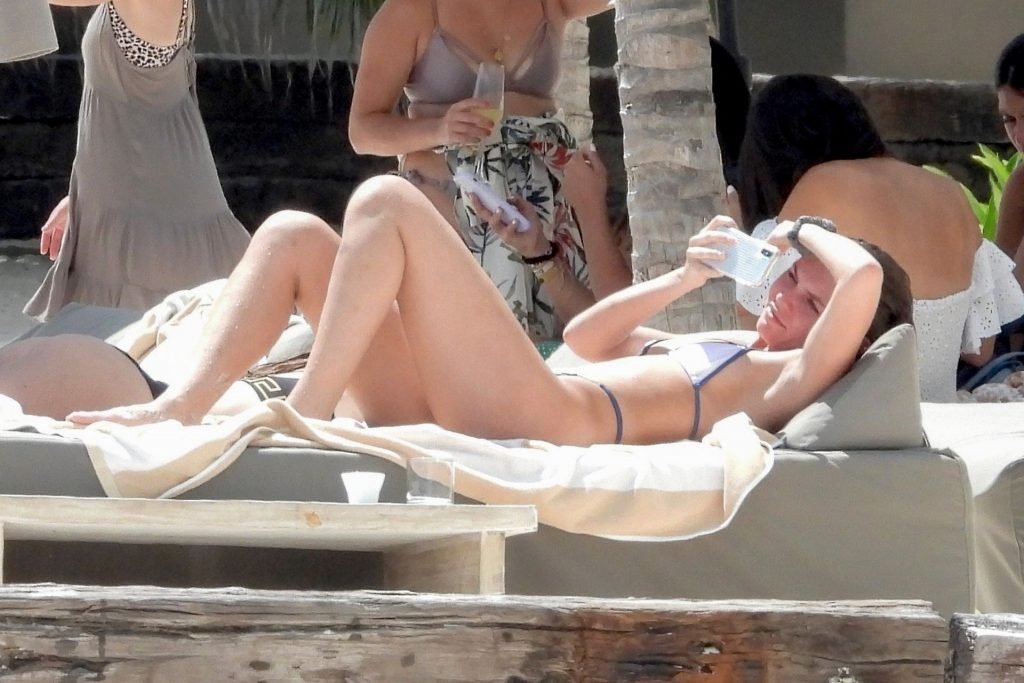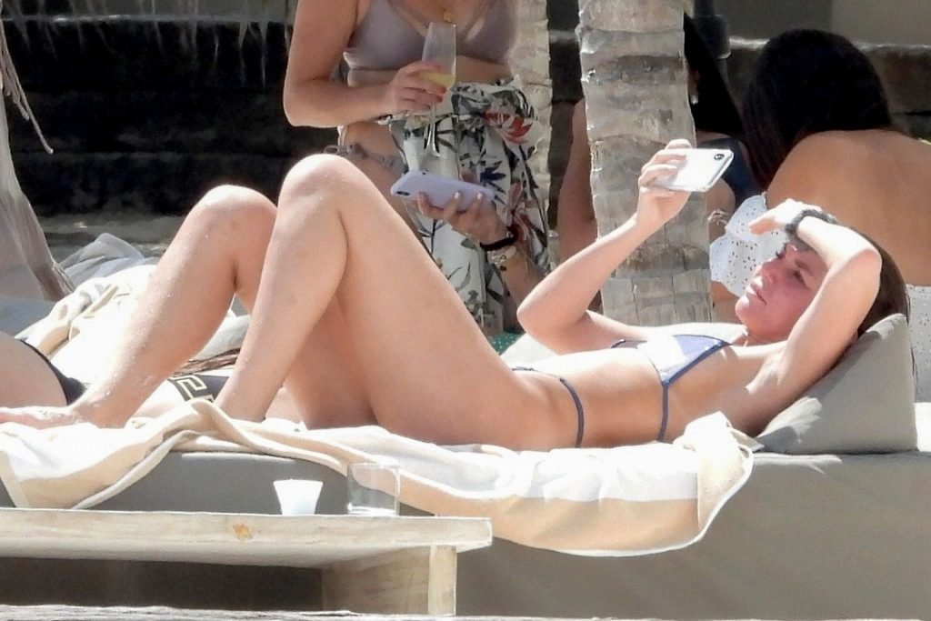 Американская модель Кэтэри Дион (21) демонстрирует свои изгибы, наслаждаясь днем на пляже с друзьями Оливией Блейс и Эли Майклом Вехбе в Тулуме, 10/05/2019.