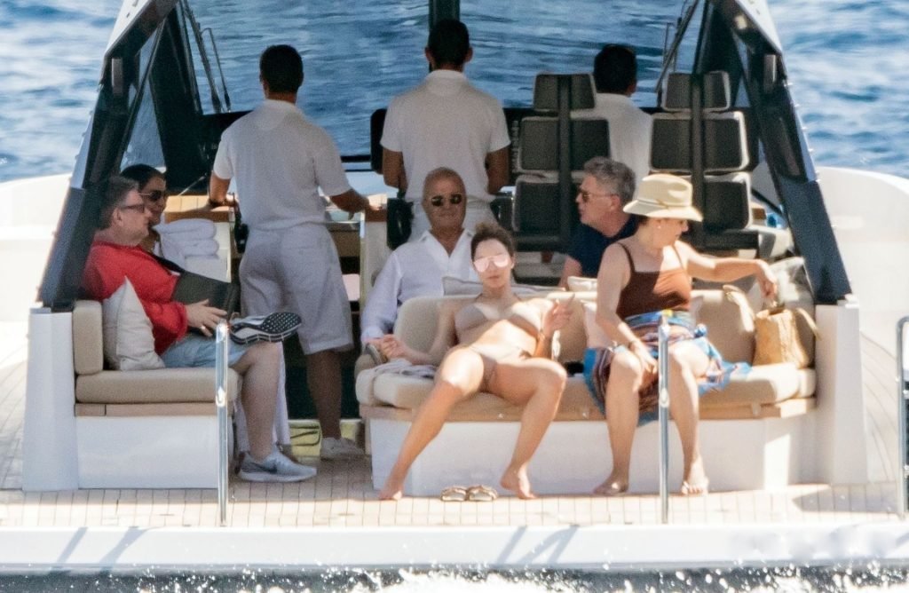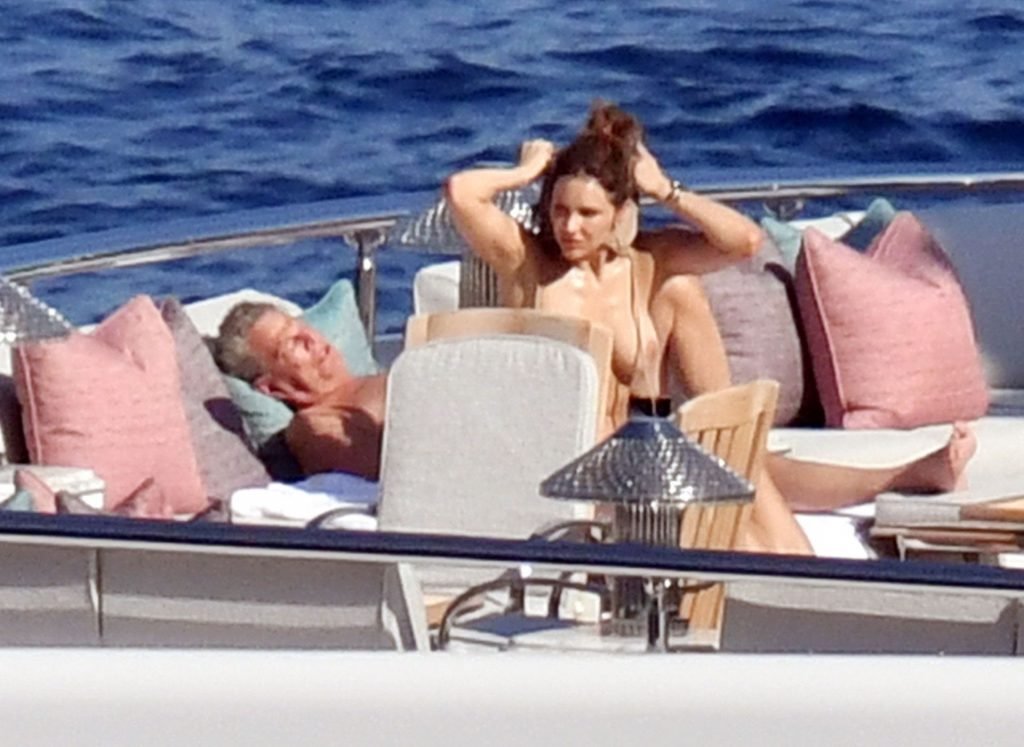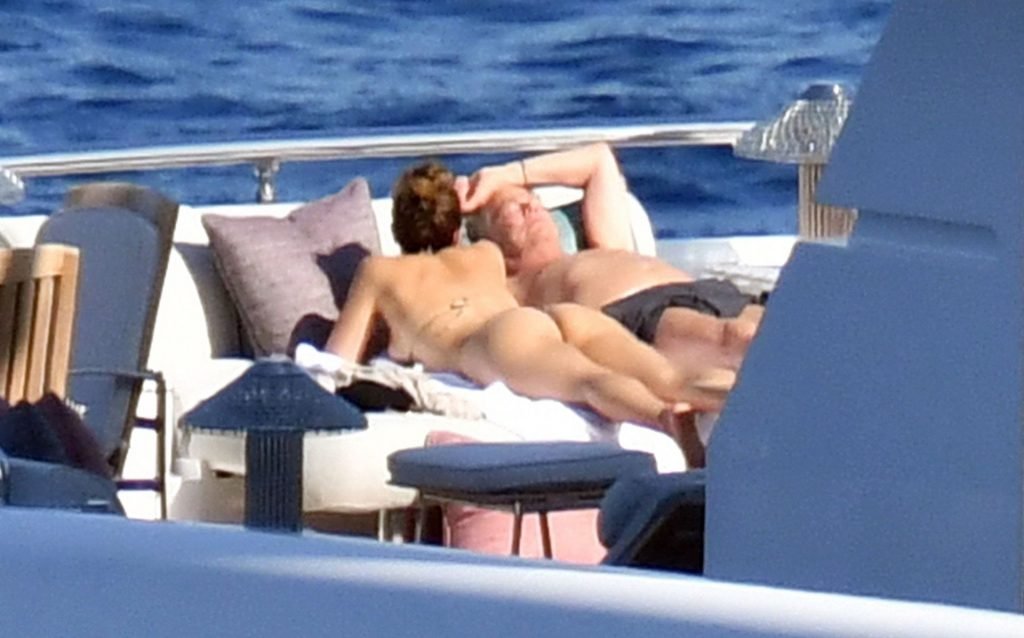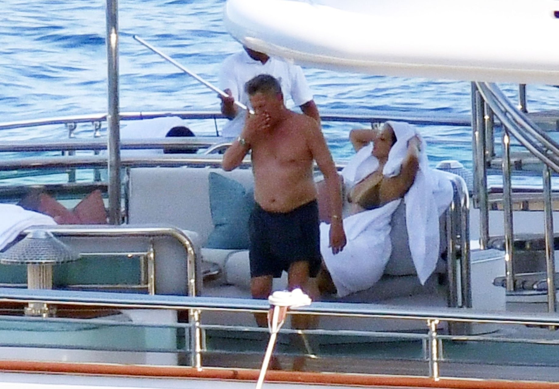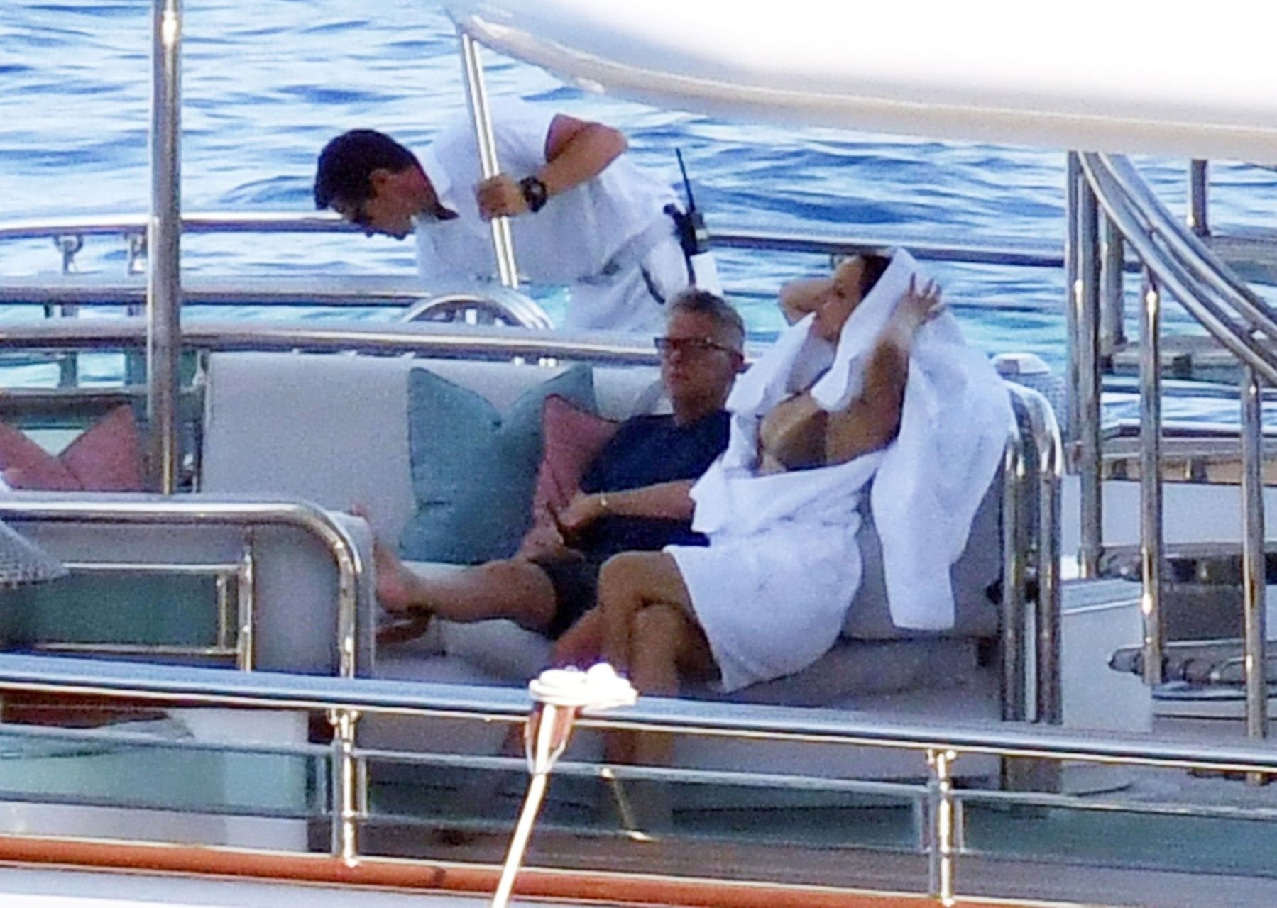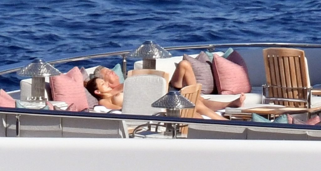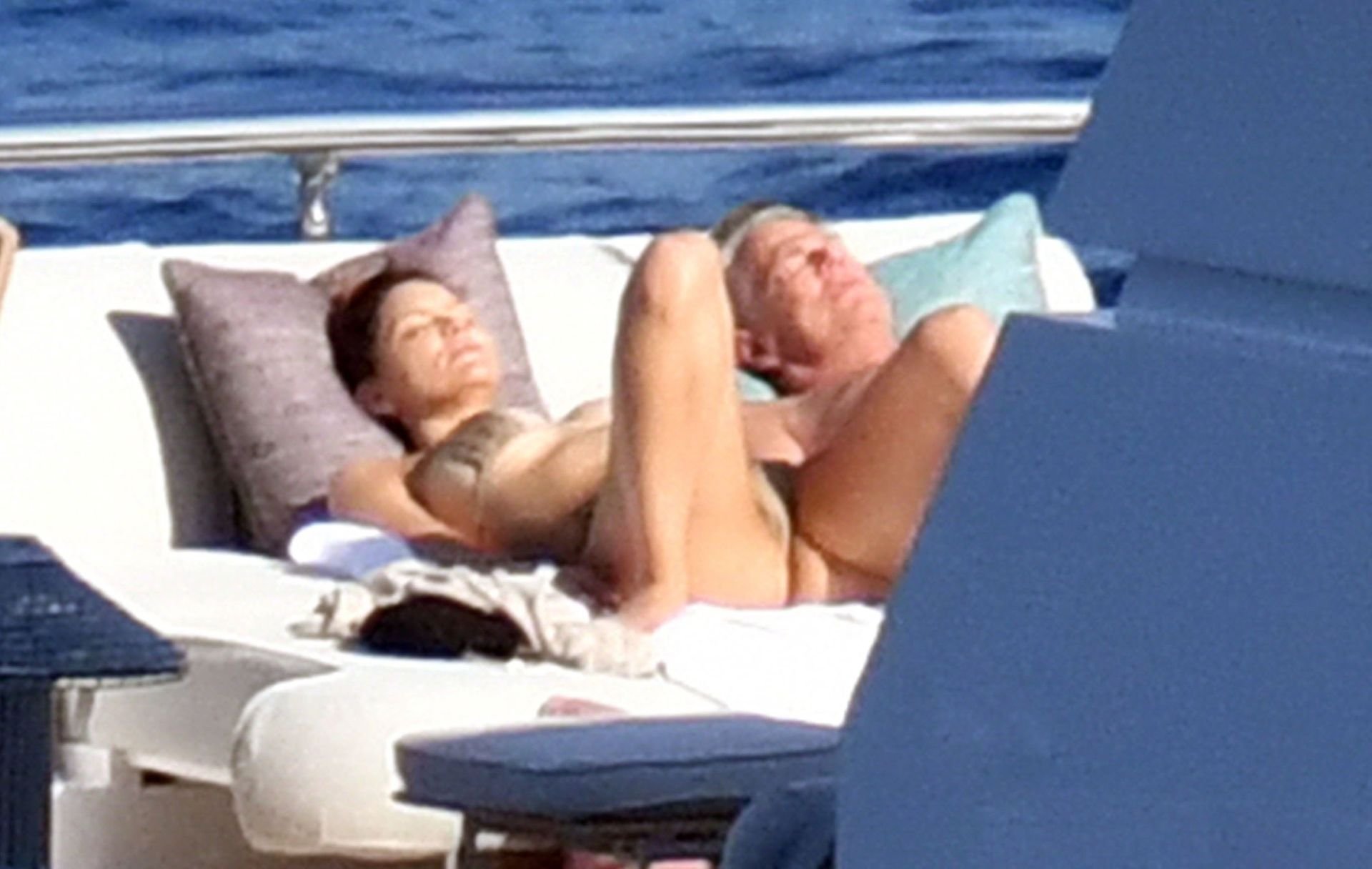 Новобрачные Кэтрин Макфи и Дэвид Фостер загорают на своей яхте во время медового месяца на Капри, 02.07.2019.