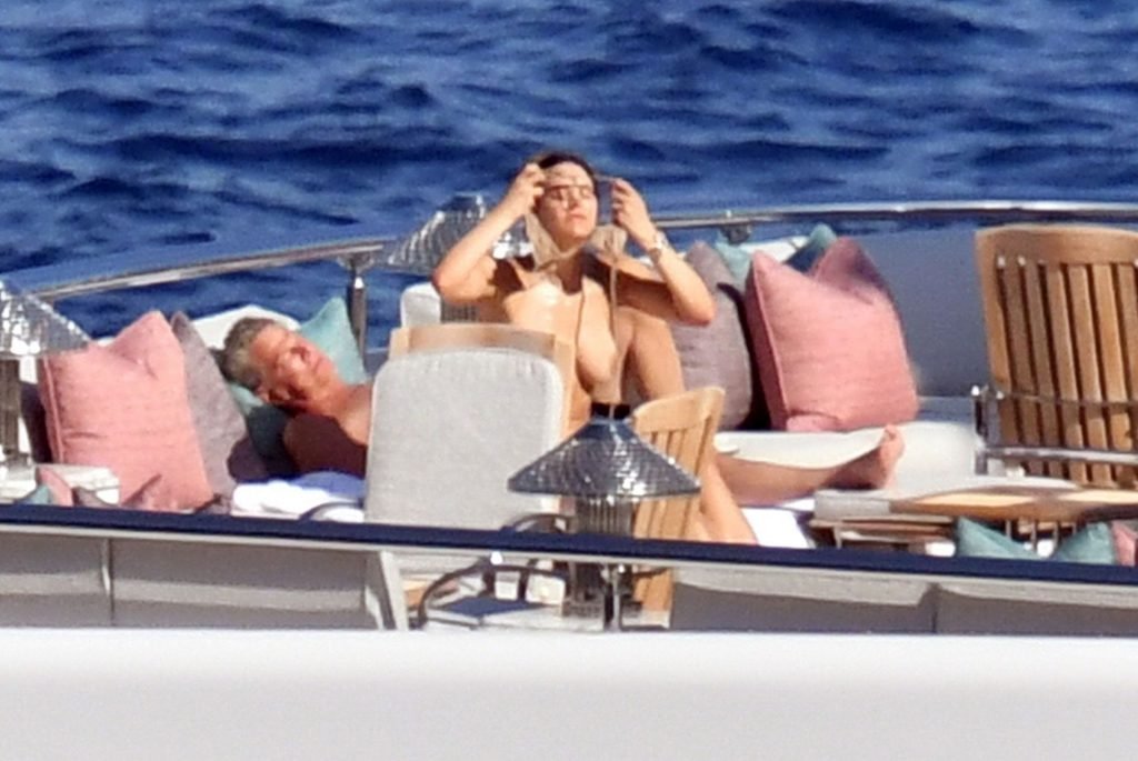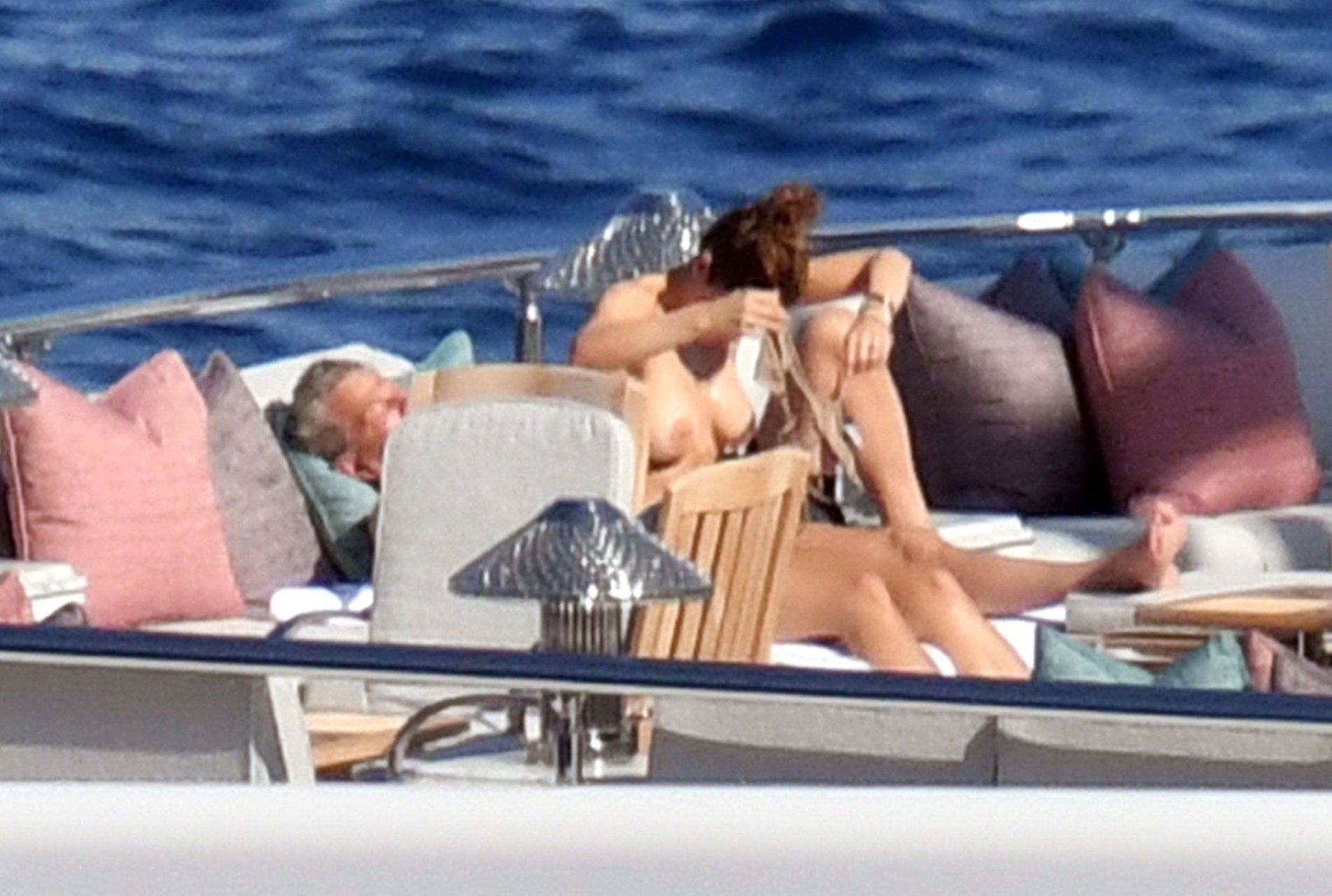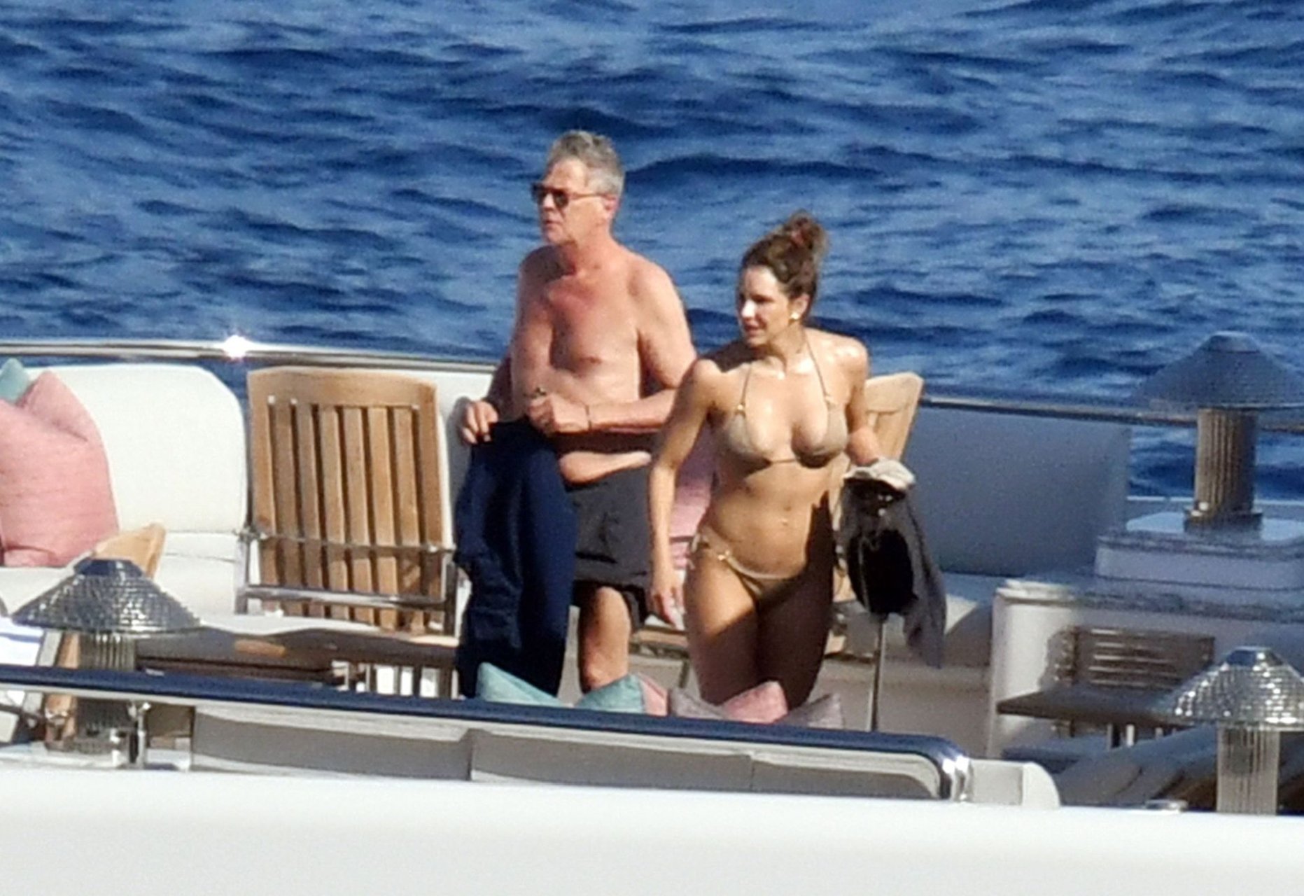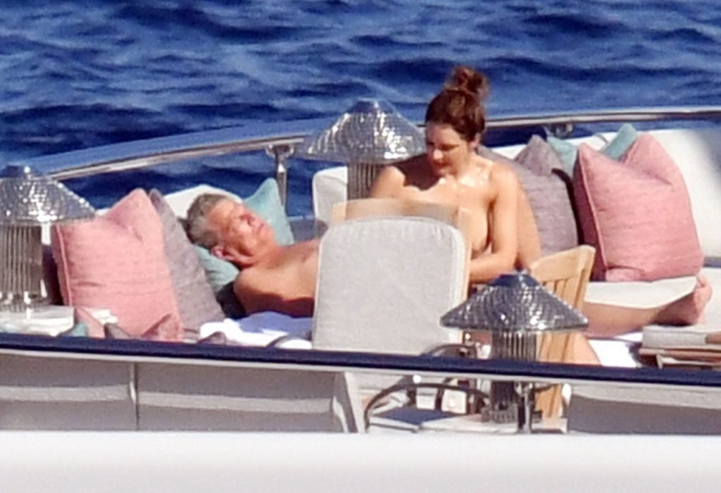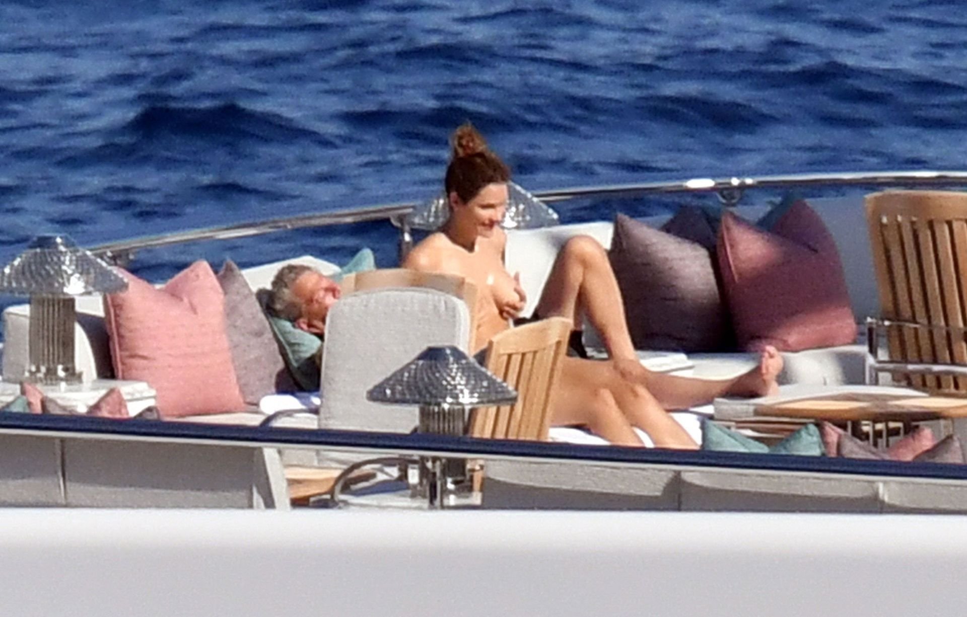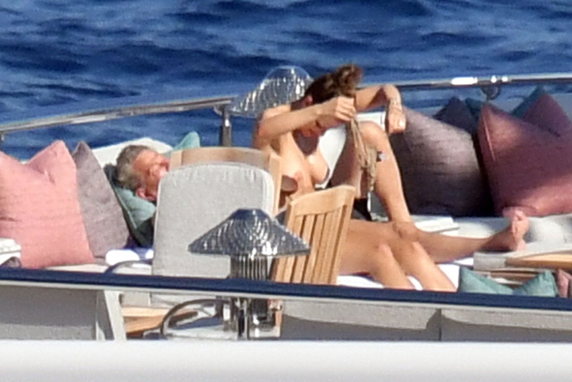 Новобрачные Кэтрин Макфи и Дэвид Фостер загорают на своей яхте во время медового месяца на Капри, 02.07.2019.