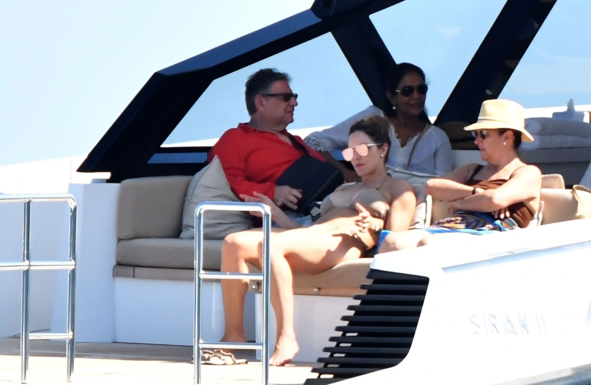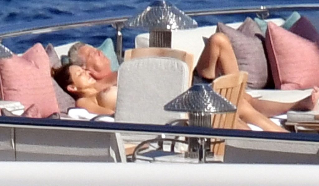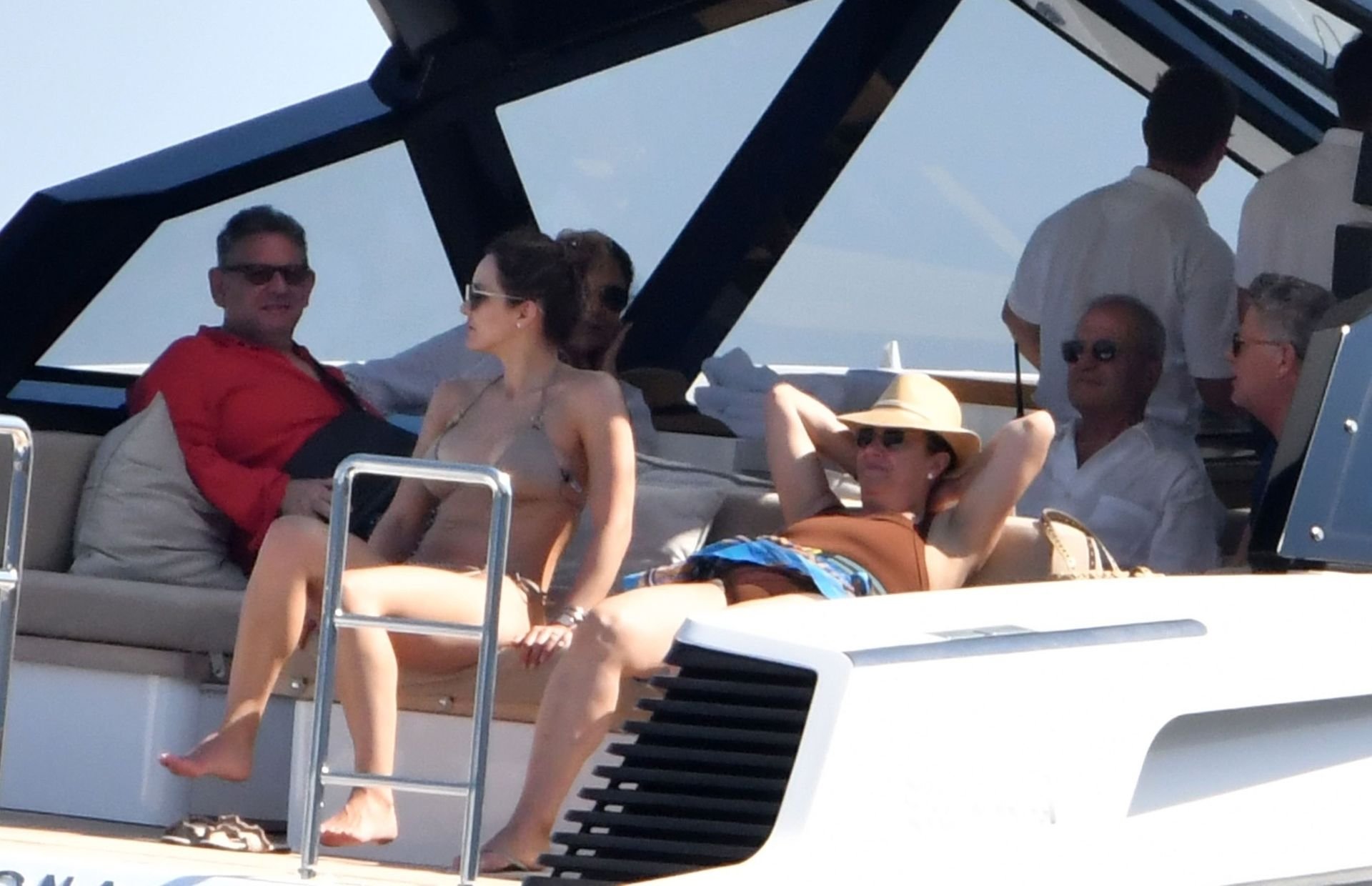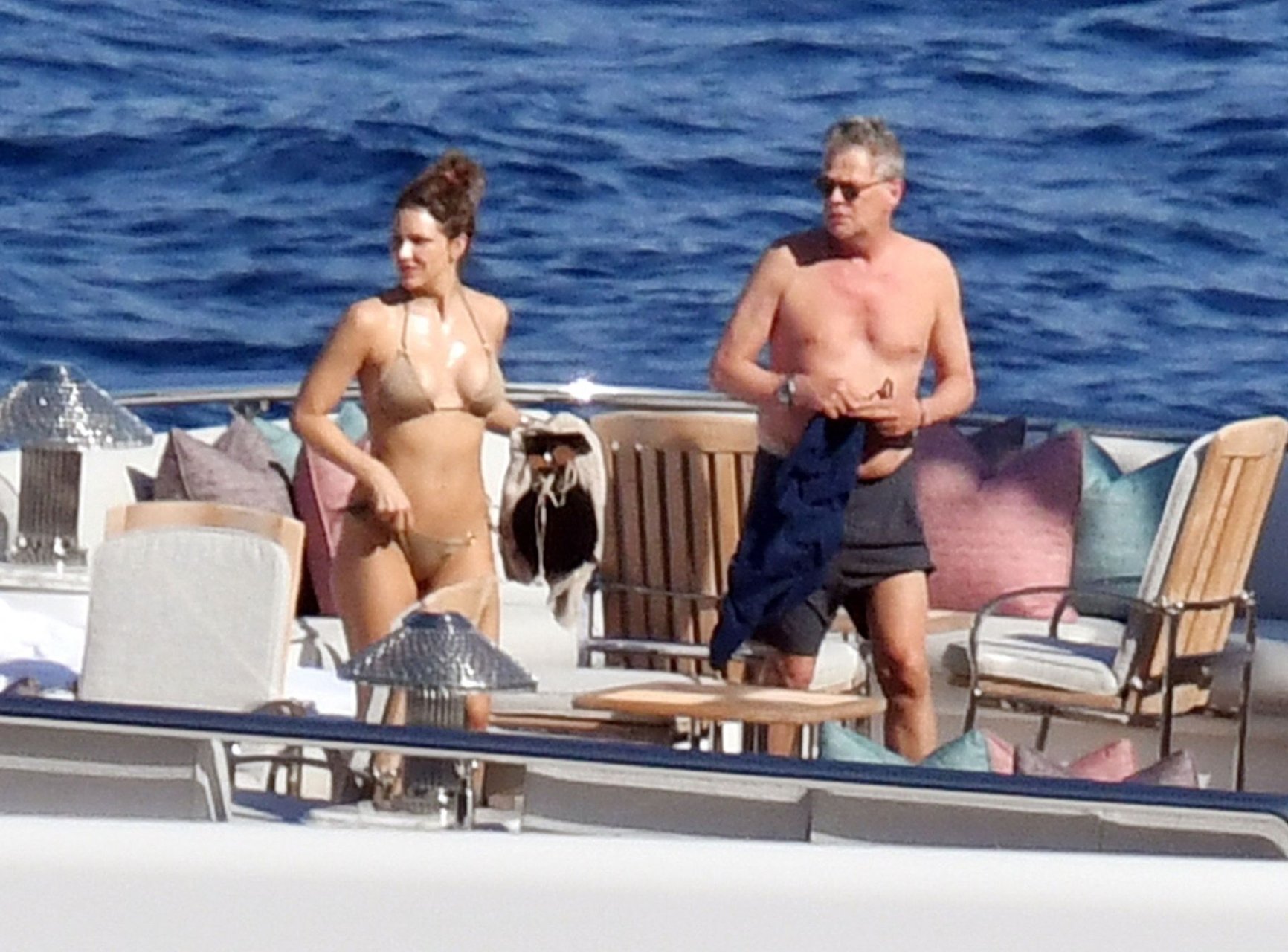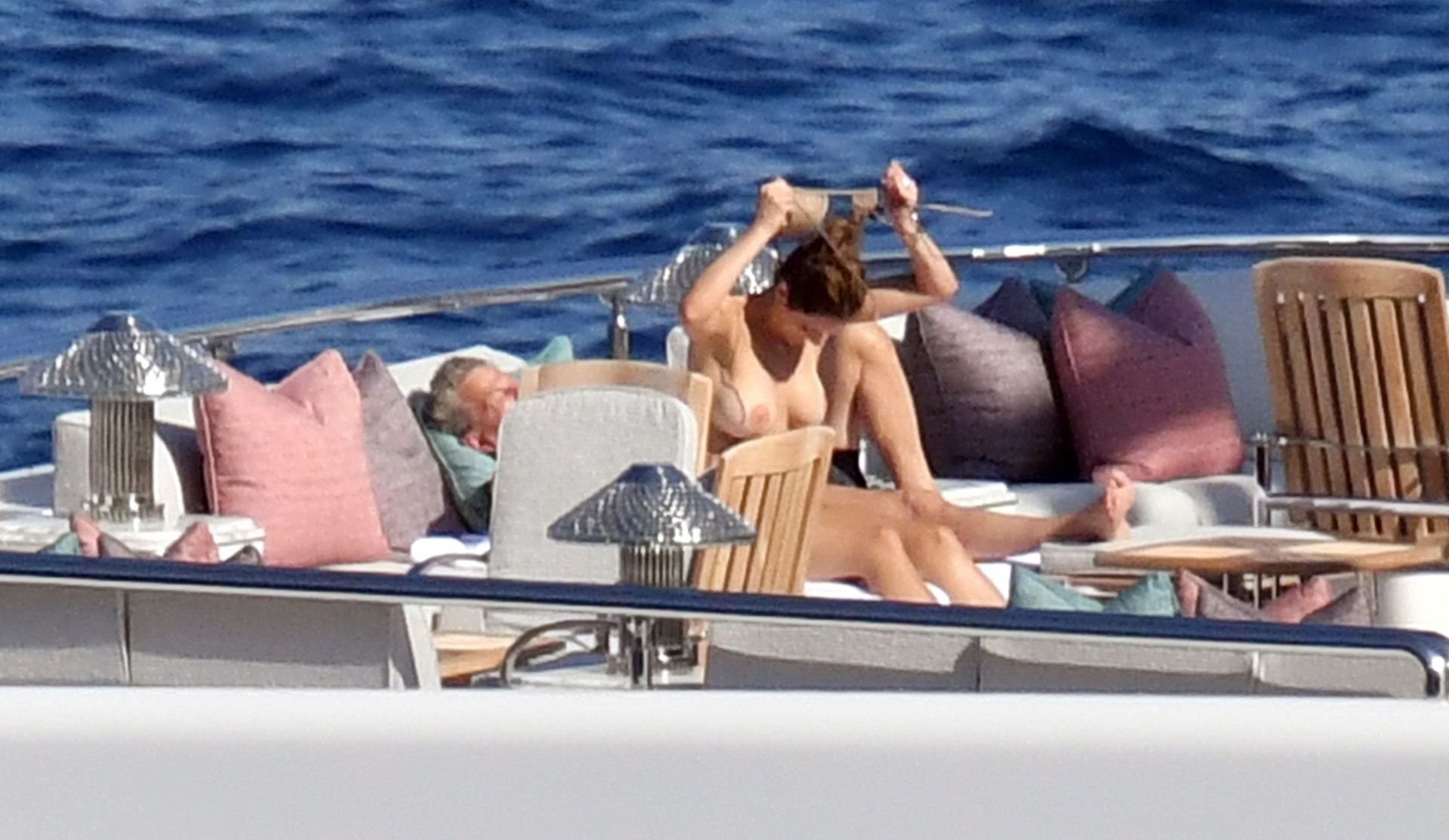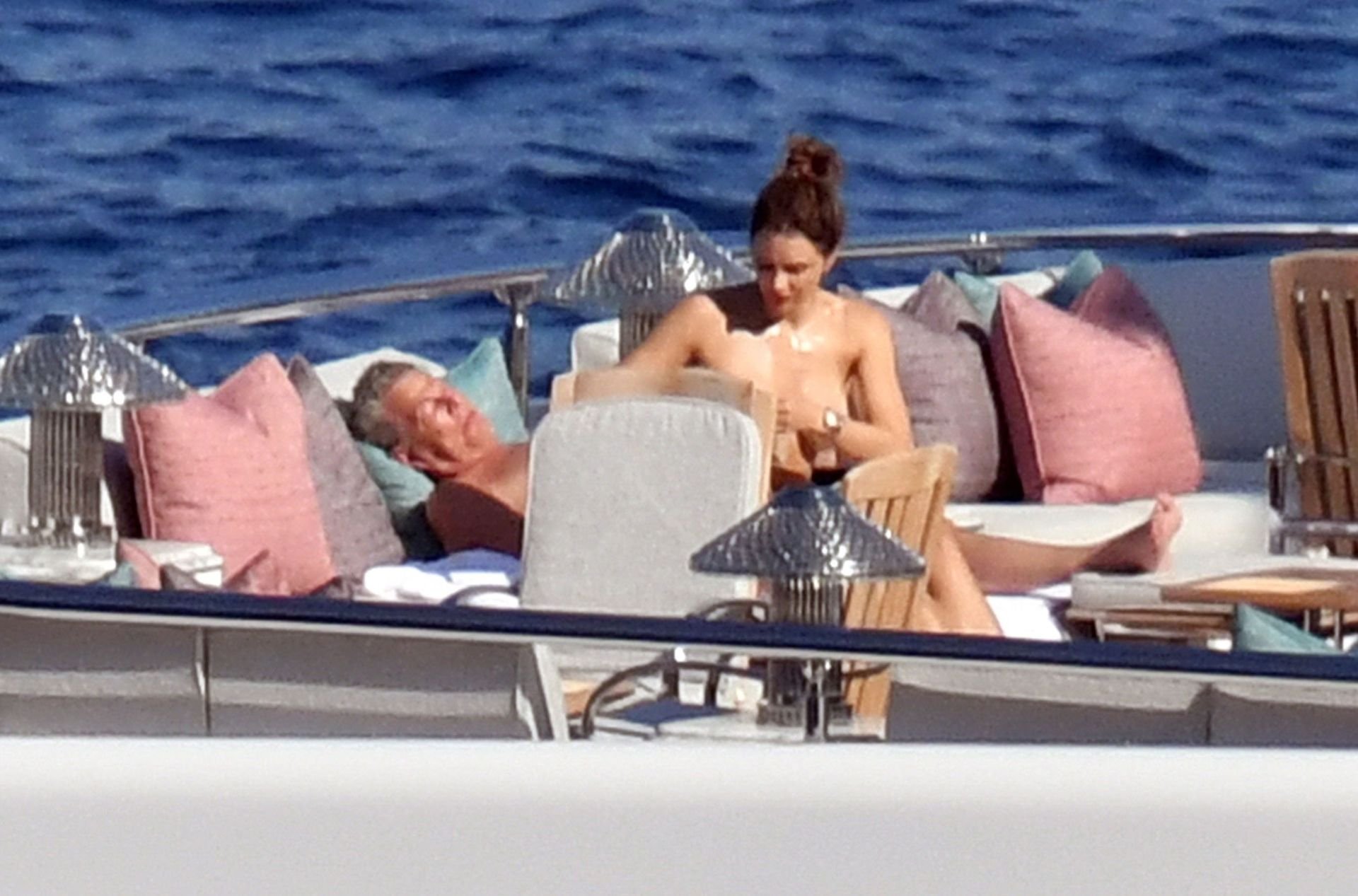 Новобрачные Кэтрин Макфи и Дэвид Фостер загорают на своей яхте во время медового месяца на Капри, 02.07.2019.