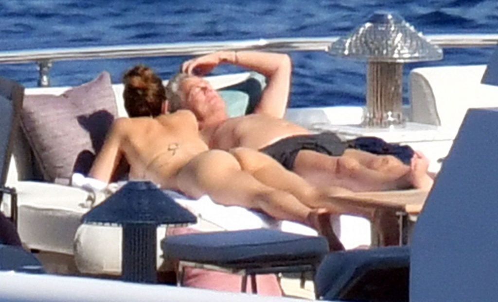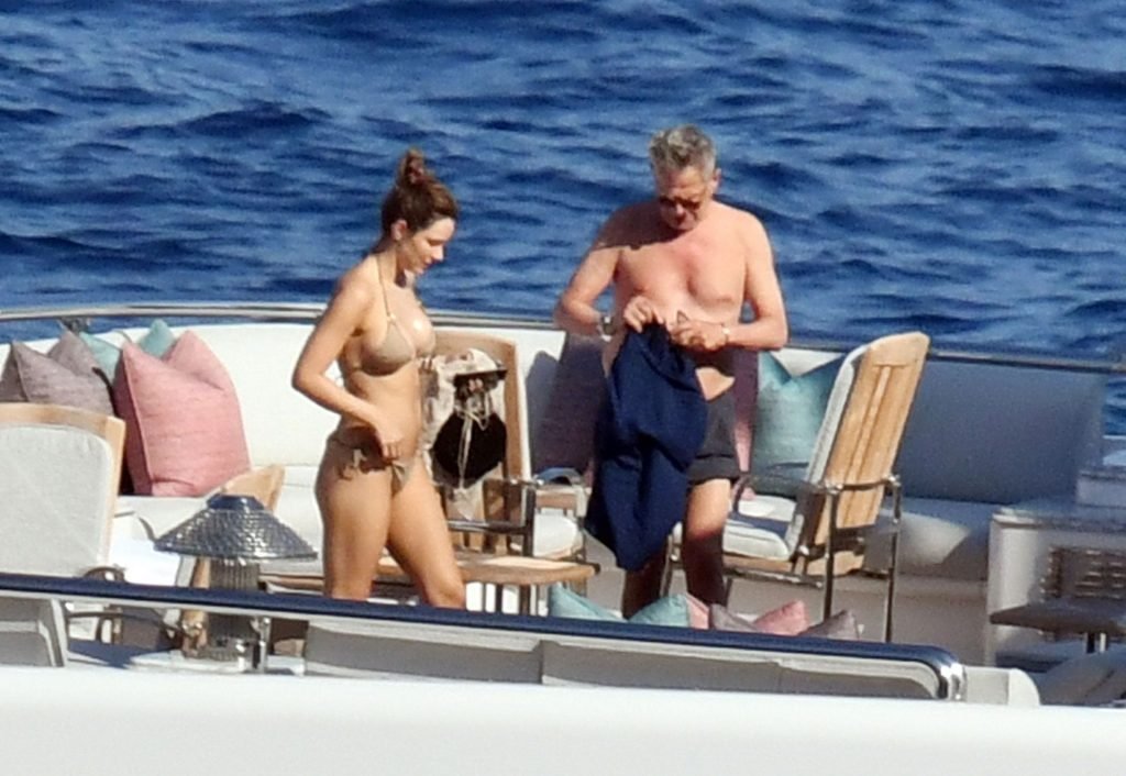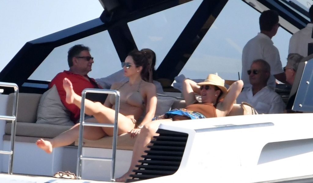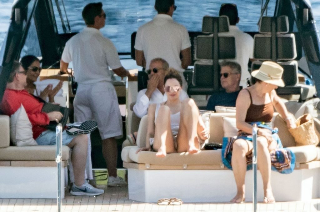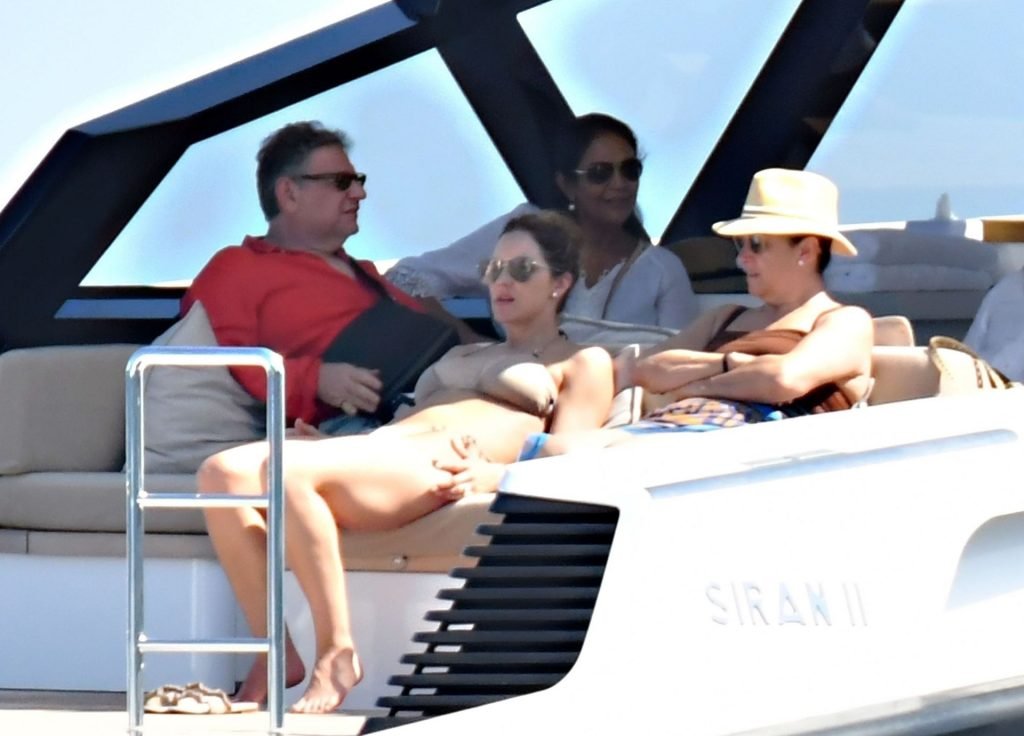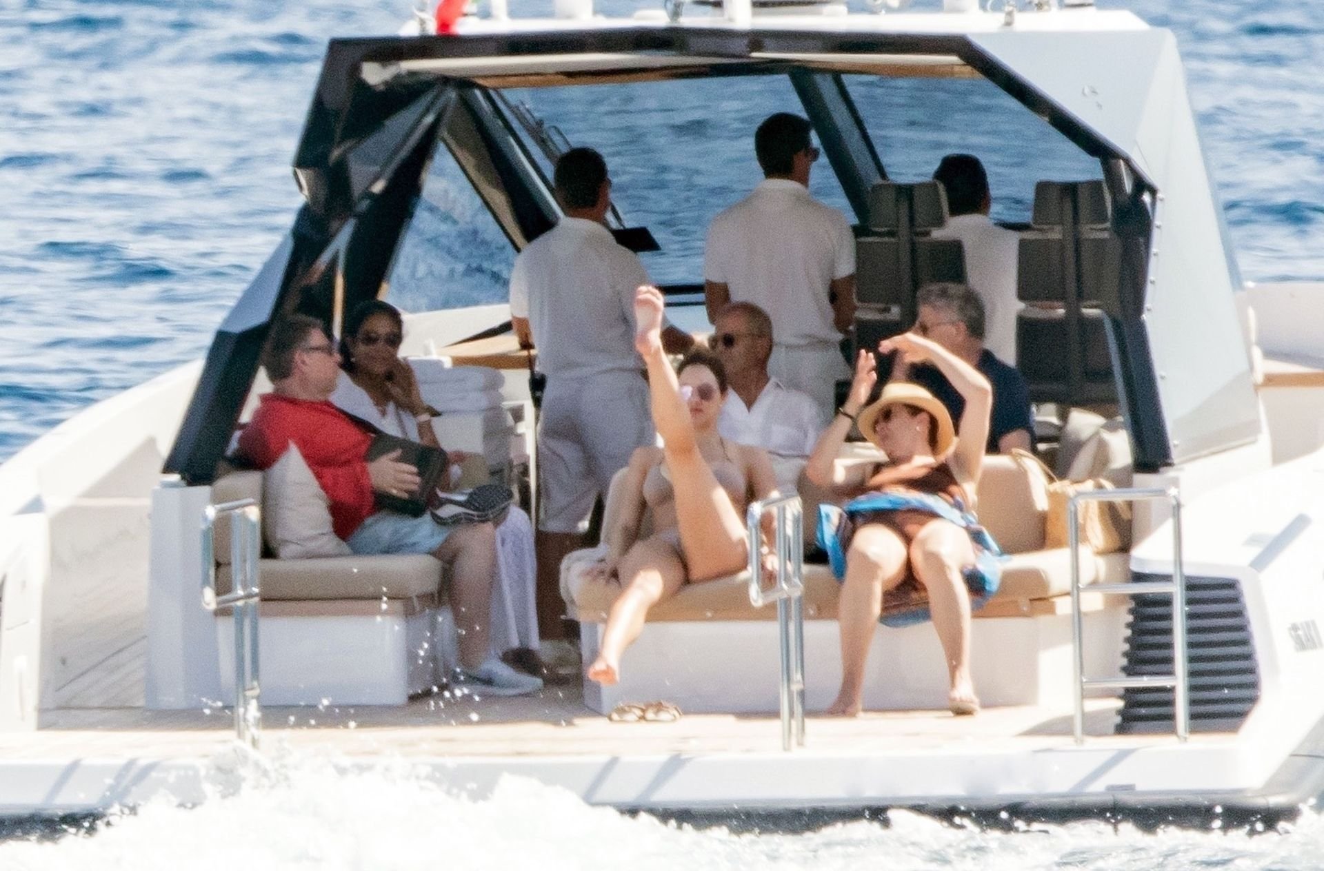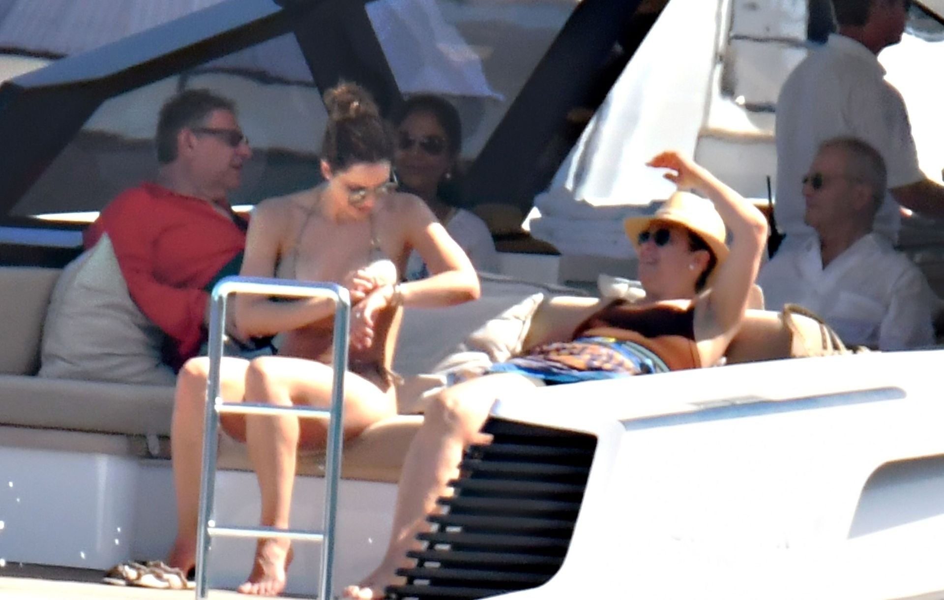 Новобрачные Кэтрин Макфи и Дэвид Фостер загорают на своей яхте во время медового месяца на Капри, 02.07.2019.