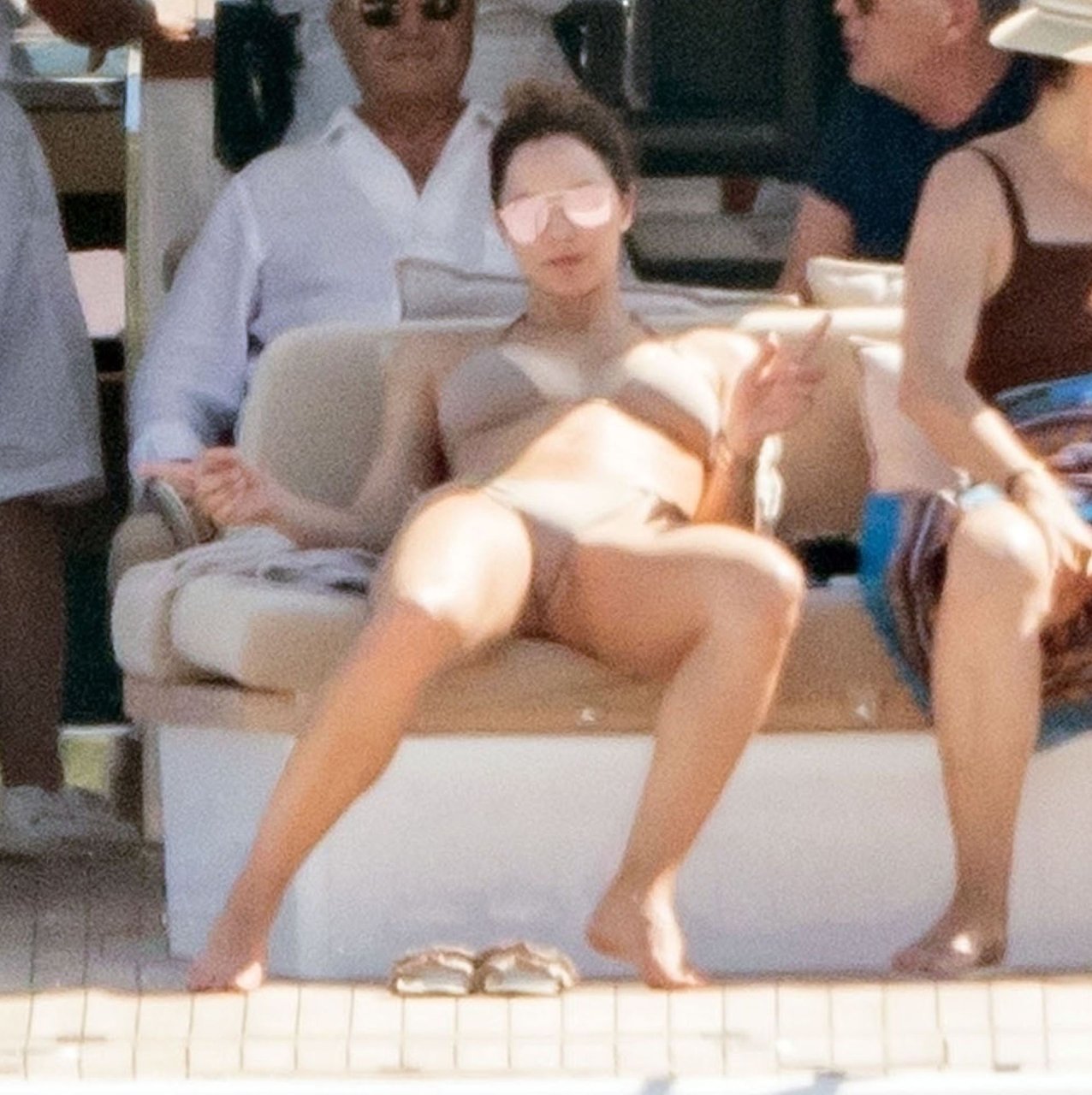 Эта шлюха знает, что фотографы преследуют её даже когда она посреди океана; она просто хотела показать свои большие жирные сиськи. В следующий раз покажите нам и свою киску, мадам.