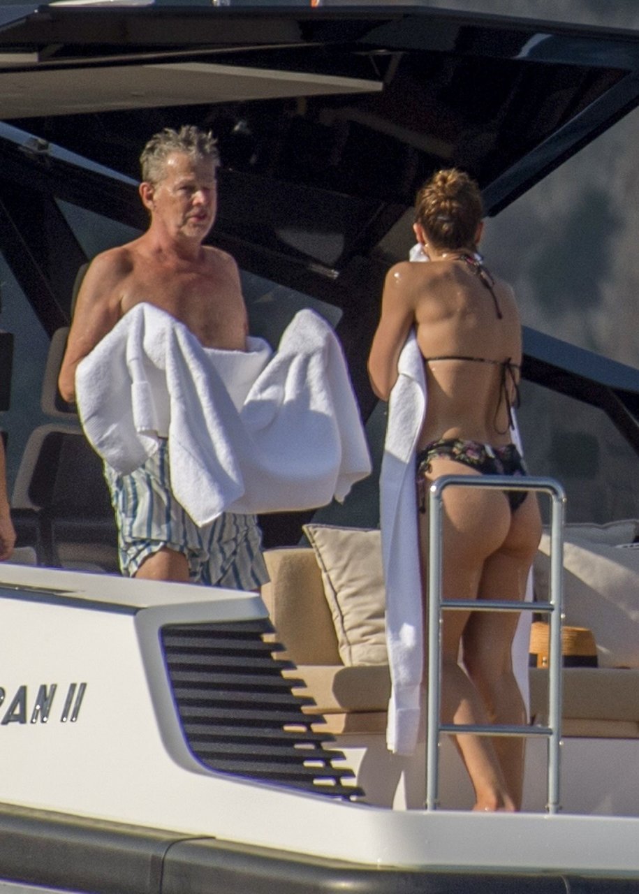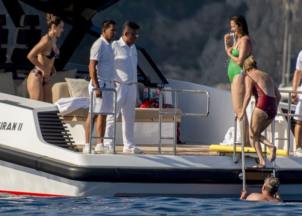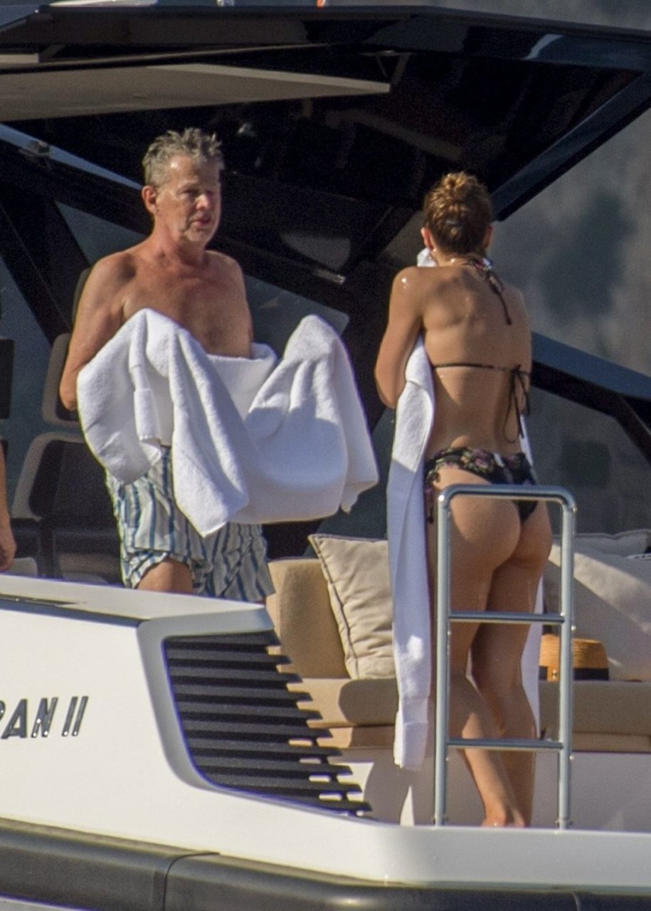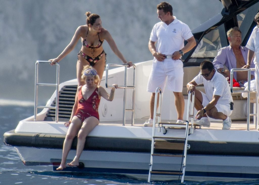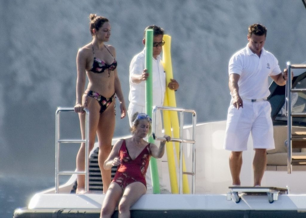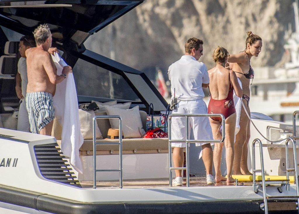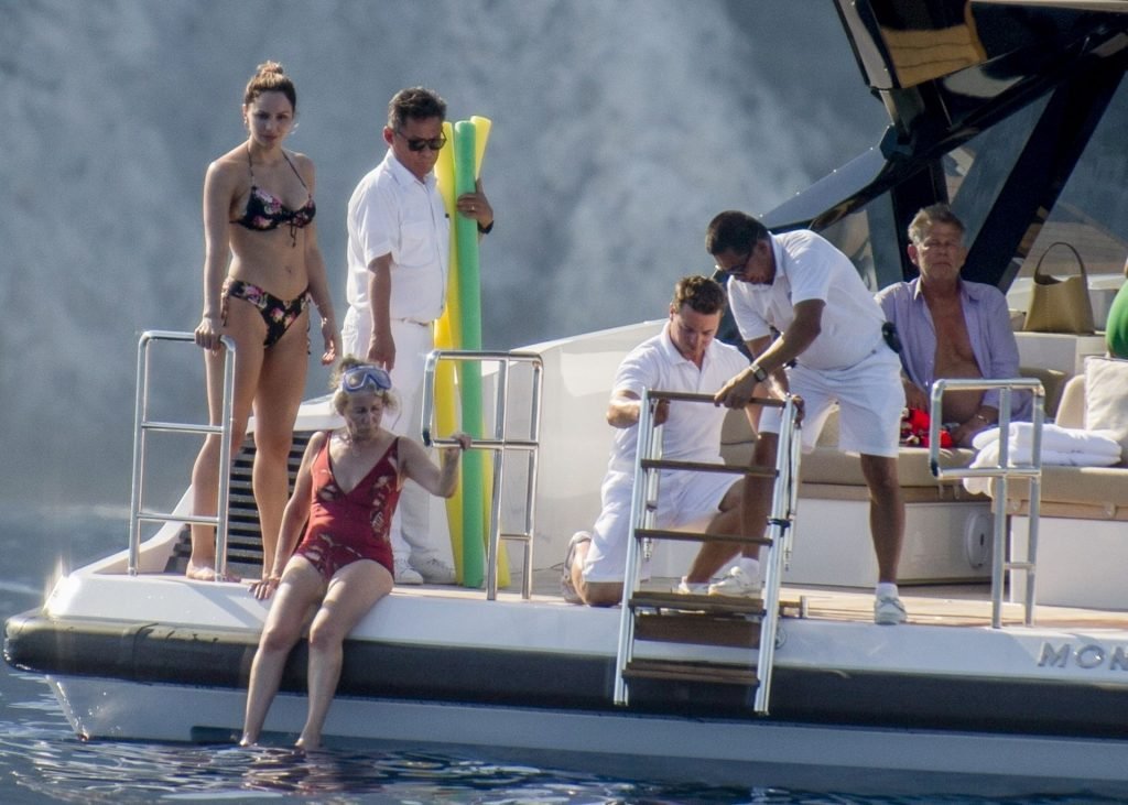 Молодожены Кэтрин Макфи и Дэвид Фостер окунаются в океан, отдыхая на своей яхте во время медового месяца на Капри, 03.07.2019.