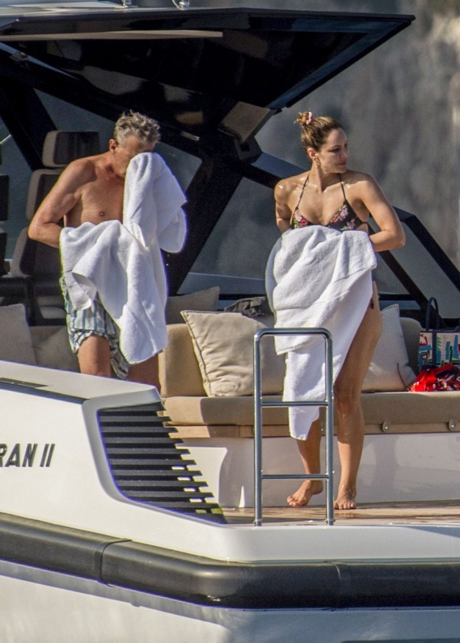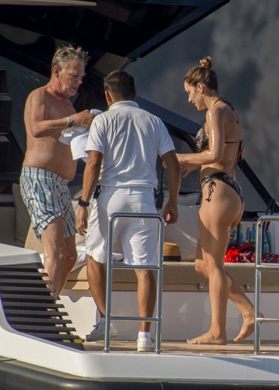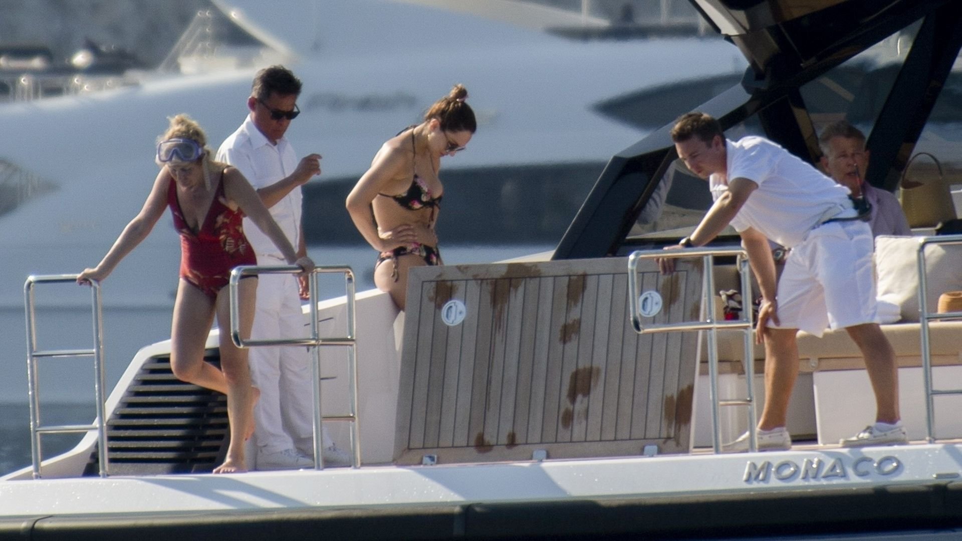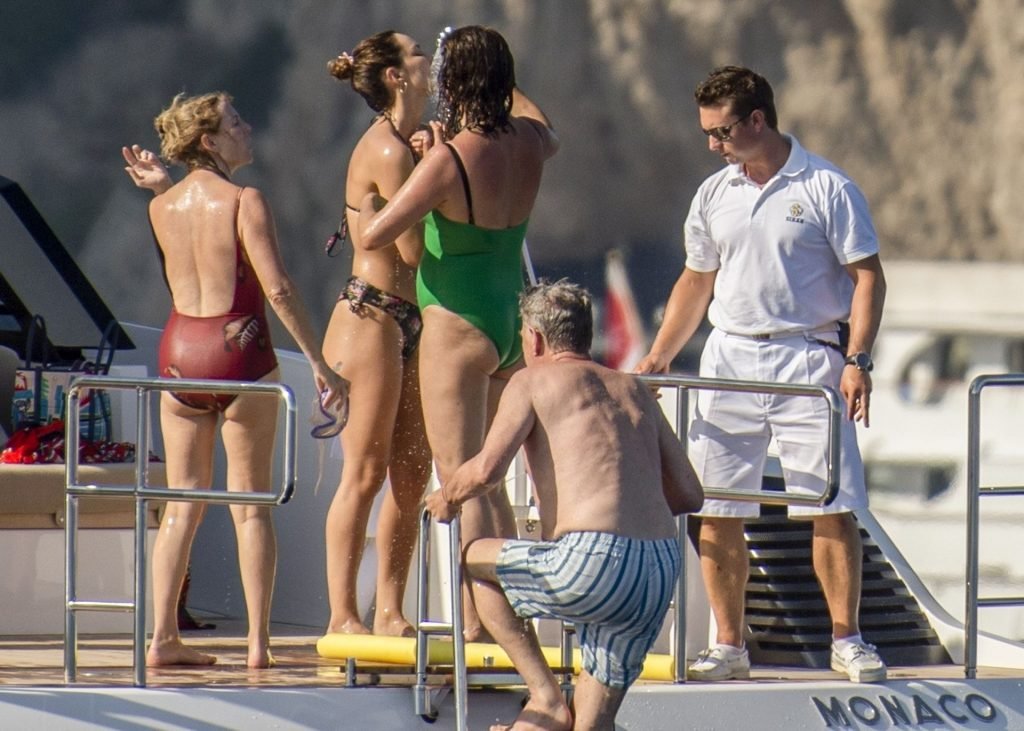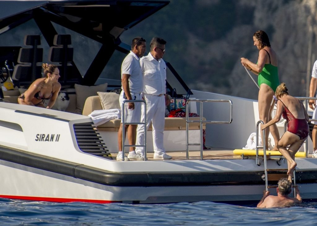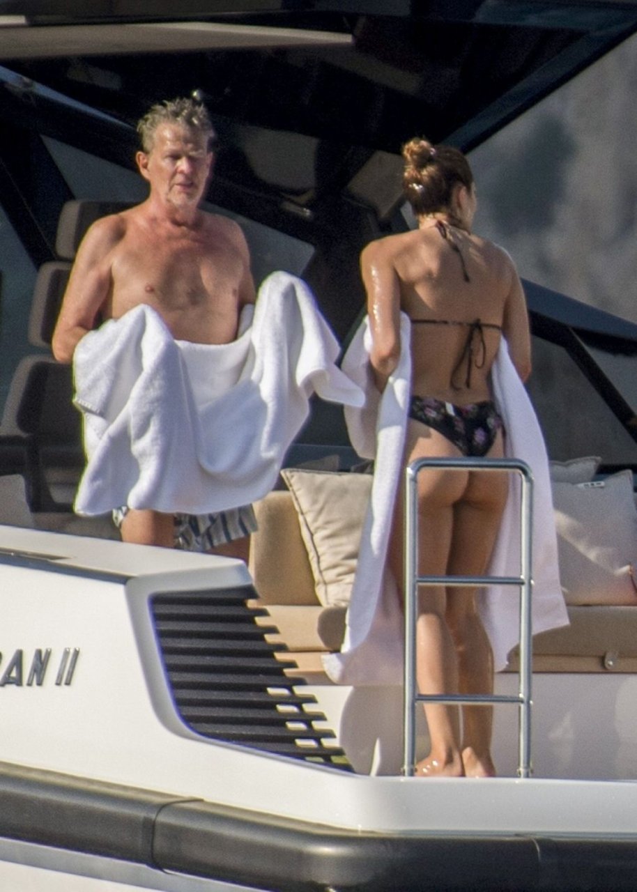 Молодожены Кэтрин Макфи и Дэвид Фостер окунаются в океан, отдыхая на своей яхте во время медового месяца на Капри, 03.07.2019.