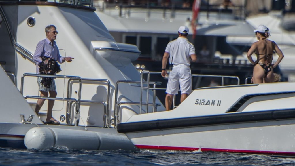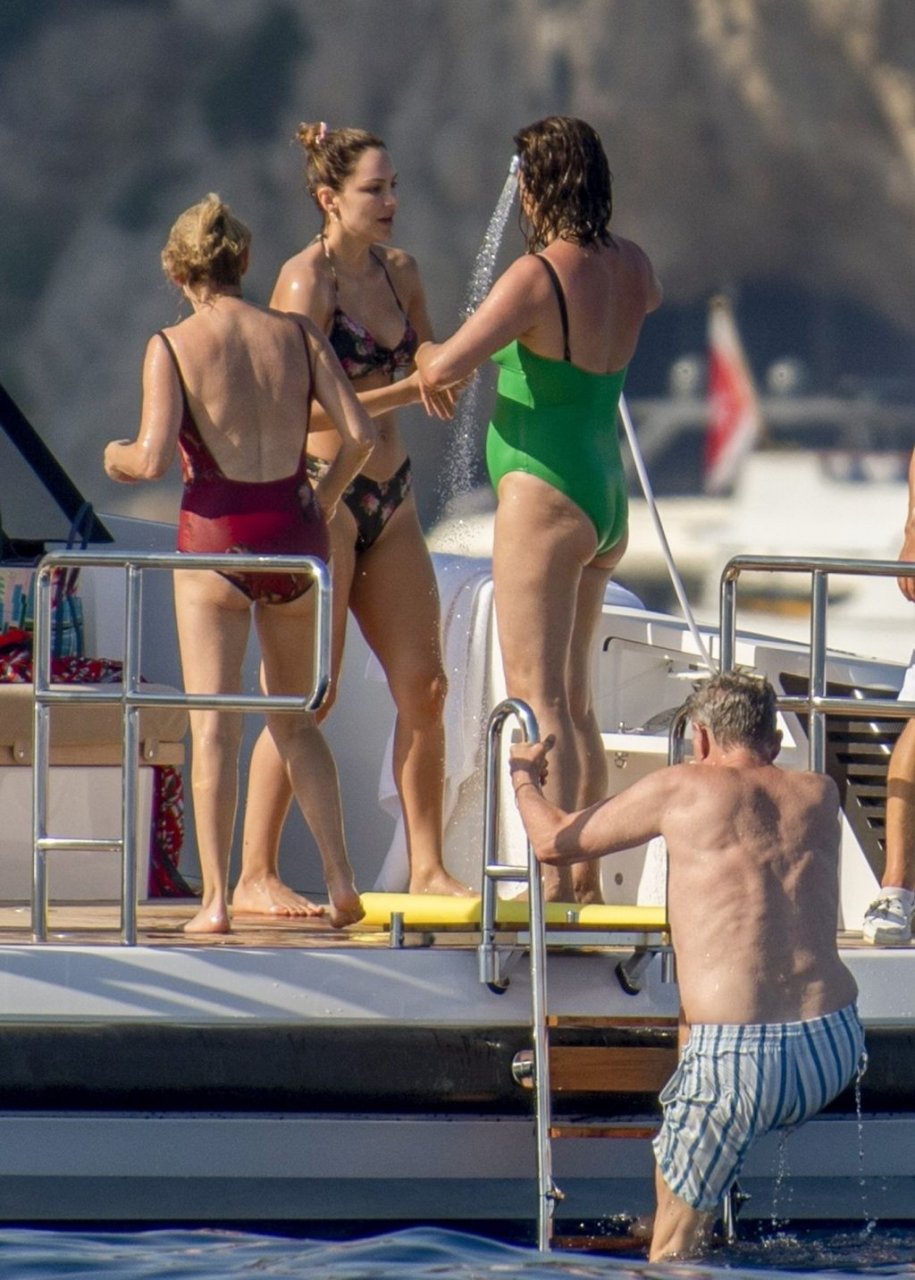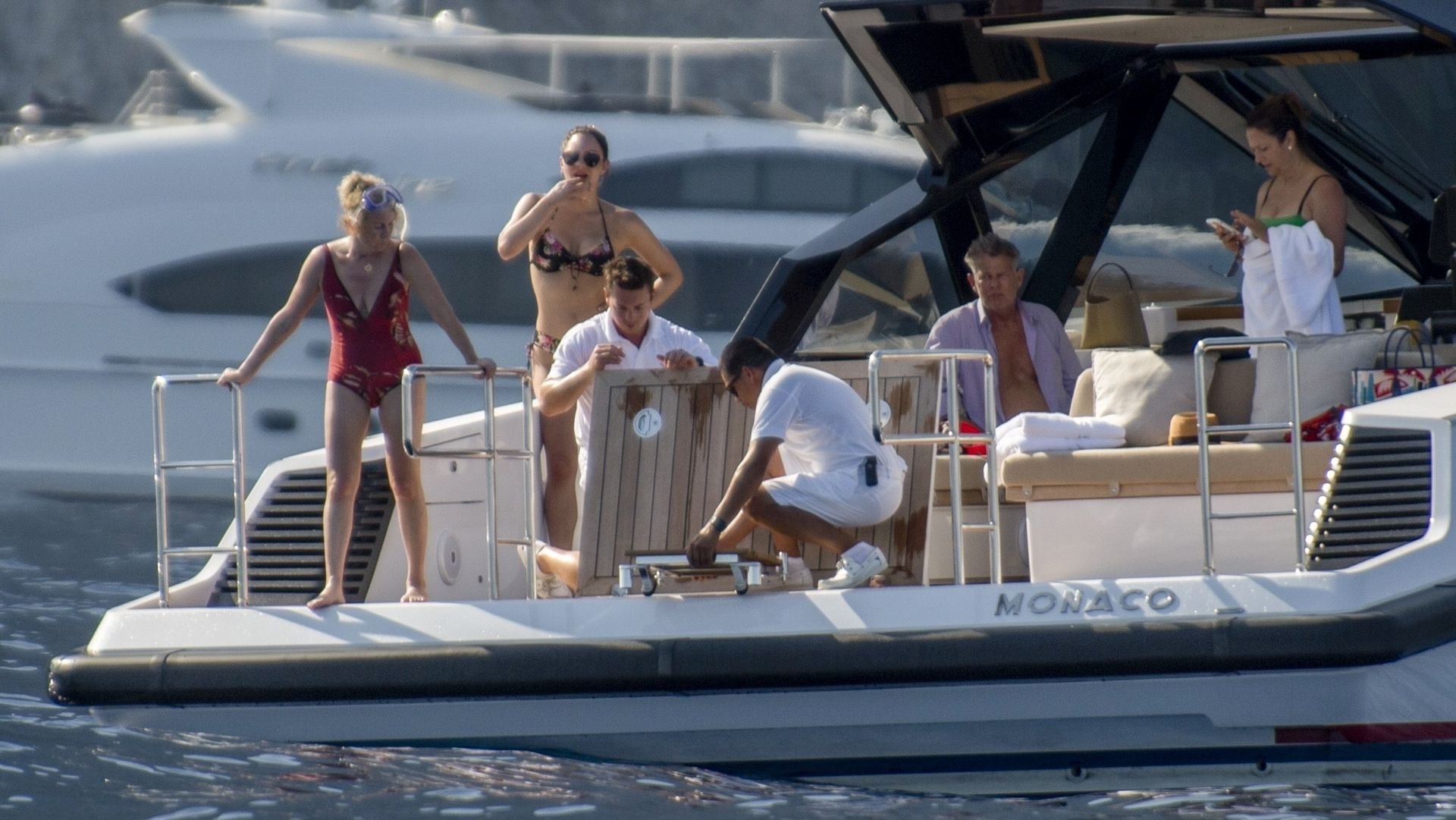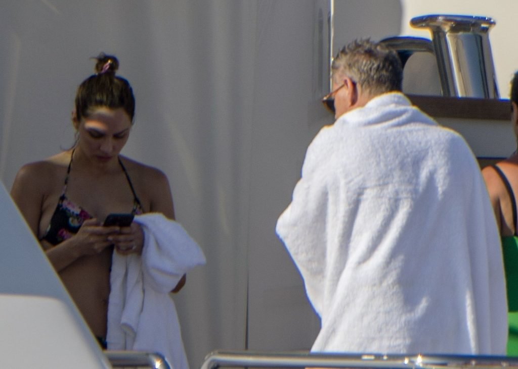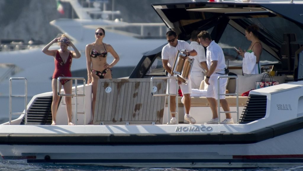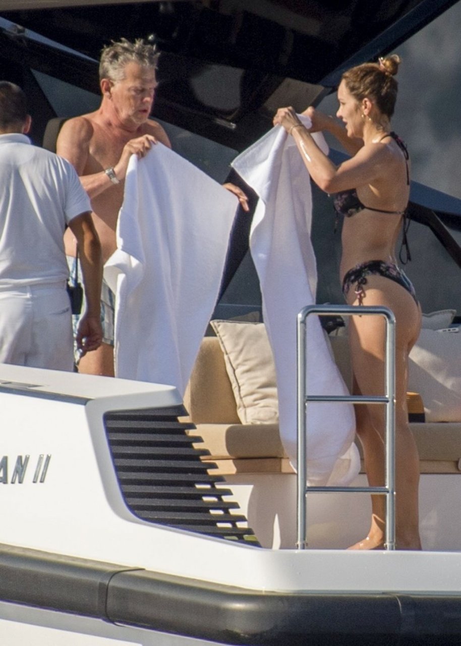Молодожены Кэтрин Макфи и Дэвид Фостер окунаются в океан, отдыхая на своей яхте во время медового месяца на Капри, 03.07.2019.