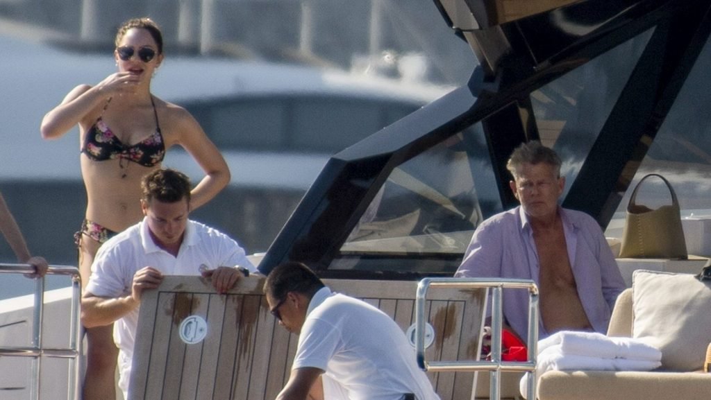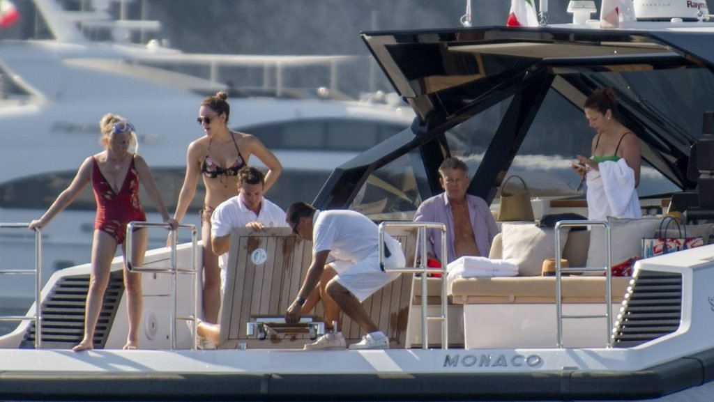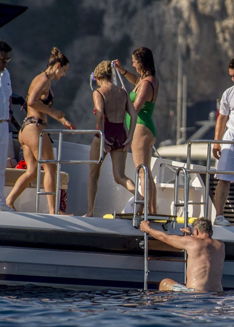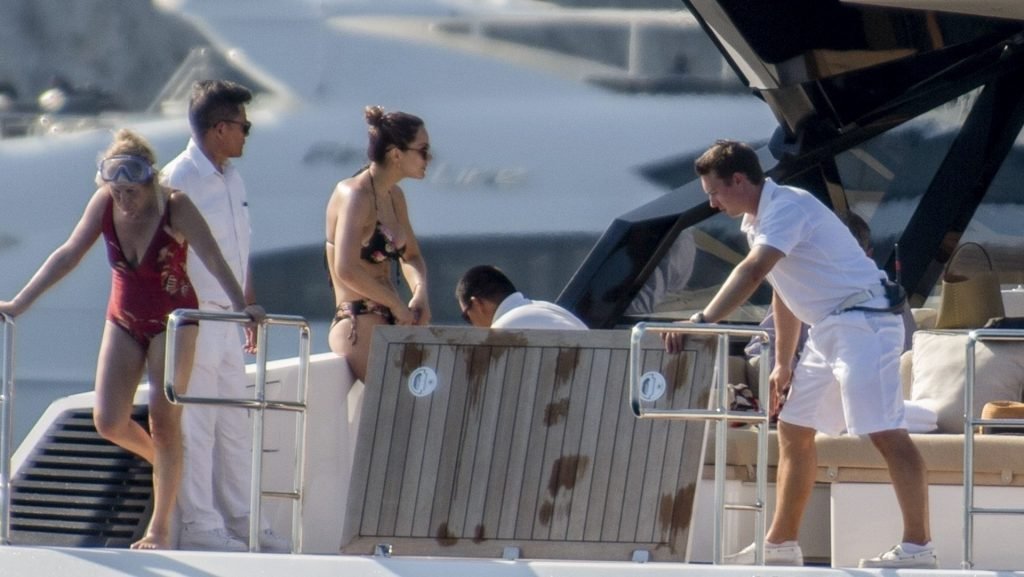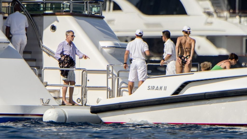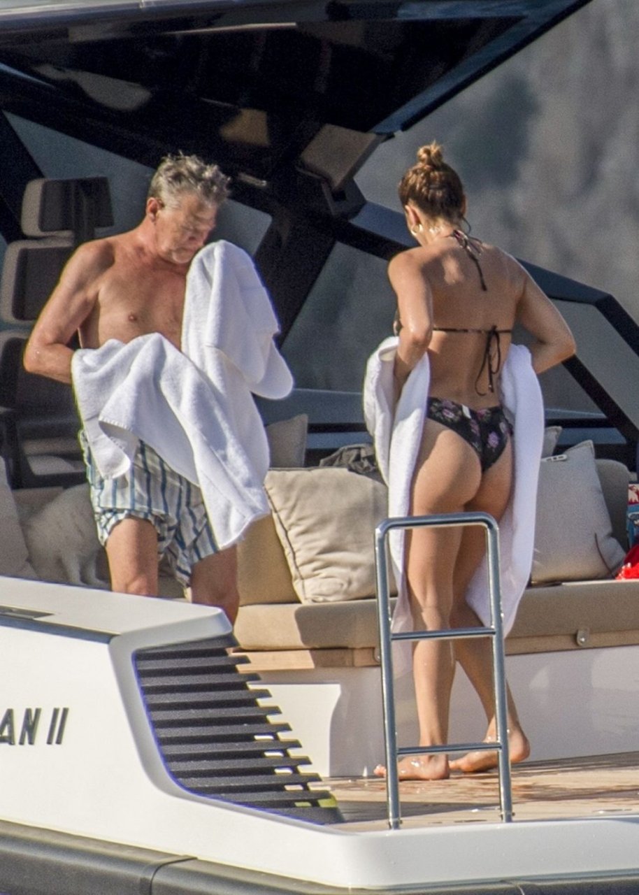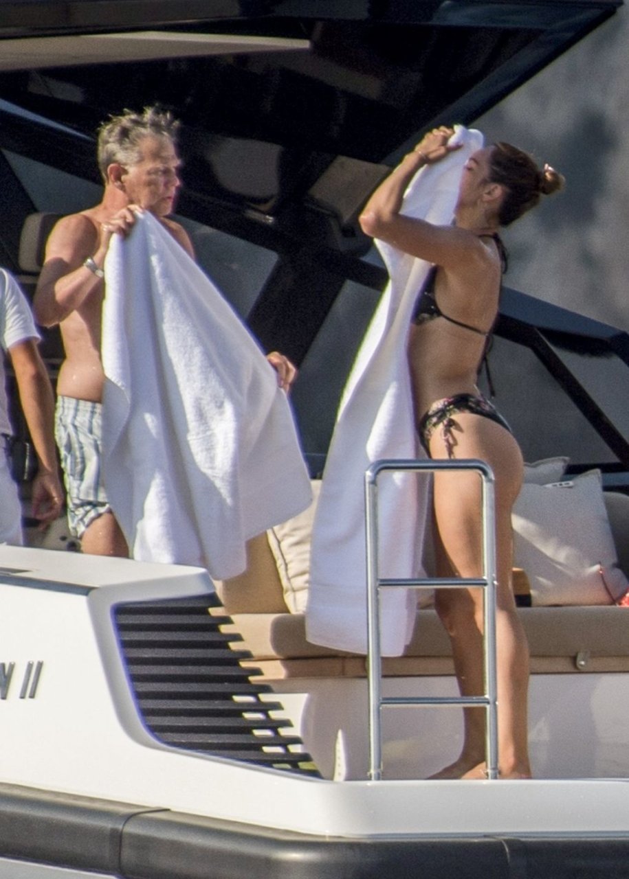 Молодожены Кэтрин Макфи и Дэвид Фостер окунаются в океан, отдыхая на своей яхте во время медового месяца на Капри, 03.07.2019.