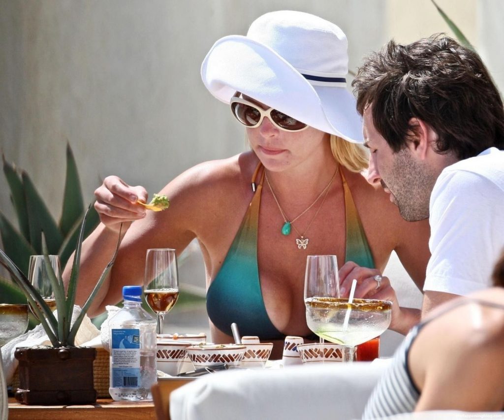 Кэтрин Хейгл глубоко дышит и издаёт писклявые звуки во время секса. Она продолжает ездить на парне, показывая нам бок своей правой большой сиськи.
