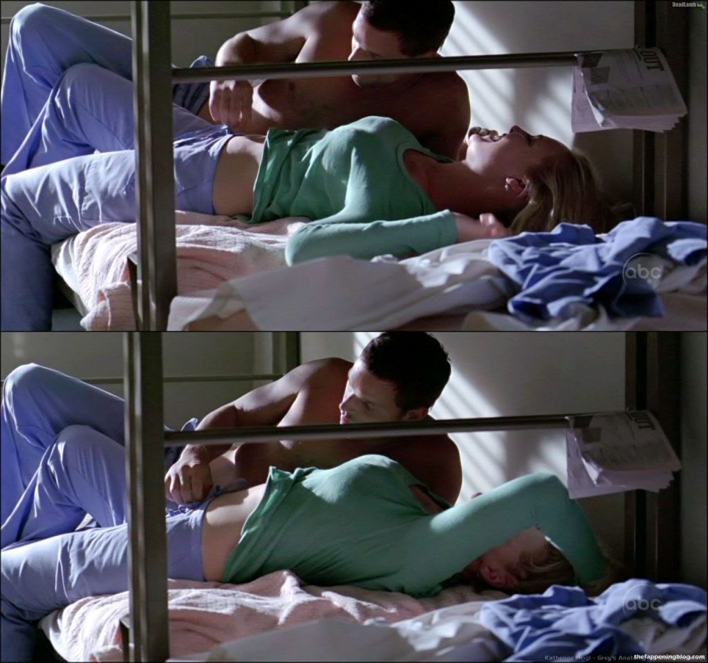 Кэтрин Хейгл кричит от экстаза, когда занимается бурным сексом с парнем.She bounces up and down, riding him hard all while Sarah Chalke lies in bed listening to Katherine’s powerful sex.
