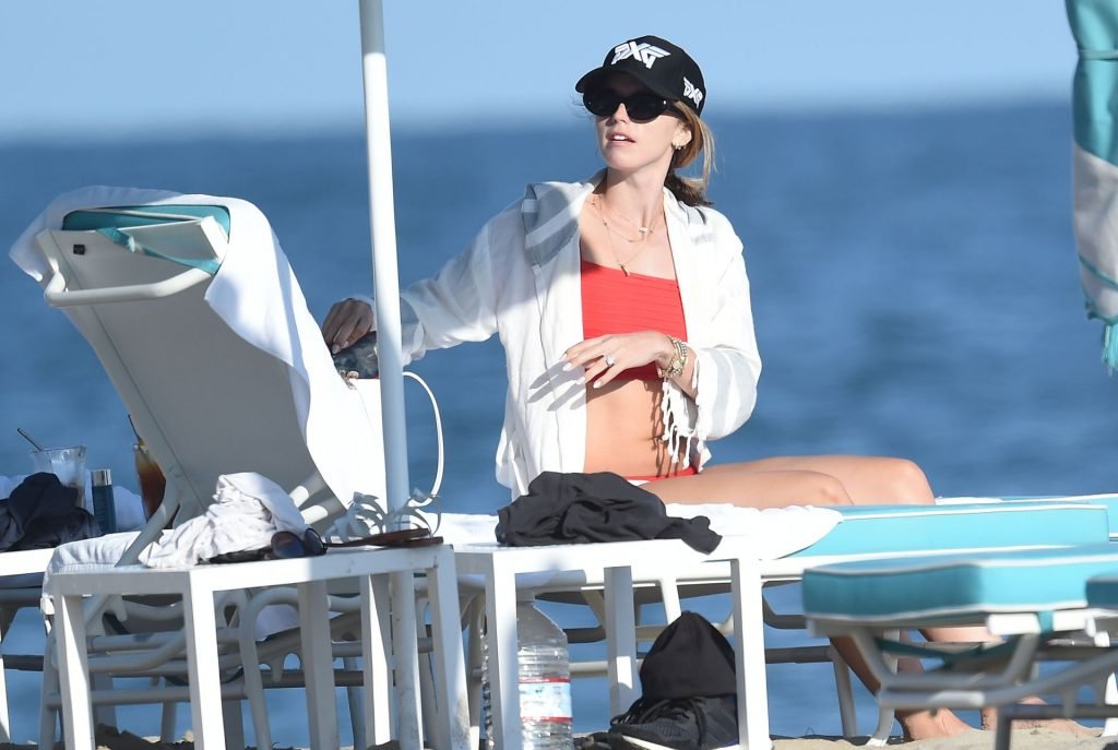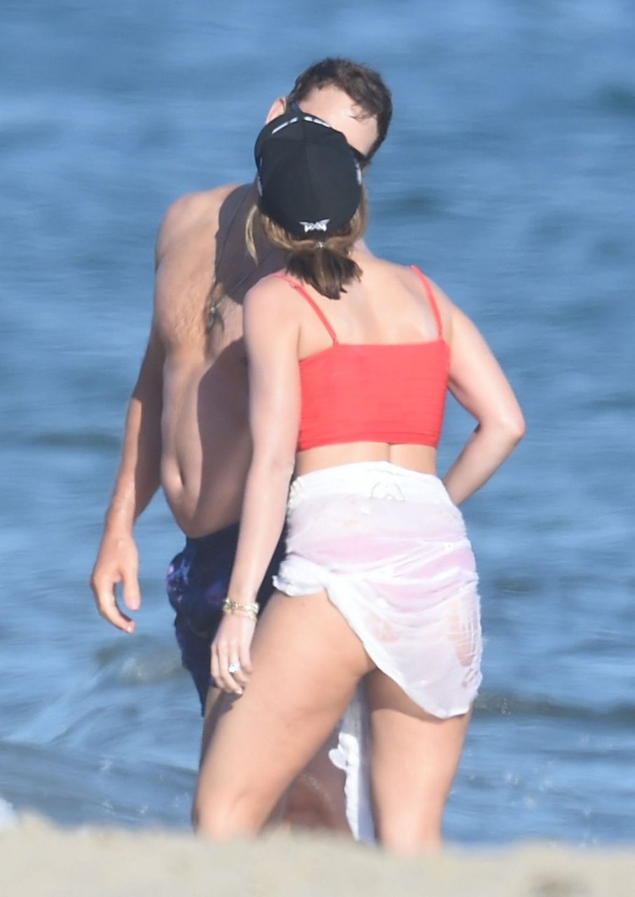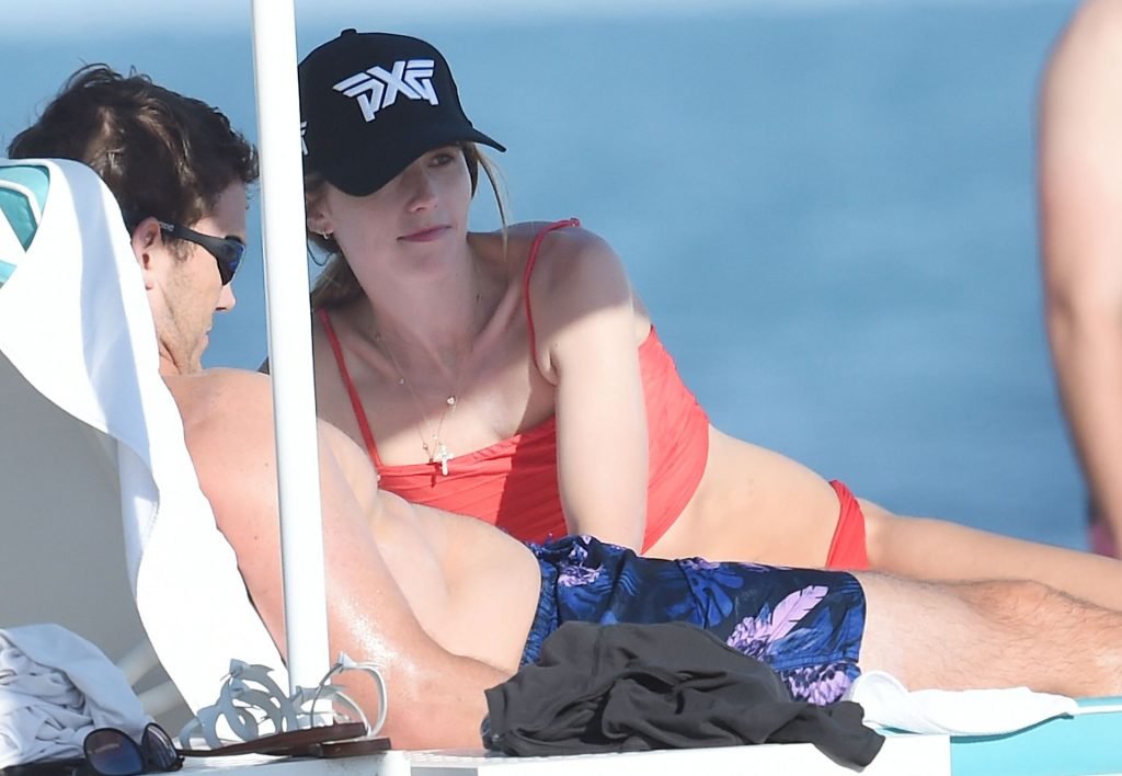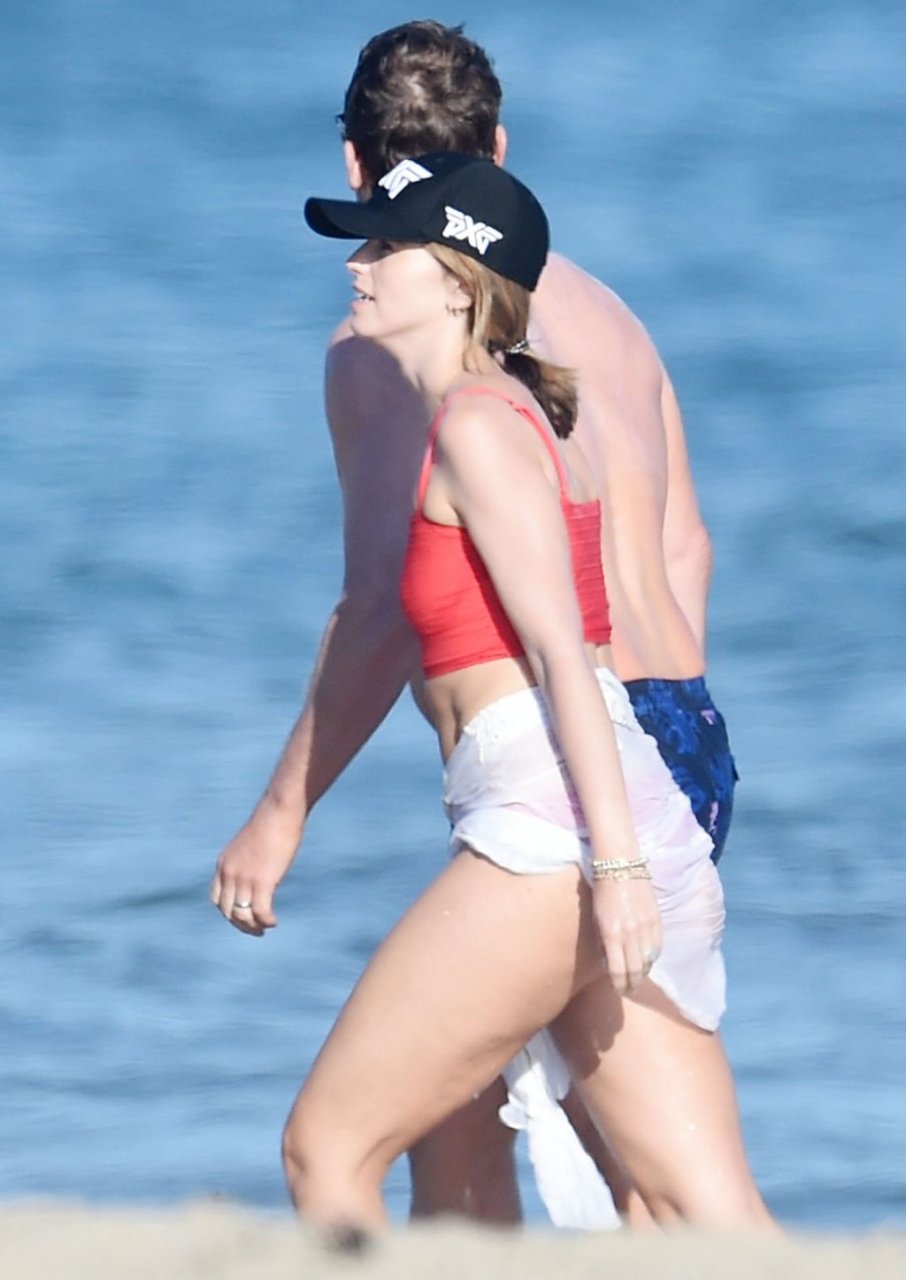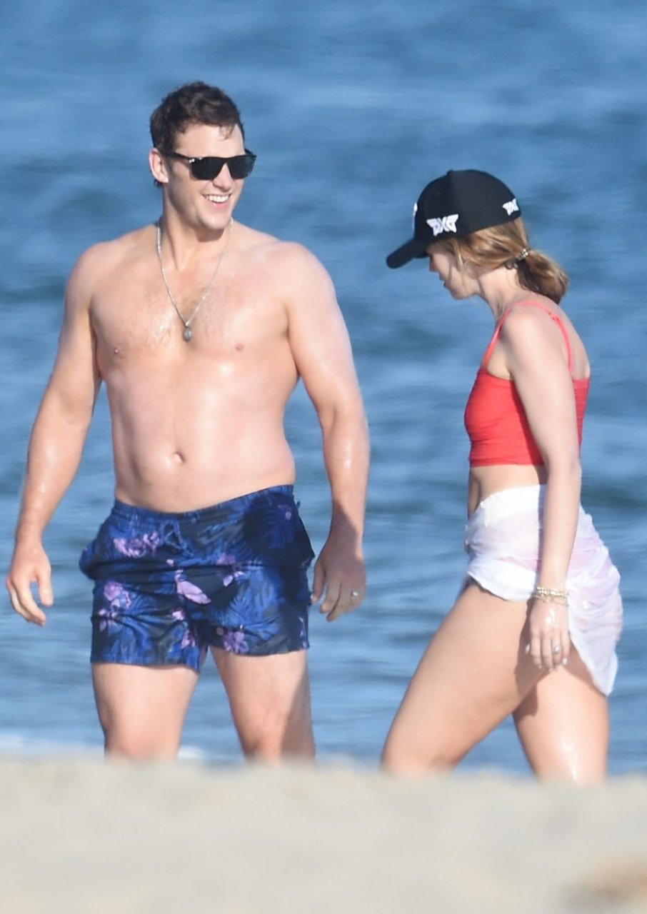 Крис Пратт и Роб Лоу без рубашек, в то время как Кэтрин Шварценеггер надевает красный купальник во время дня морского каякинга и падлбординга на пляже в Санта-Барбаре, 10.08.2019.