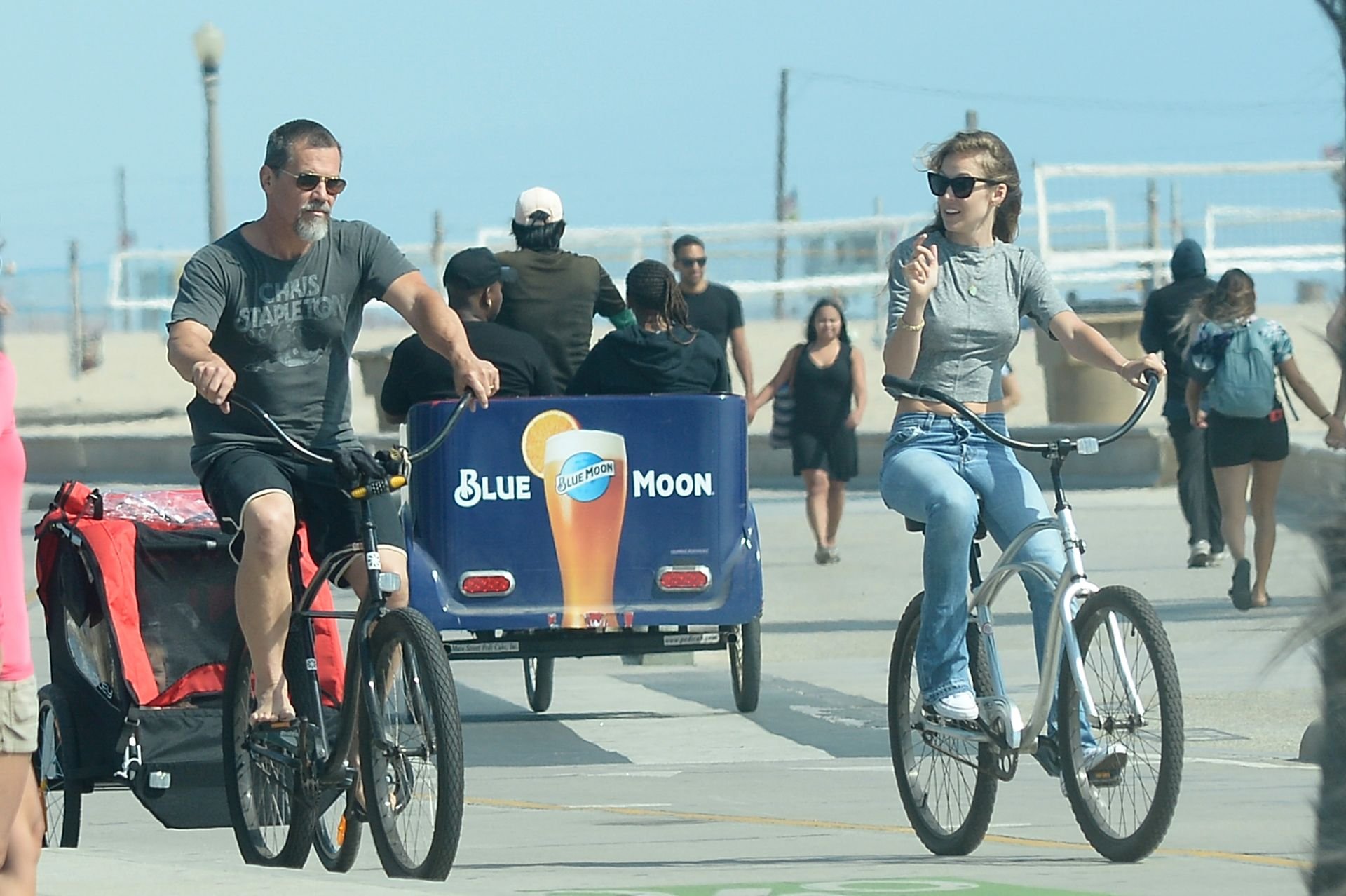 Джош Бролин и Кэтрин Бойд катаются на велосипедах у пляжа в Санта-Монике, Калифорния, 09.07.2019.