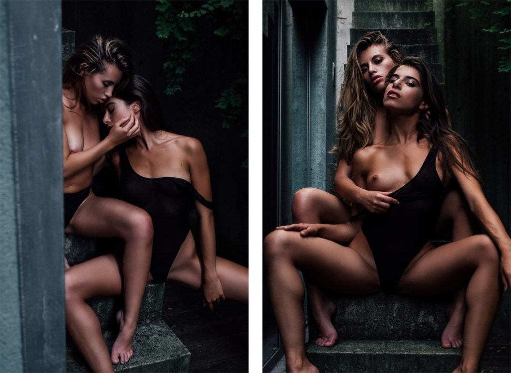 Две международные модели Катя Мартин (24) и Кьяра Бьянкино (24) позировали вместе для фотосессии Жюльена LRVR в Брюсселе, Бельгия (июнь 2018). Эти молодые красавицы показали свою лесбийскую любовь в жаркий день в секретном месте.