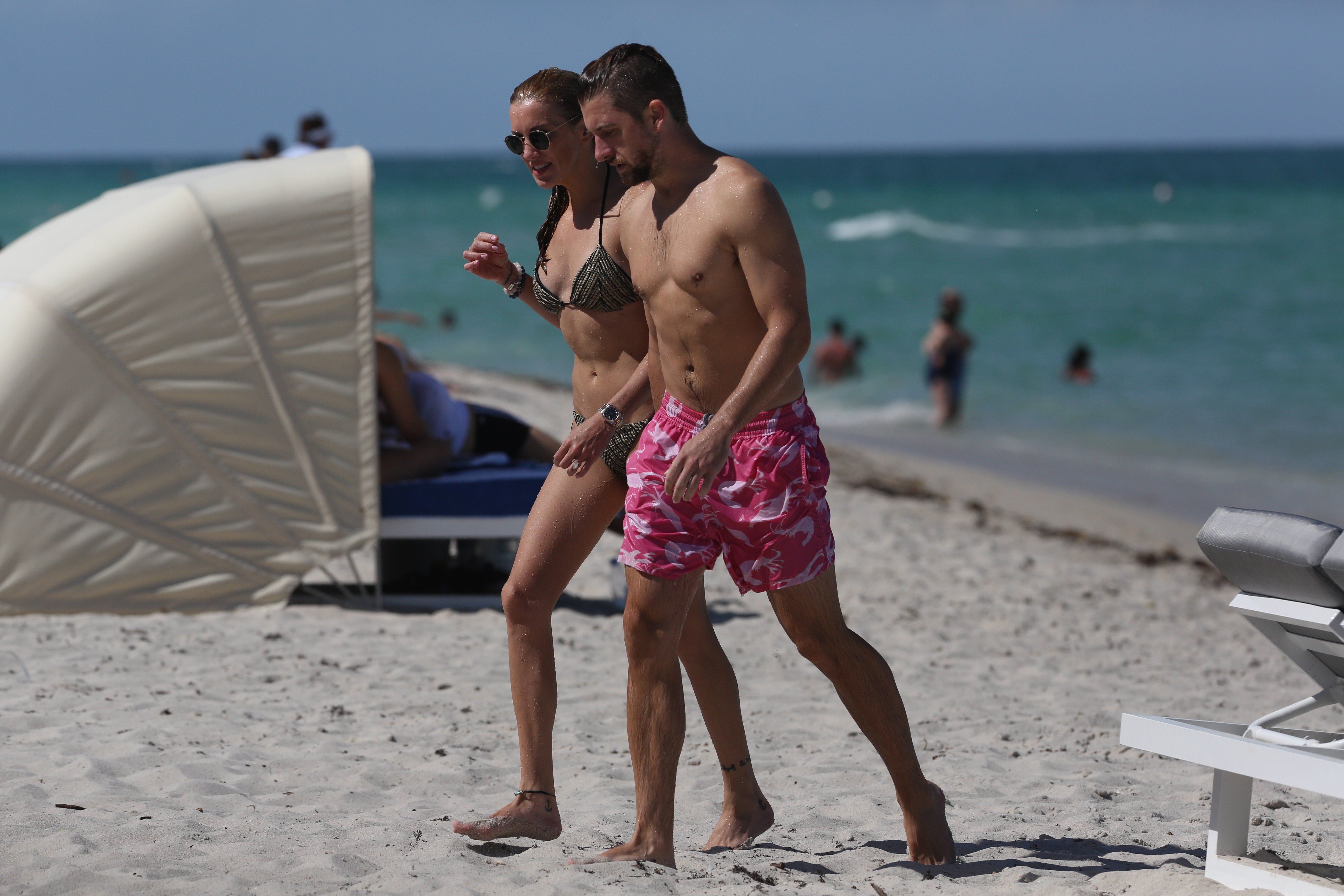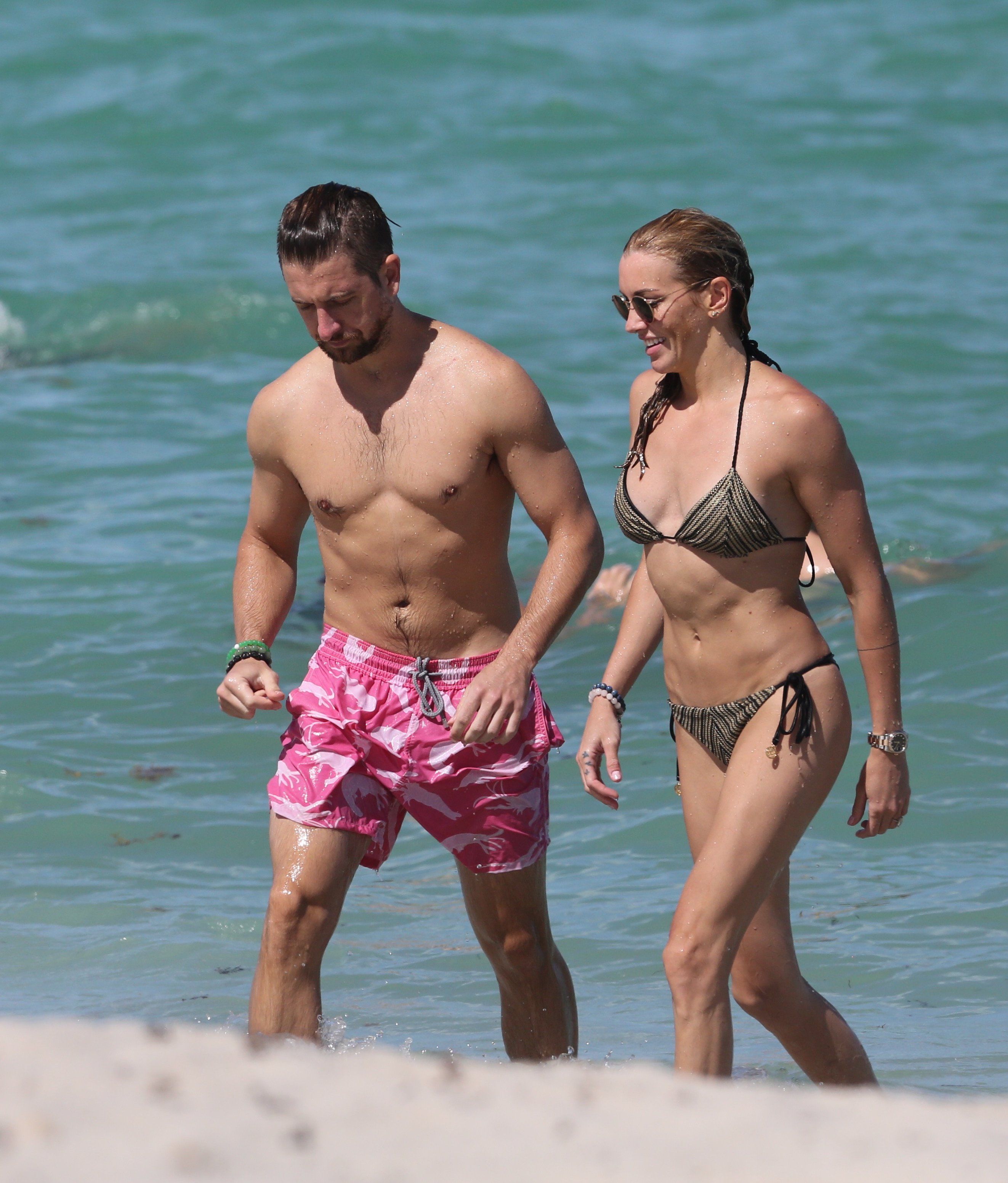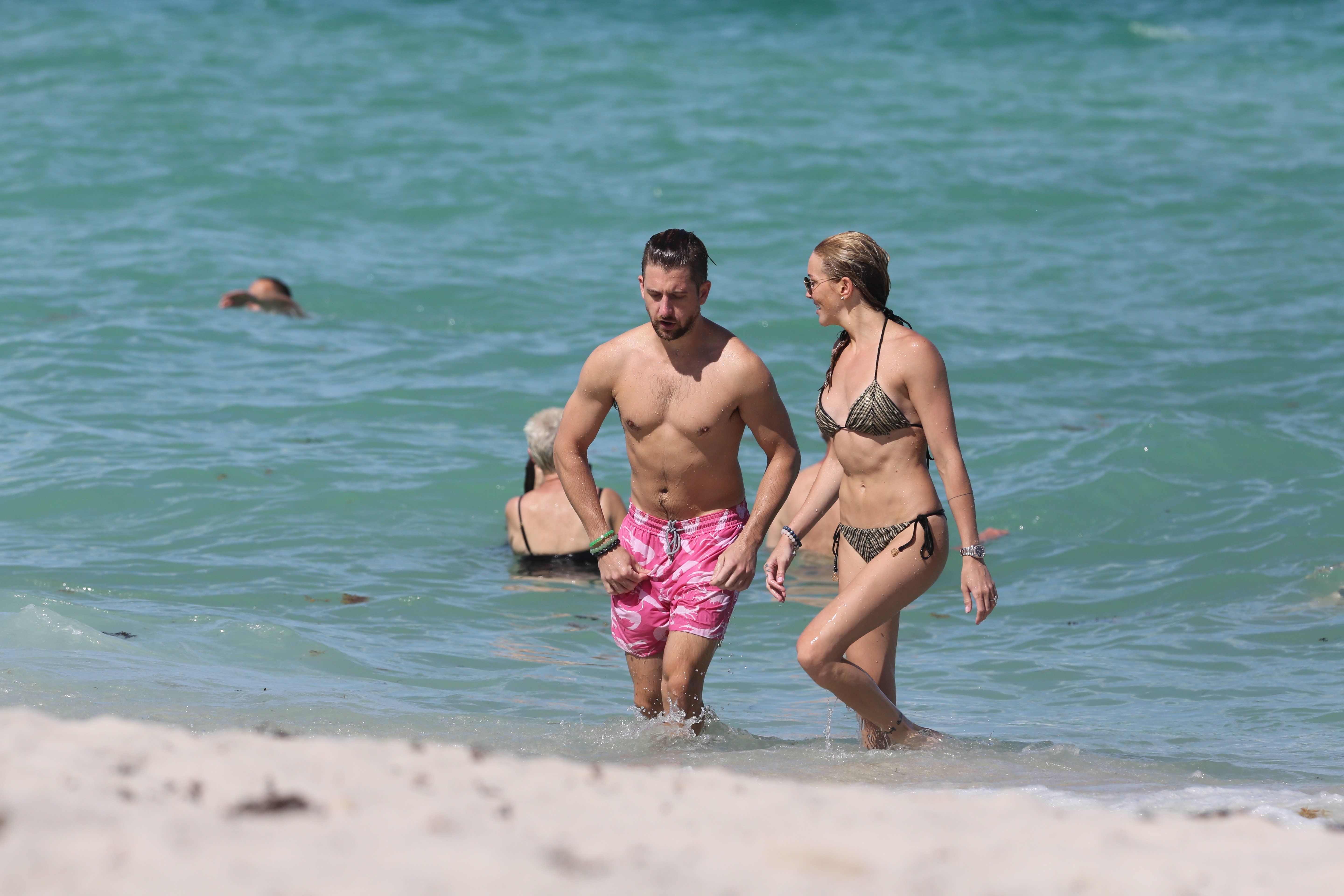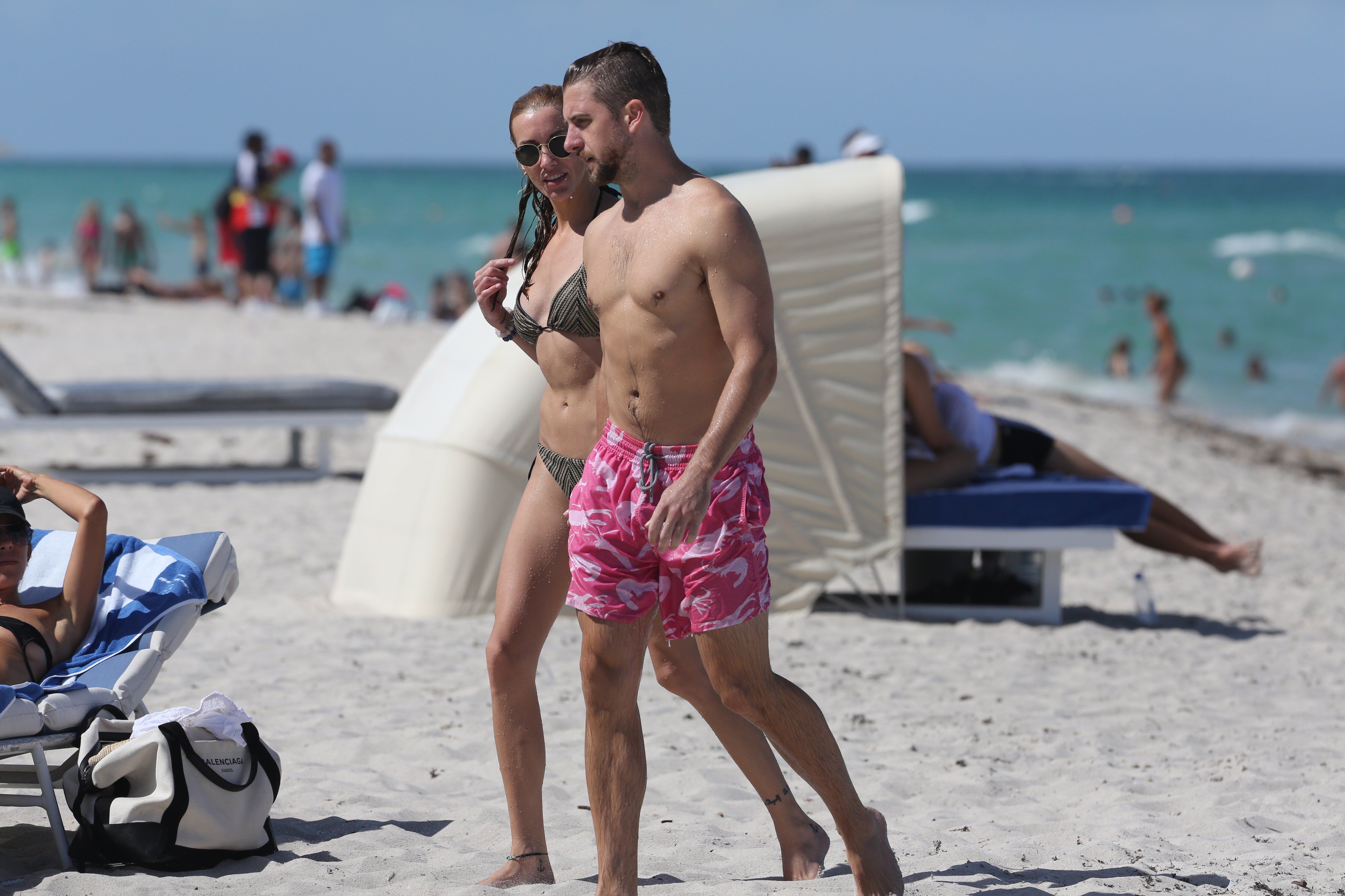 Кэти Кэссиди наслаждается днем с парнем на пляже в Майами, 01.07.2017. Кэти Кэссиди — американская актриса (Стрела). Возраст: 30 лет.