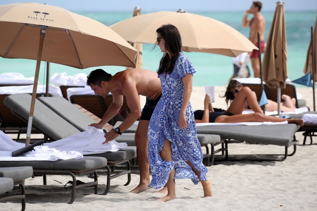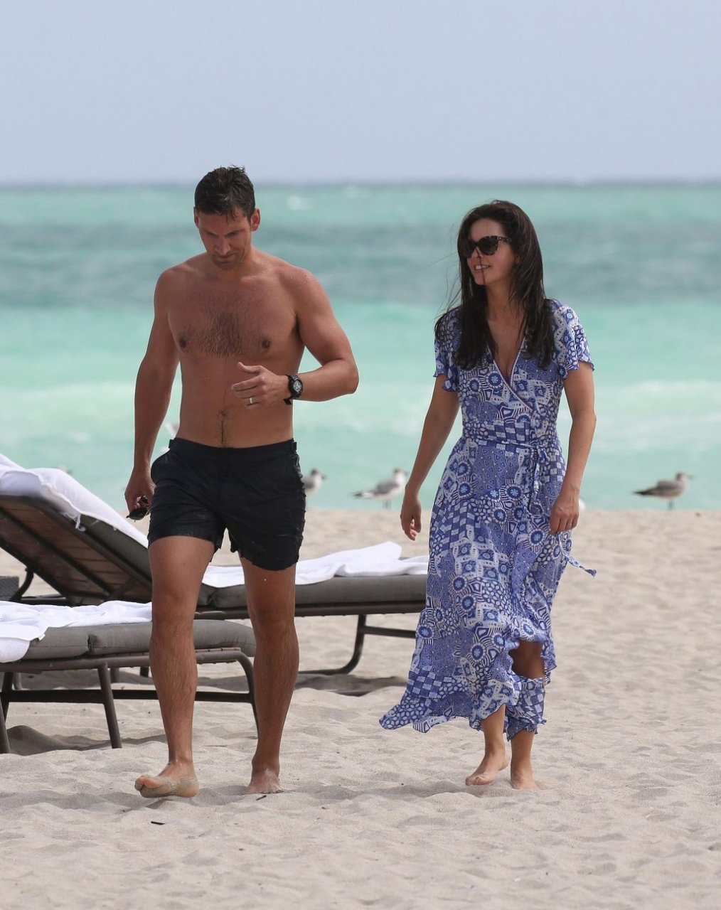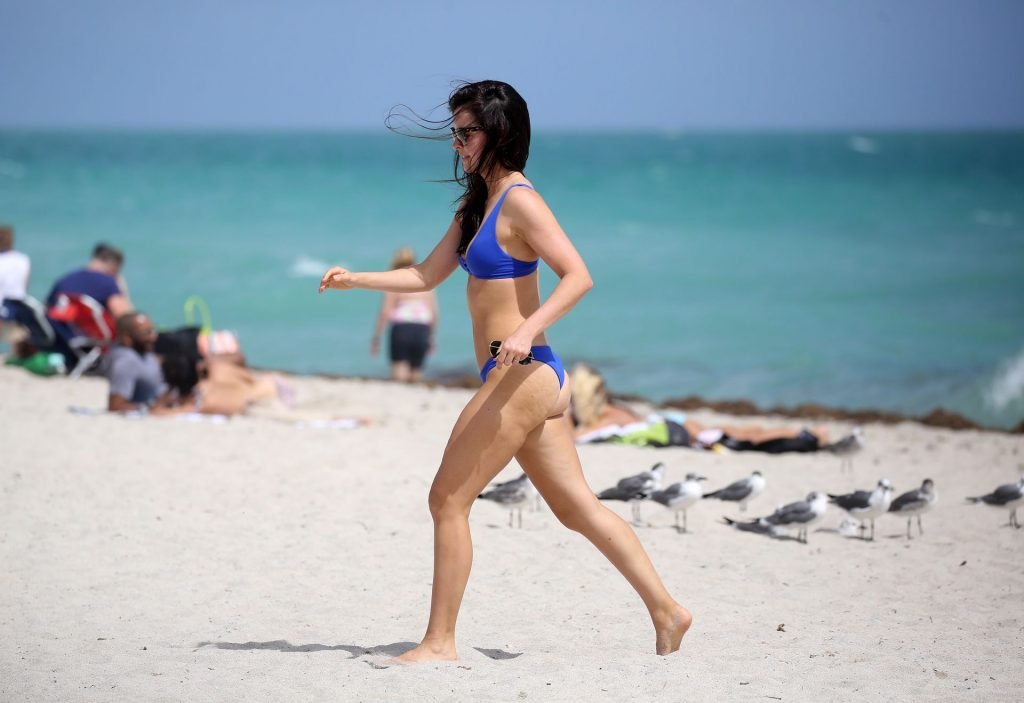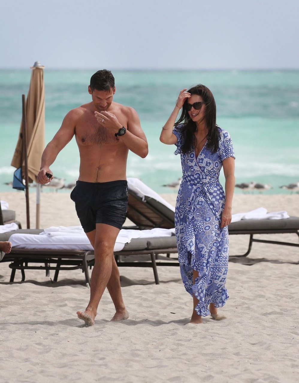 Известный шеф-повар Кэти Ли в синем бикини на пляже с бойфрендом Райаном Бигелом в Майами во время фестиваля South Beach Wine & Food Festival, 23.02.2019.