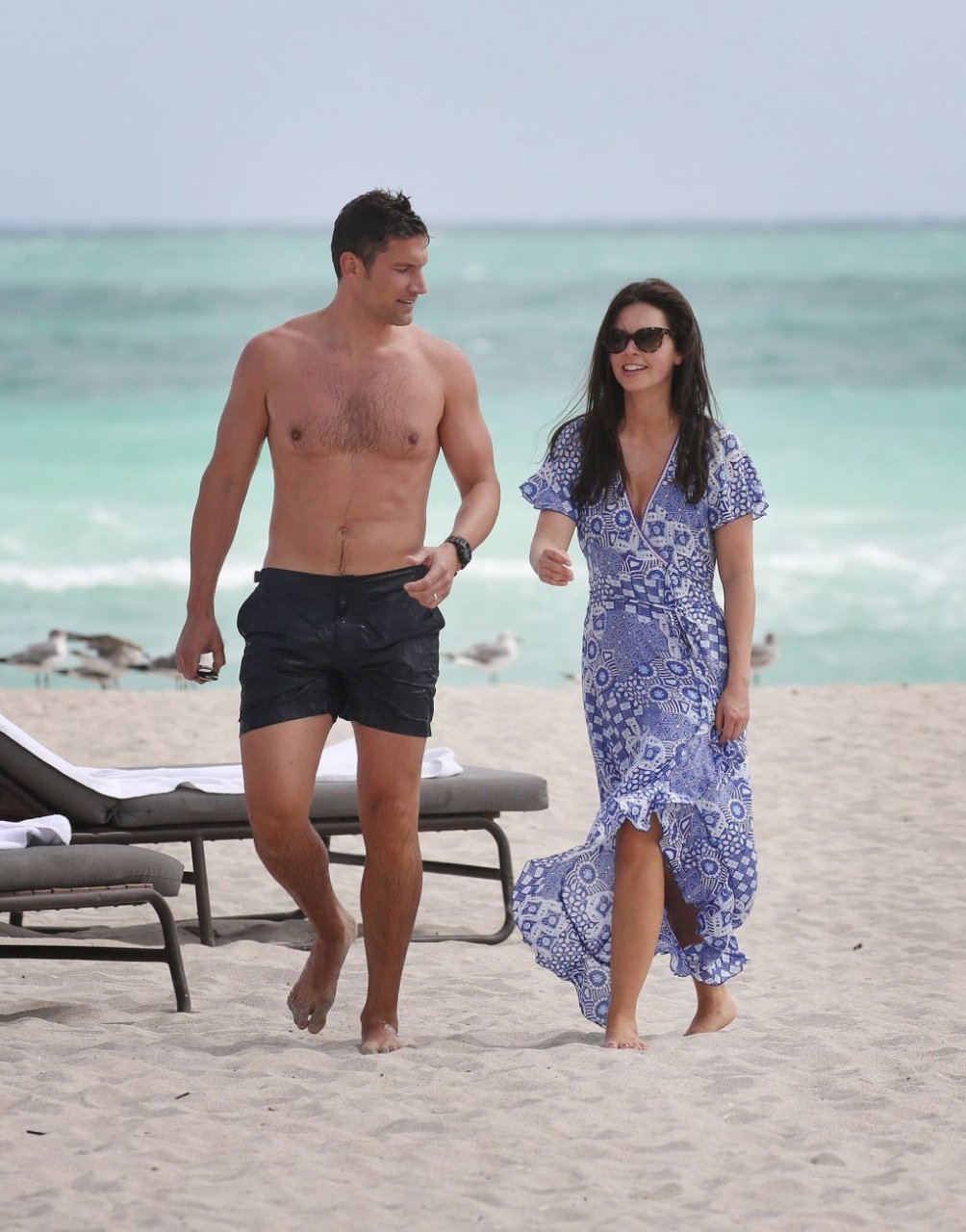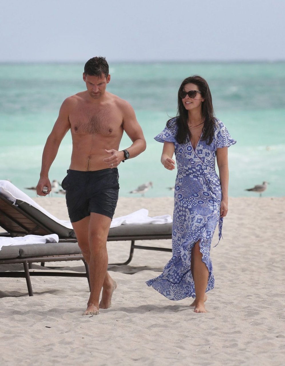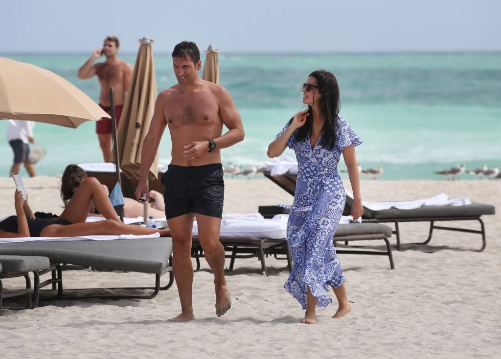 Известный шеф-повар Кэти Ли в синем бикини на пляже с бойфрендом Райаном Бигелом в Майами во время фестиваля South Beach Wine & Food Festival, 23.02.2019.