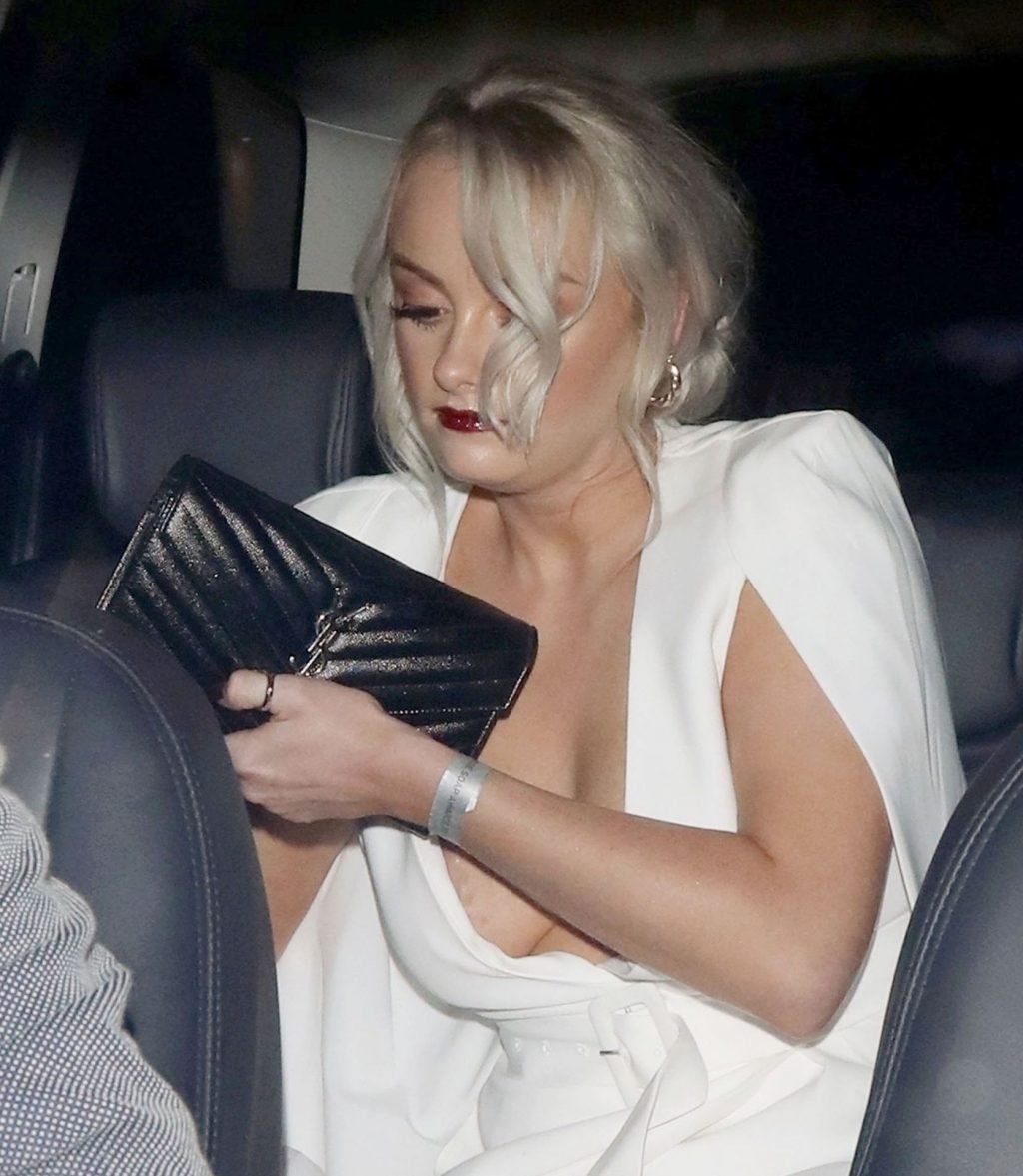 Кэти МакГлинн посещает церемонию Inside Soap Awards в ночном клубе Sway в Лондоне, 10/07/2019. Потрясающая блондинка продемонстрировала глубокое декольте и нижнее белье, покидая мероприятие.