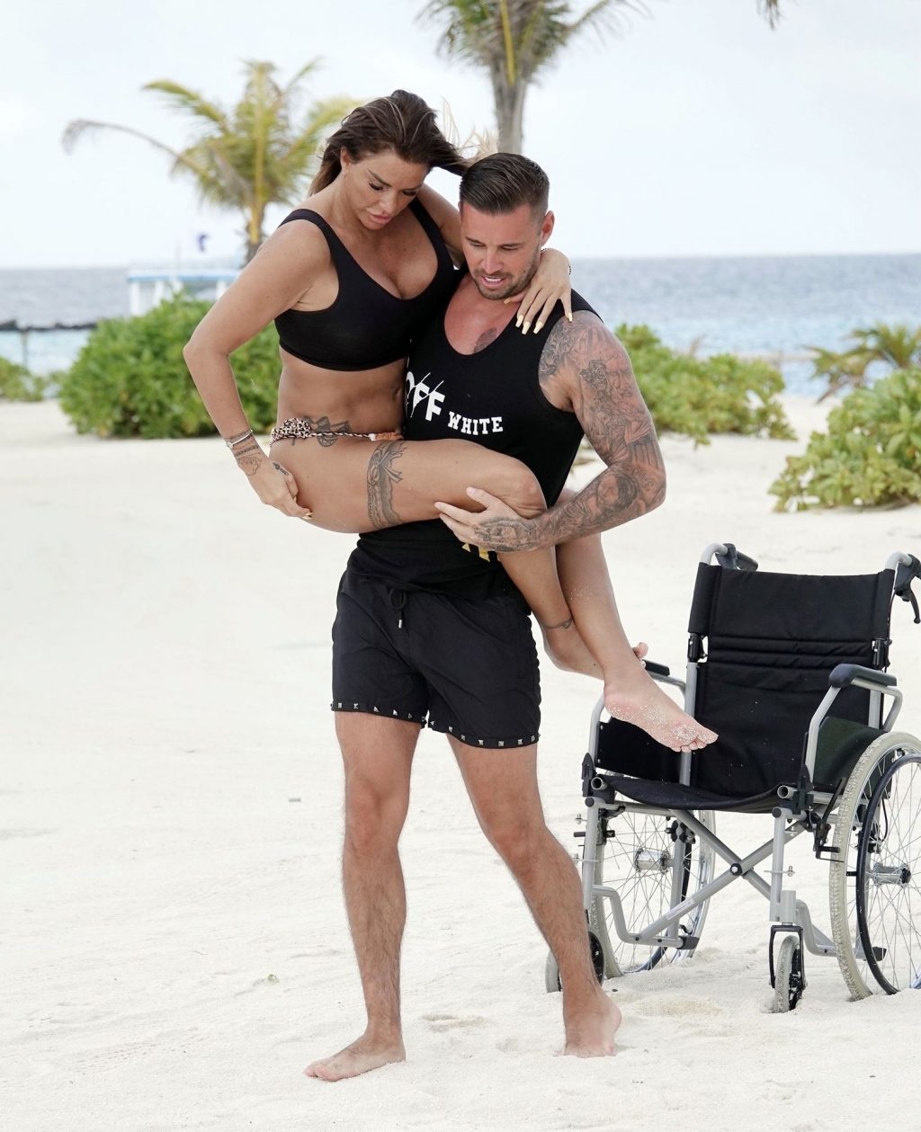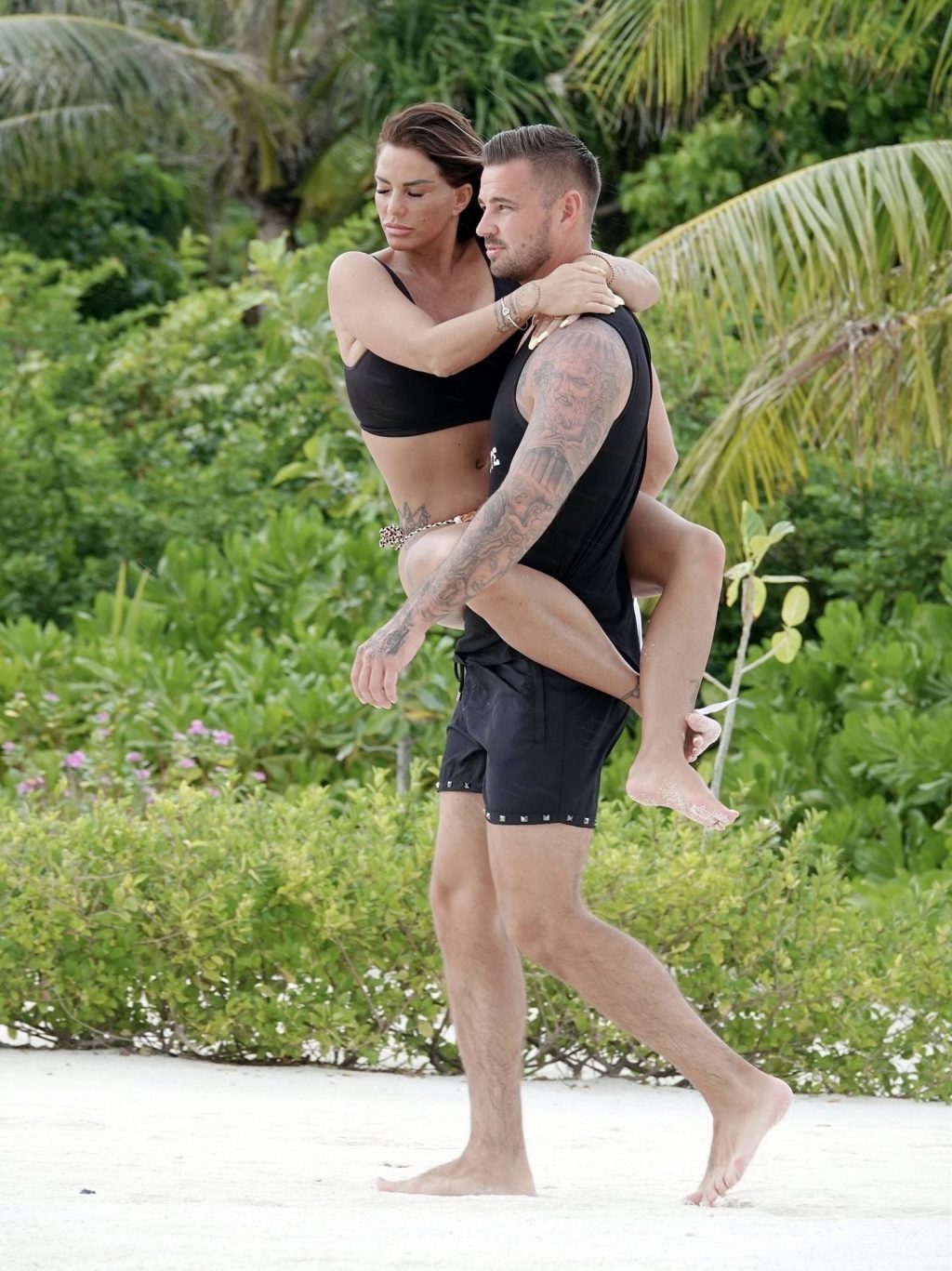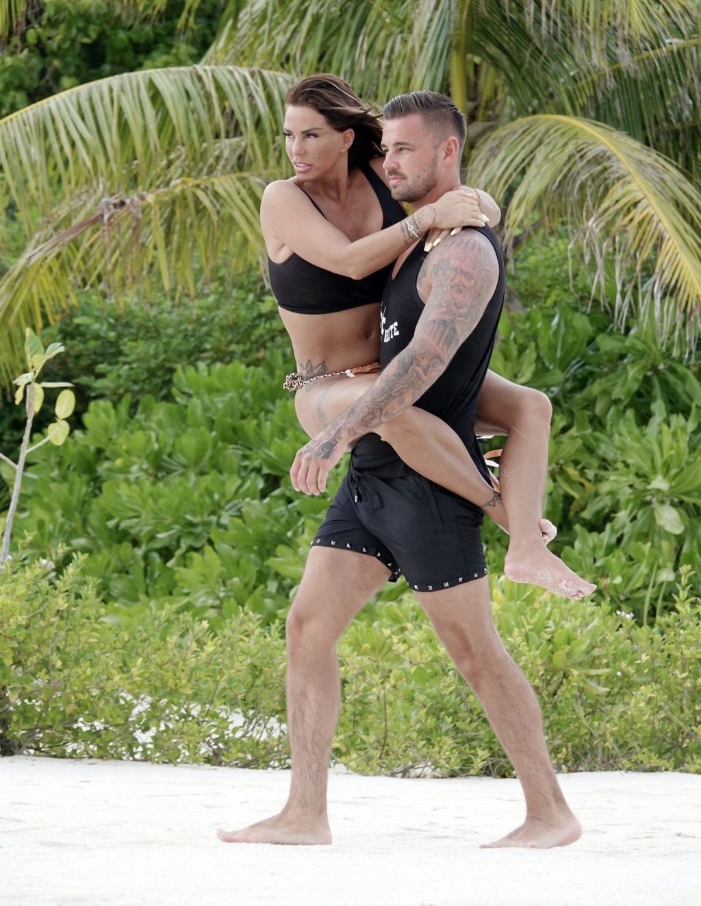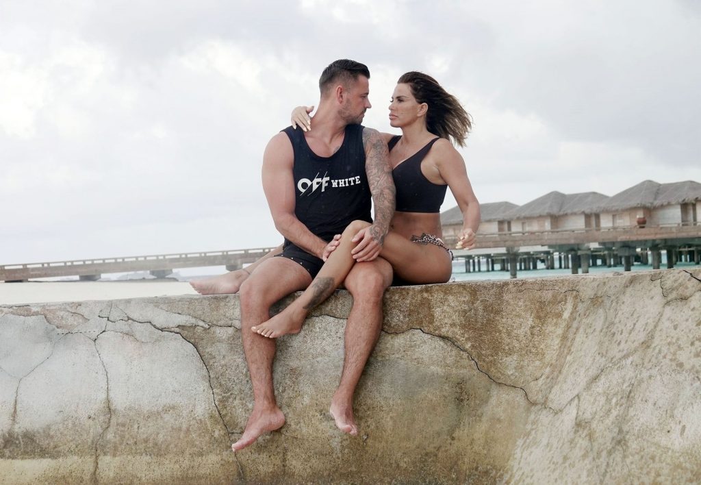 Делясь несколькими нежными моментами любви во время их идиллического солнечного отдыха в более теплых краях, сексуальная британская модель Кейти Прайс, также известная как Джордан, и ее парень Карл Вудс выглядят влюбленными во время их романтического отпуска на Мальдивах, 24.10.2020.