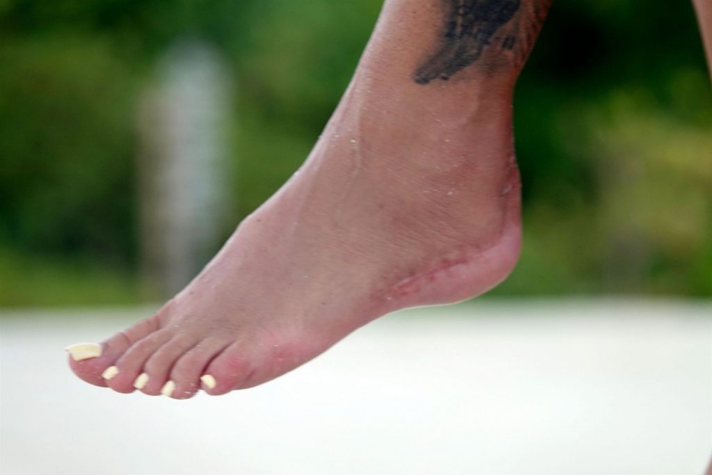 Кейти все еще демонстрирует последствия своих травм с несколькими шрамами на ноге после ужасной аварии в начале года, когда она сломала обе ноги, и выглядит счастливой с возлюбленным, наслаждаясь небольшим отдыхом.