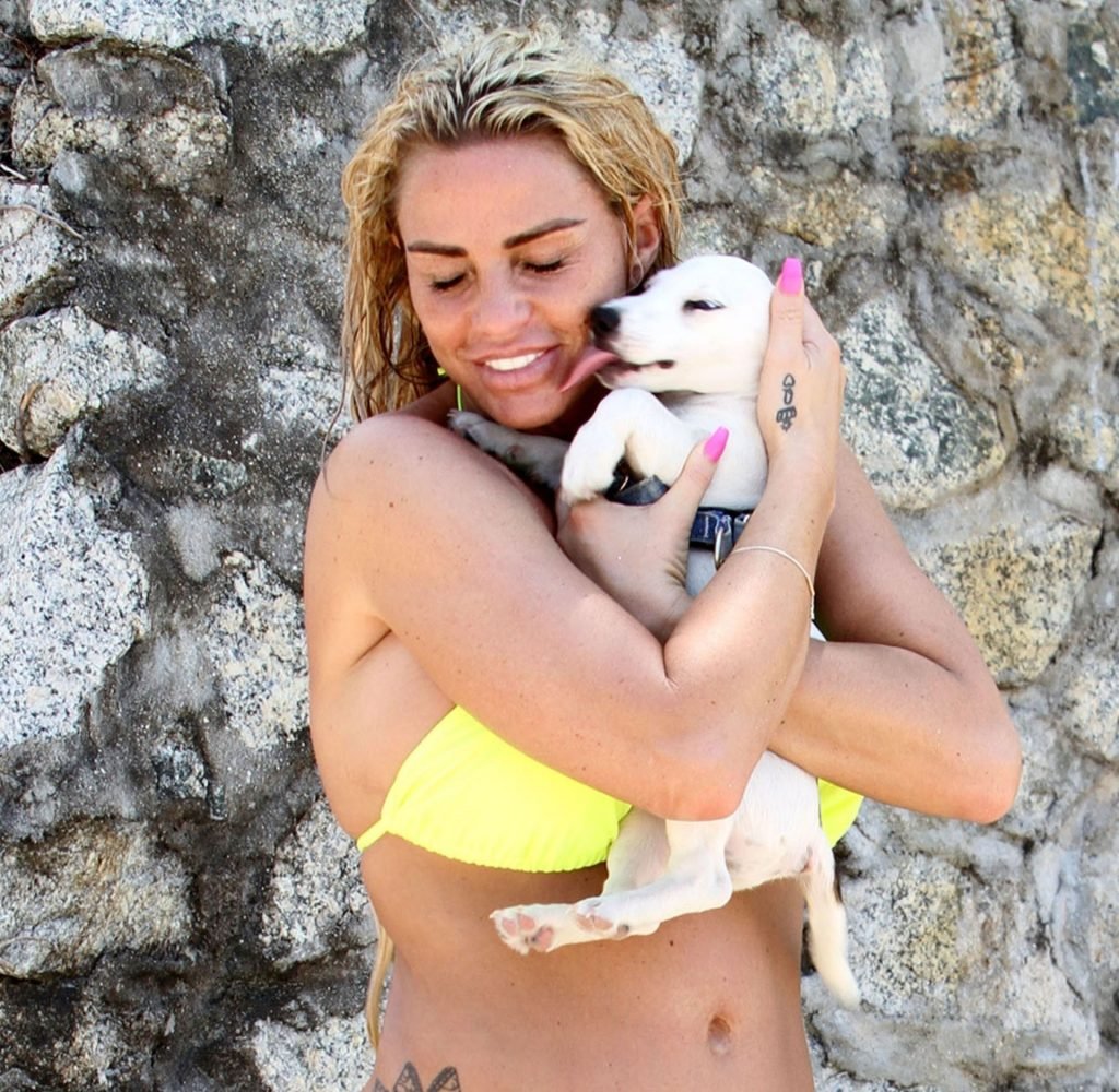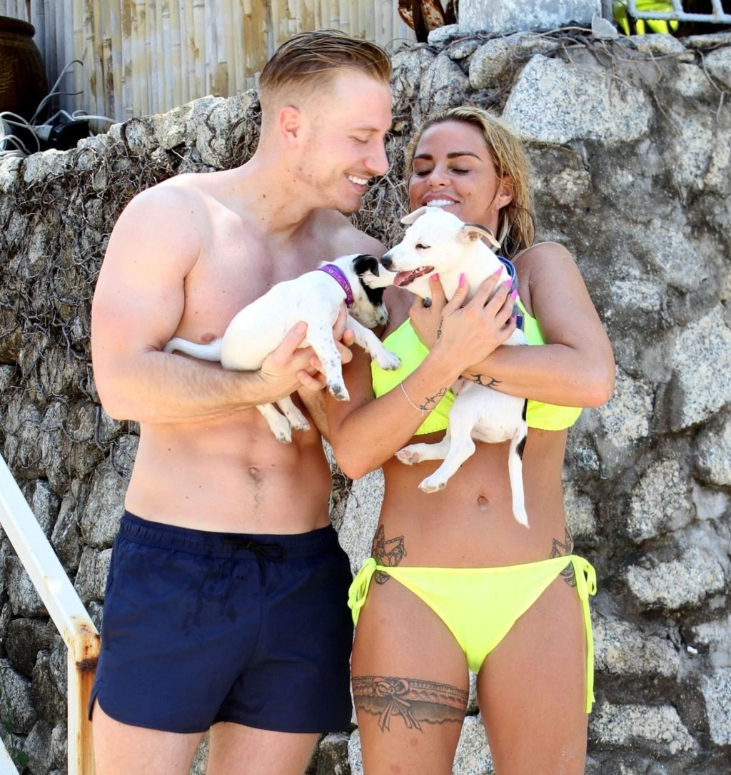 Katie Price (также известная как Джордан) показывает свою любящую сторону по отношению к животным в своем курорте Celes Beachfront Resort на Ко Самуи в более счастливые времена с Крисом Бойсоном во время их отпуска в марте 2019 года.