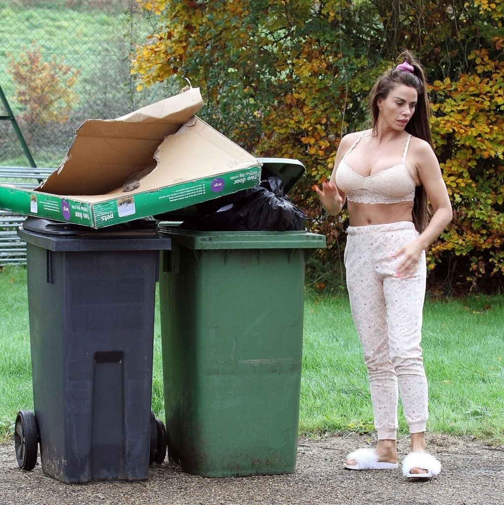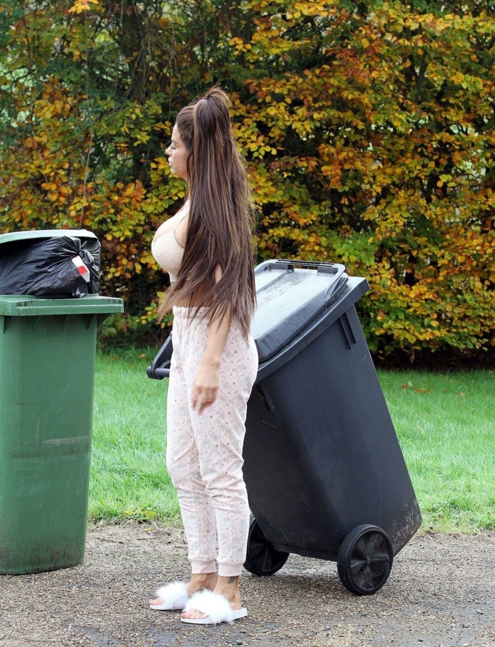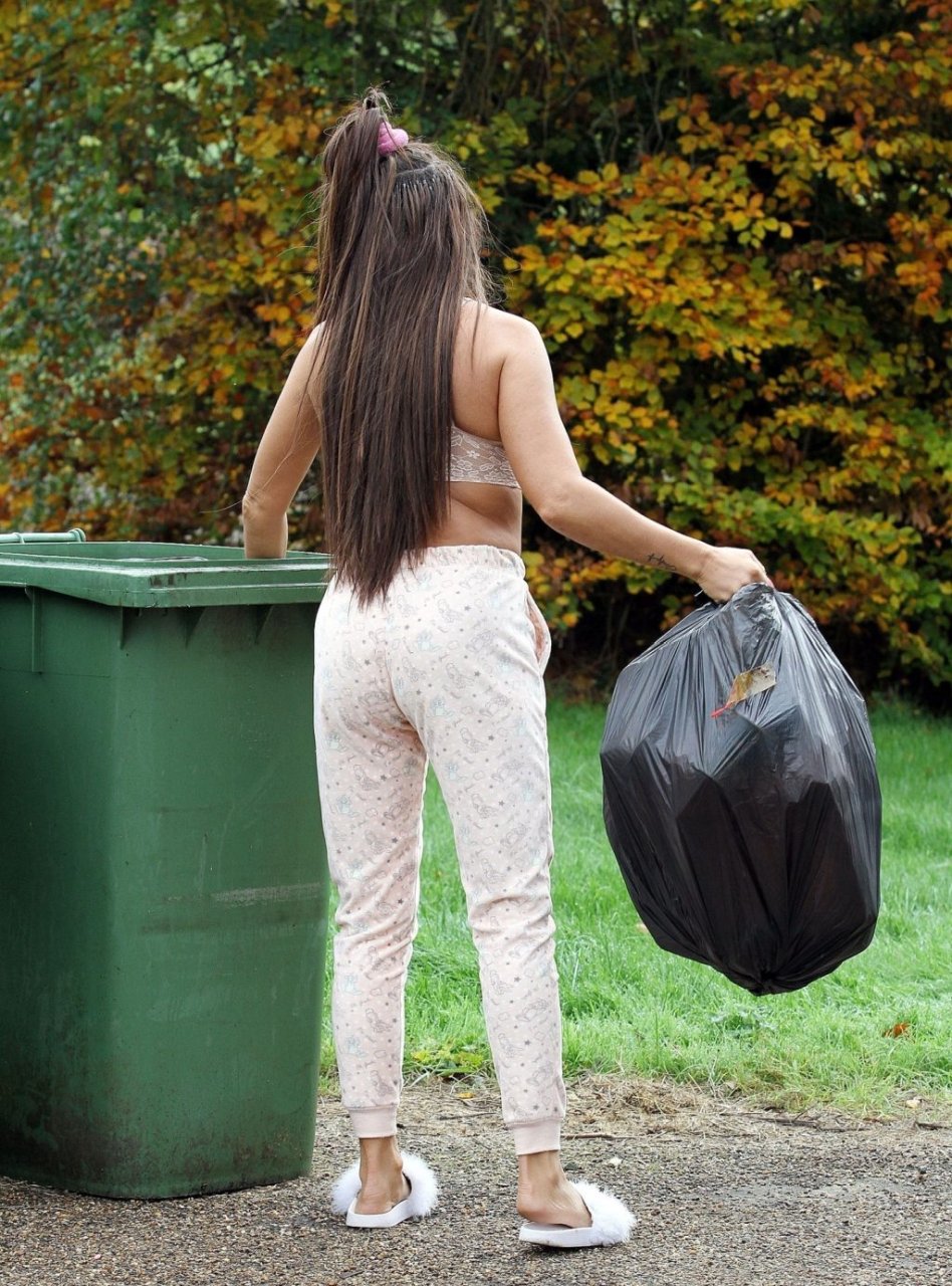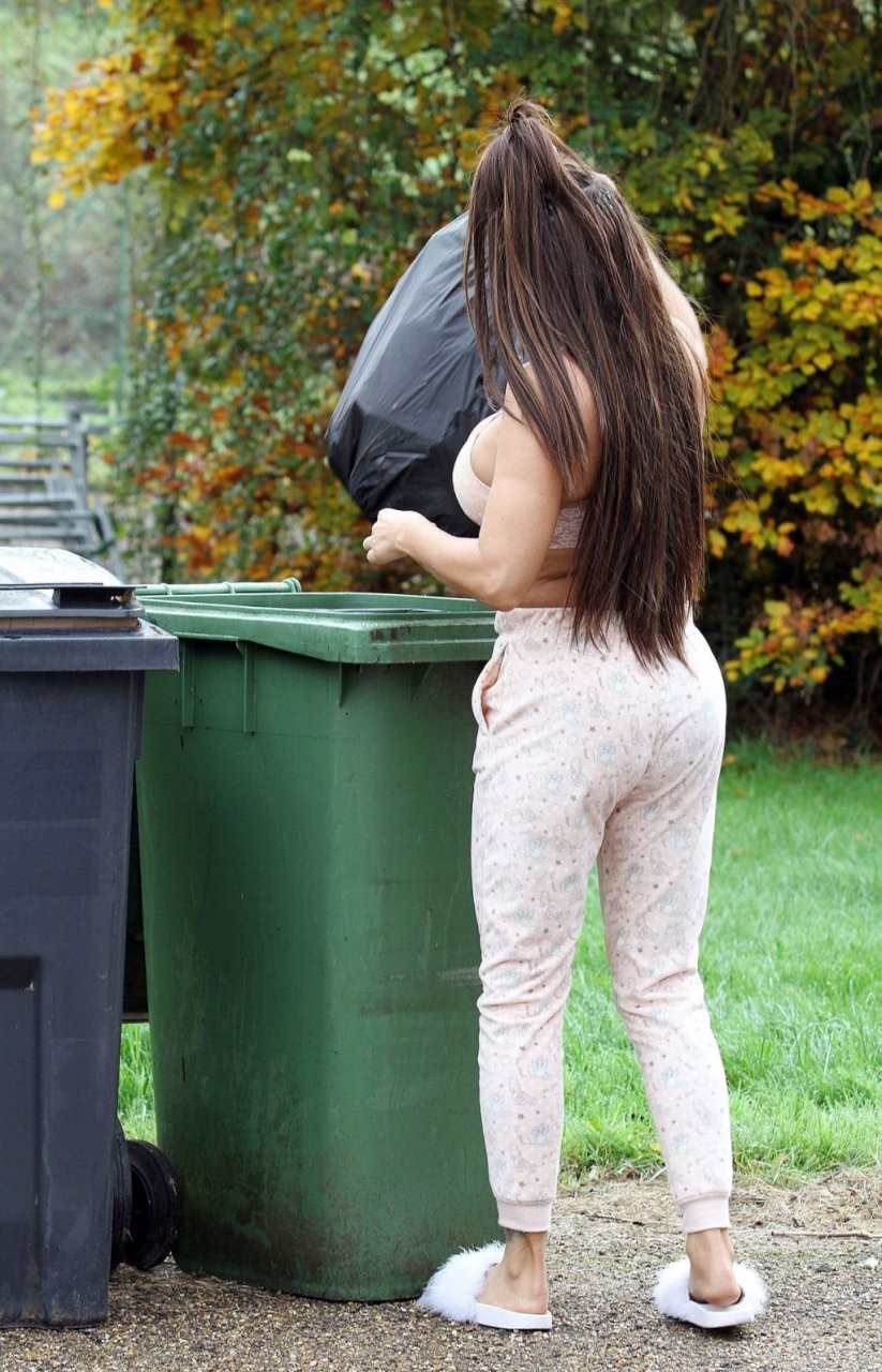 Бывшая гламурная модель Кэти Прайс (Джордан) замечена, когда выносит мусор, стоя рядом с пословицей: “Если хочешь что-то сделать, сделай это сам.” Кэти без макияжа выглядит немного серьезной в своих домашних спортивных штанах и бюстгальтере, демонстрируя выпирающее декольте – Лондон, 11/11/2018. Все это происходит в то время, когда модель переживает некоторые текущие финансовые трудности.