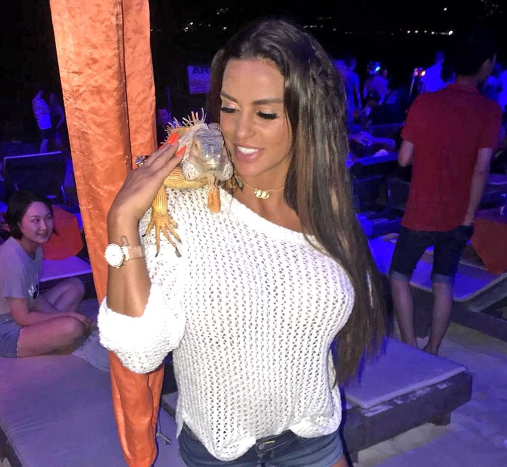 Британская модель Кэти Прайс (Джордан) выглядела спокойно, держа на плечах пару рептилий, и несмотря на широко разрекламированные финансовые трудности, Кэти, казалось, наслаждалась испанской ночной жизнью во время отпуска, 09/03/2018.
