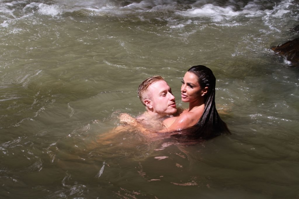 'Сексуальная и топлесс'? Ну, на 50% точно! Жалкие позы, которые никого не обманывают — эти снимки были 'случайно' сделаны проходящим фотографом. А что касается её 'парня', их отношения включаются и выключаются чаще, чем лампочка! (Лампочка на 15 ватт намного ярче обоих!)