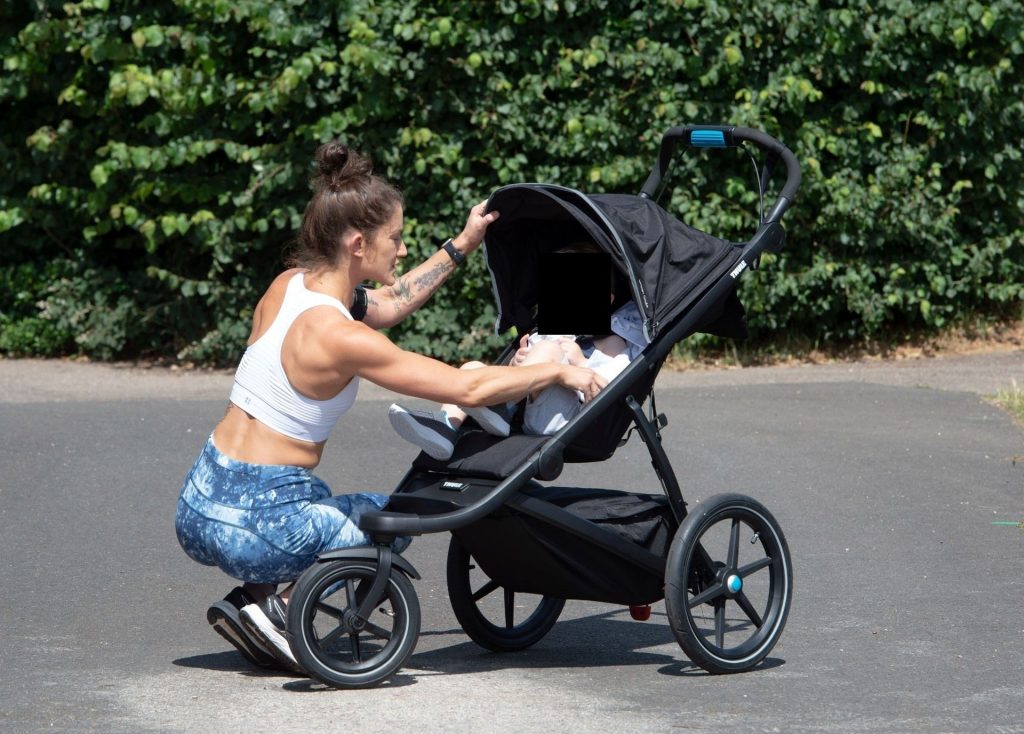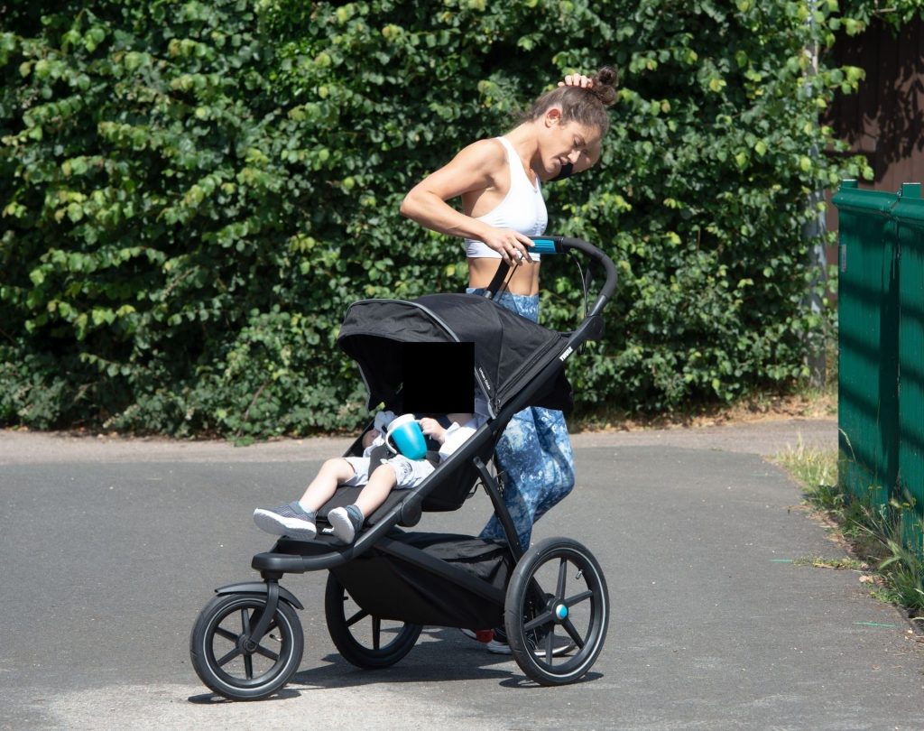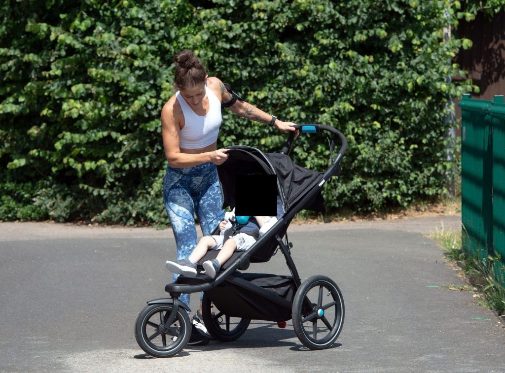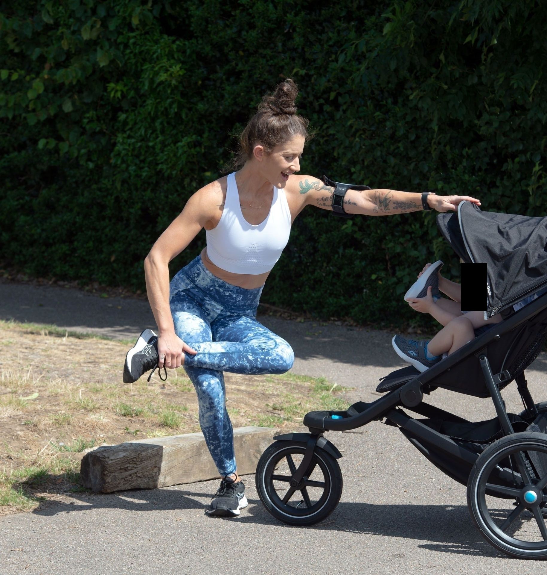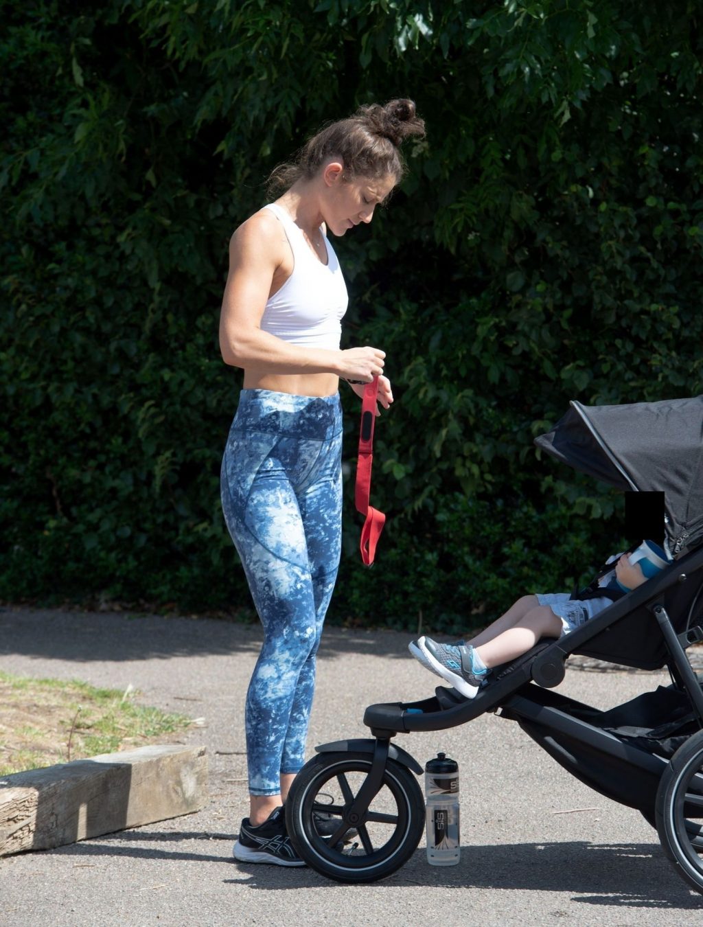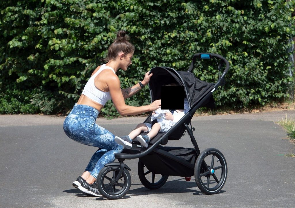 “Звезда “X-Factor” Кэти Уайсел демонстрирует свою мускулистую фигуру, прогуливаясь с сыном Хадсоном по Северному Лондону, 16.06.2020. Одинокая мама показывает свои потрясающие мышцы пресса в синих спортивных штанах и белом топе, когда ее замечают неподалеку от дома.
