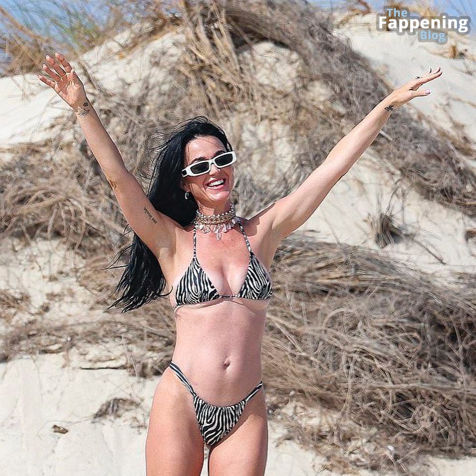 Кэти Перри эффектно позирует в бикини-стрингах на пляже Ибицы, показывая свои роскошные формы в действительно смелом образе.