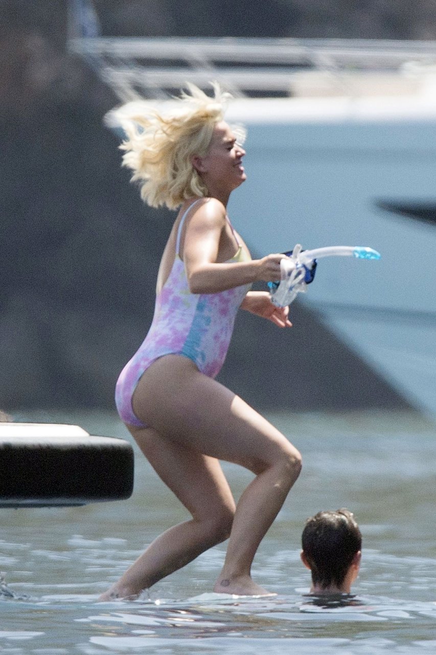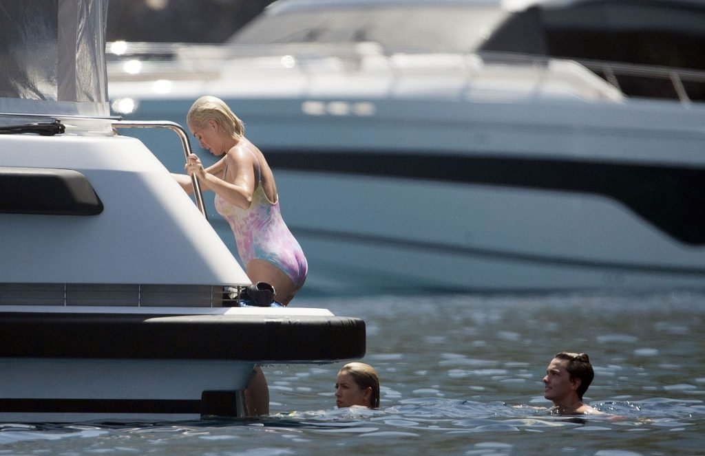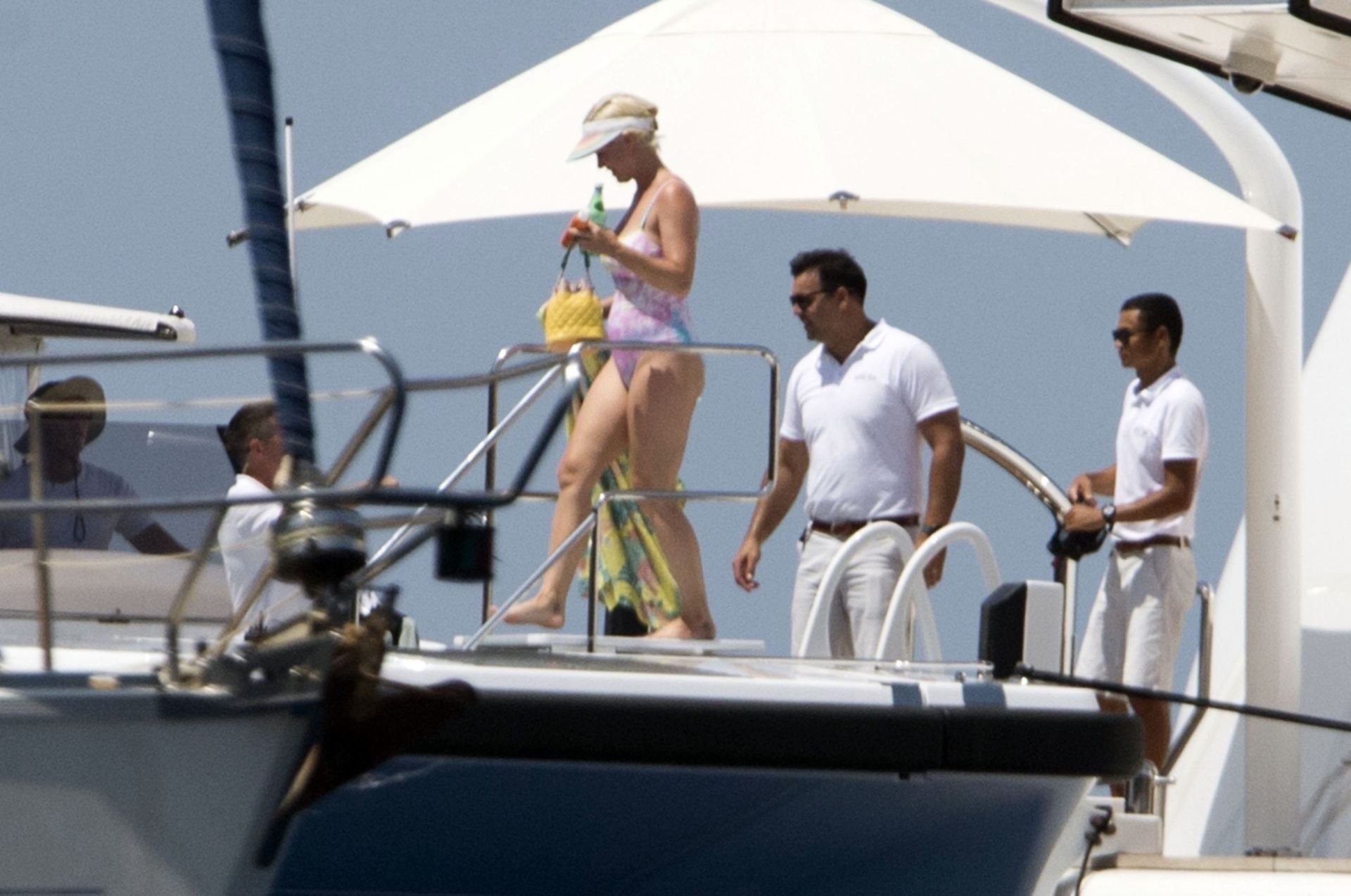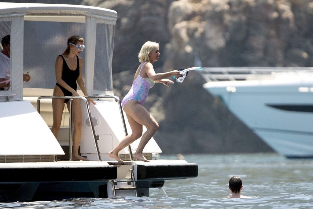 При температуре, достигшей пика жары, охватившей Европу и побережье Испании, пару заметили на борту их мегаяхты в Средиземном море. Кэти была в многоцветном купальнике, весело ныряла с лодки и охлаждалась, купаясь в море вместе с Дашей Жуковой и её партнёром Ставросом Ниархосом.