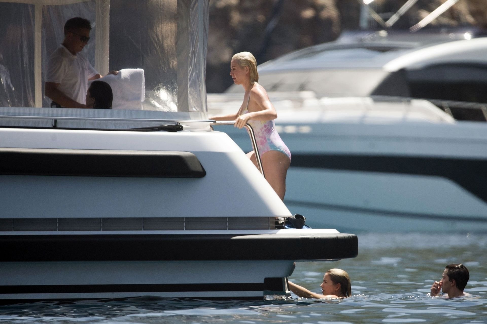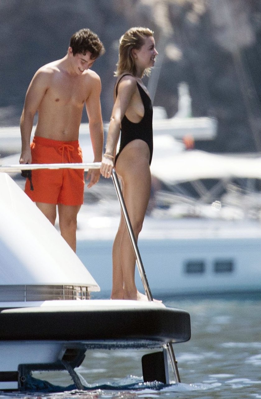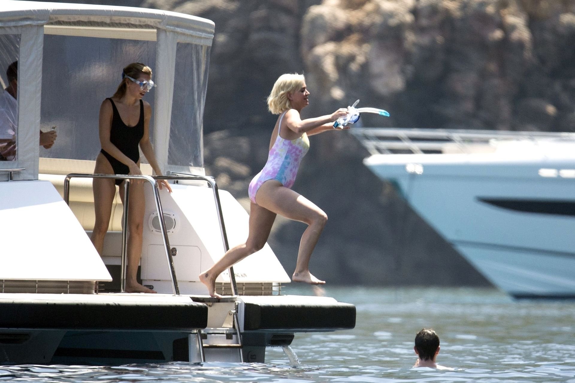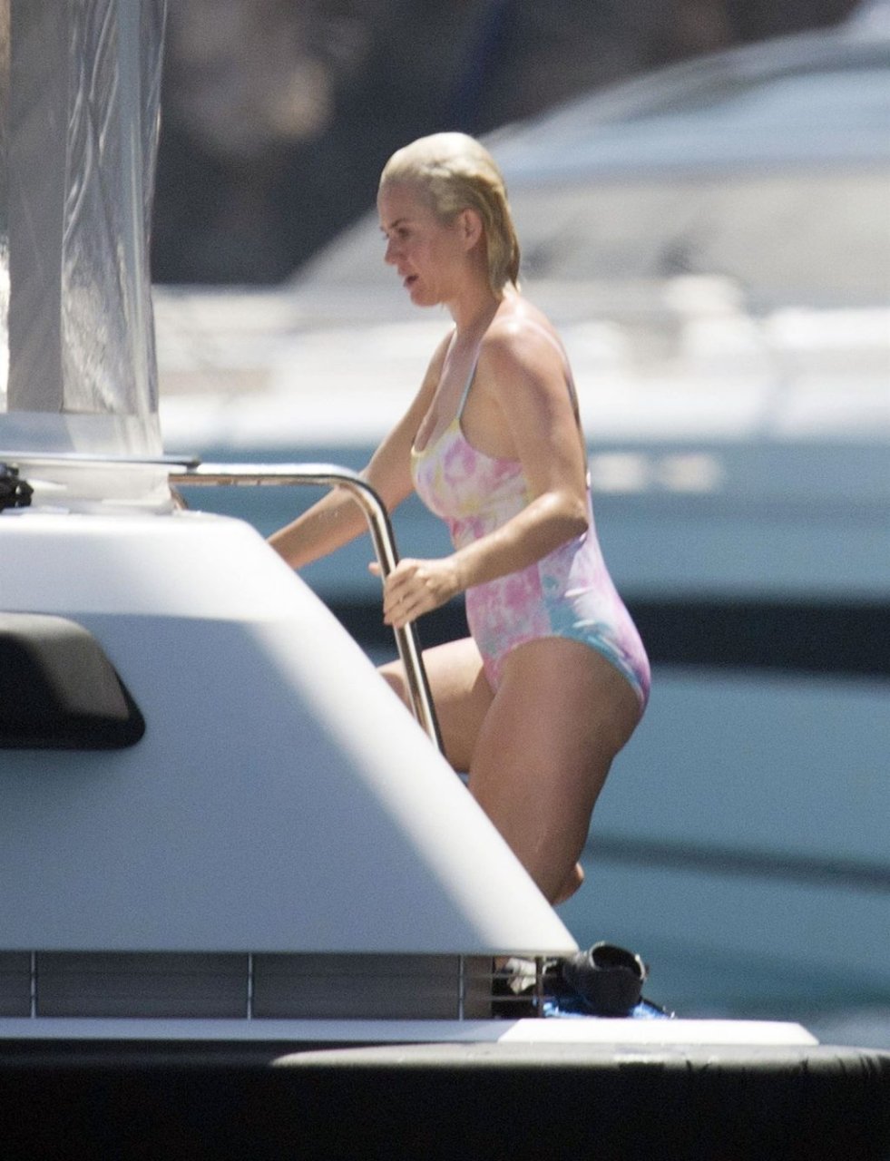 При температуре, достигшей пика жары, охватившей Европу и побережье Испании, пару заметили на борту их мегаяхты в Средиземном море. Кэти была в многоцветном купальнике, весело ныряла с лодки и охлаждалась, купаясь в море вместе с Дашей Жуковой и её партнёром Ставросом Ниархосом.