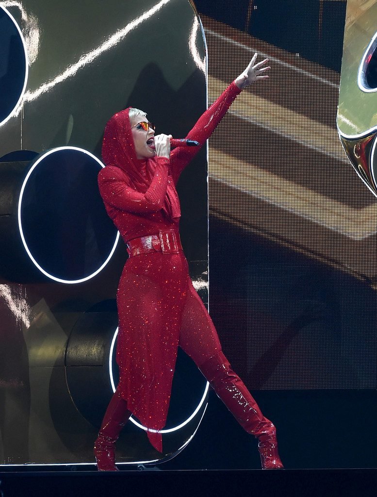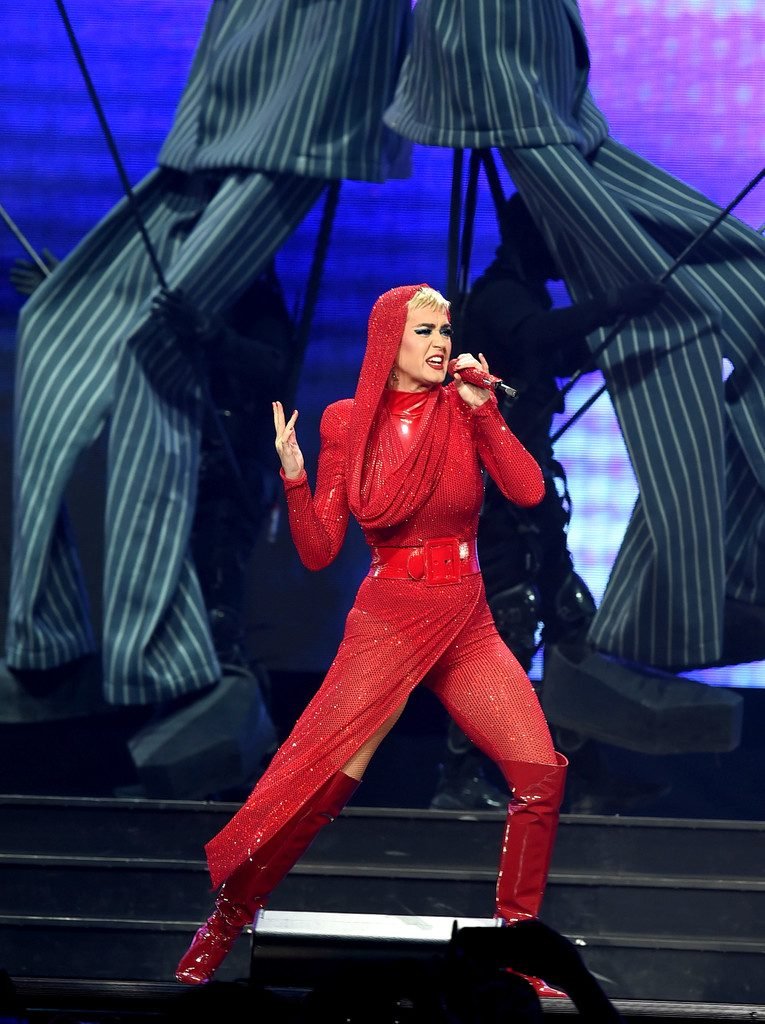 Кэти Перри выступает в Staples Center в Лос-Анджелесе, 07.11.2017. Кэти Перри — американская популярная певица, автор песен, актриса. Возраст – 33 года.