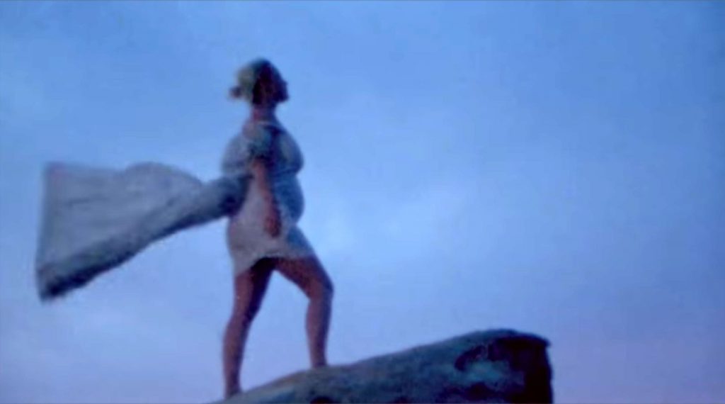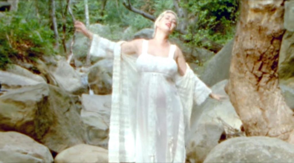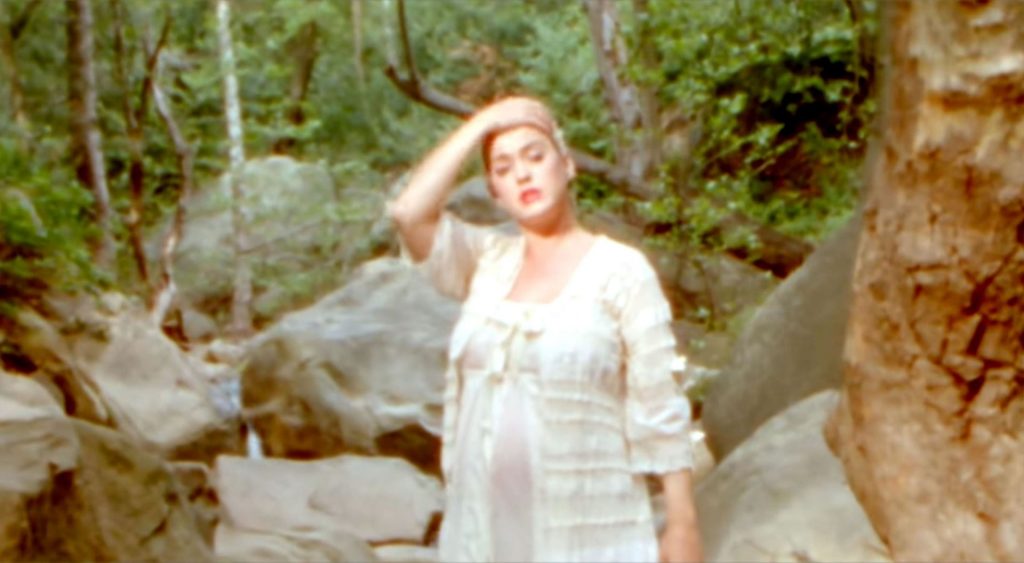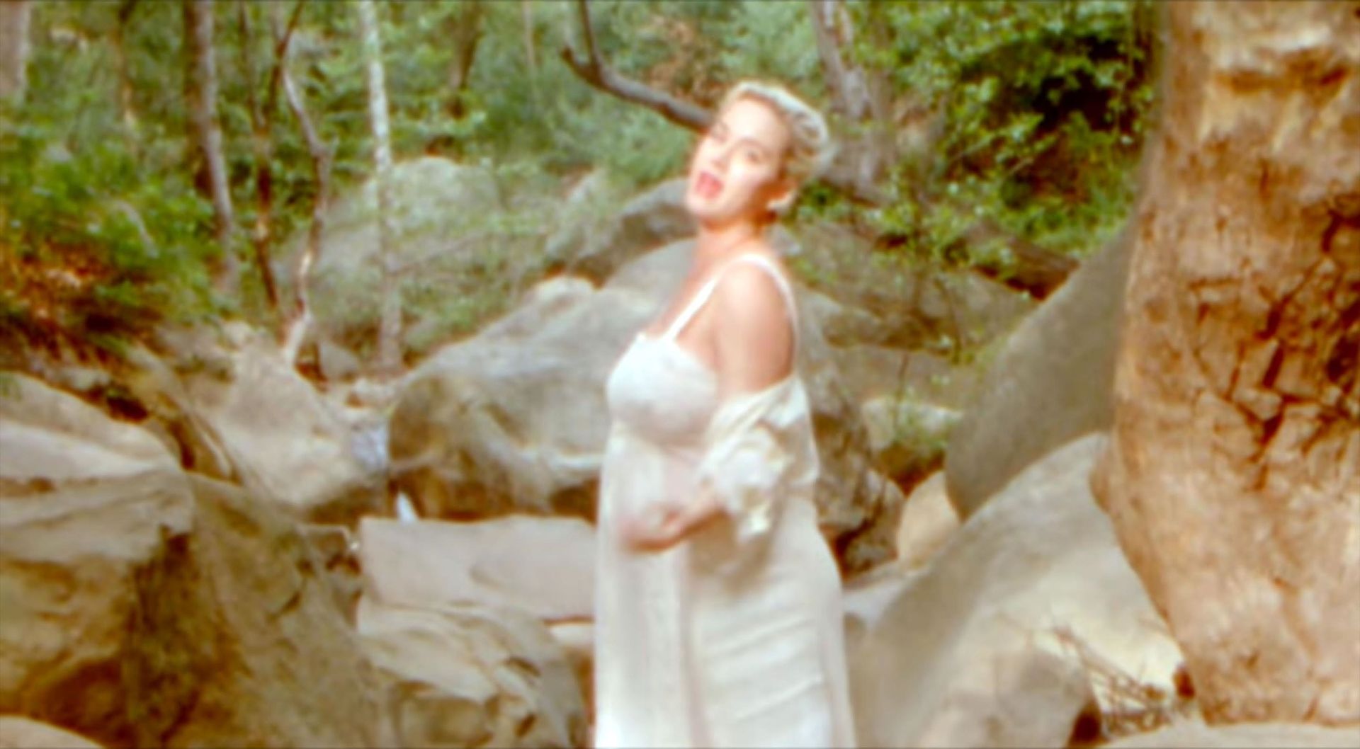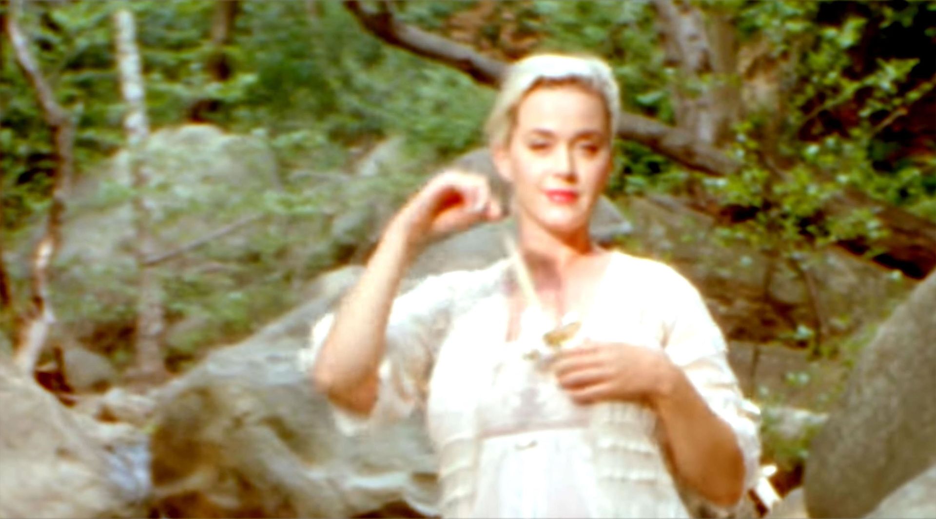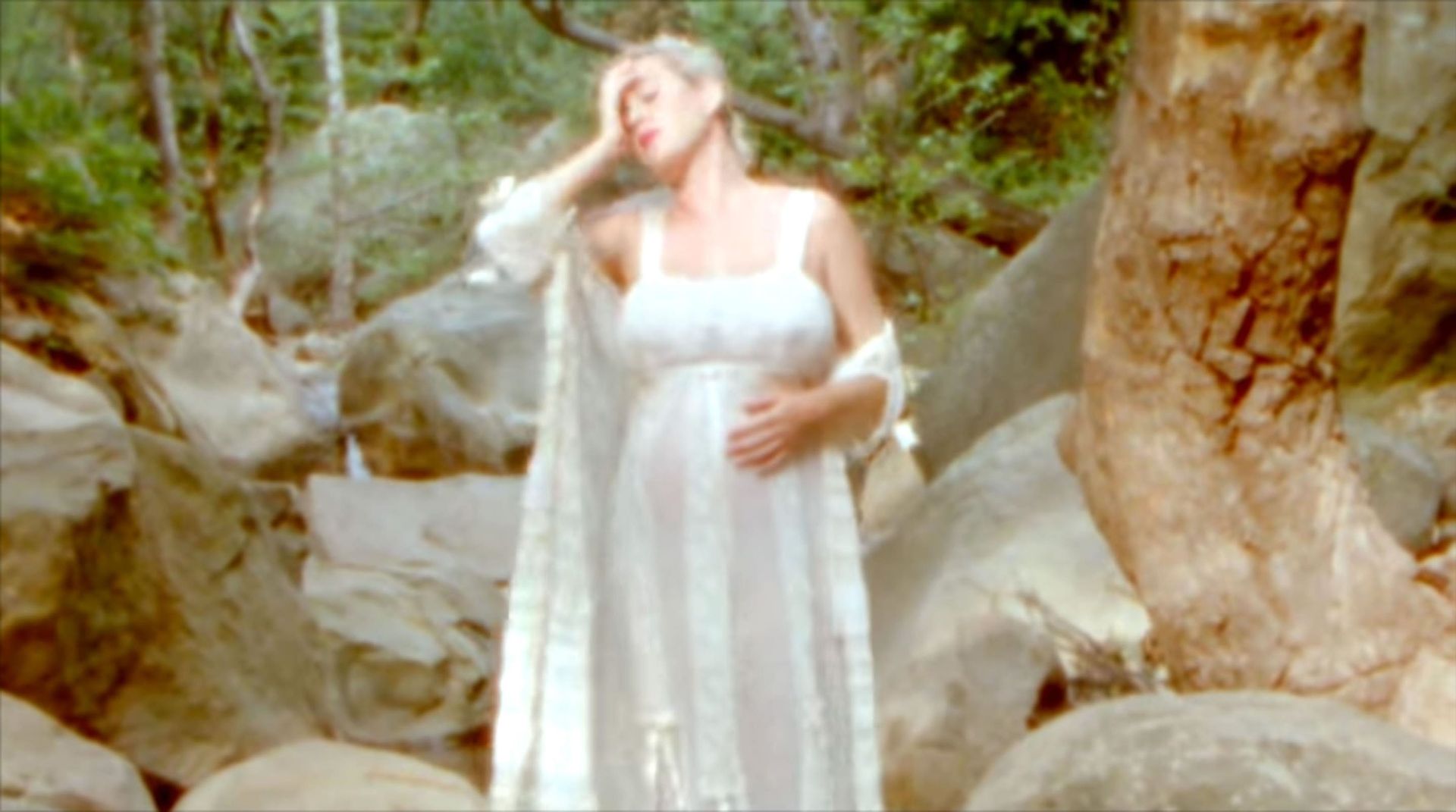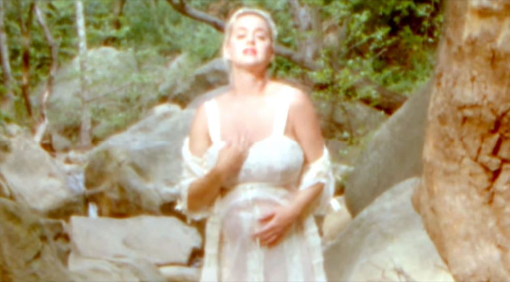 Кэти начинает видео, сидя среди живописного поля ромашек. В прозрачном льняном платье и подходящем кардигане, застегнутом чуть выше живота, Кэти затем показана стоящей у ручья. Она окунает палец ноги, затем заходит в воду и сбрасывает платье. Она со вкусом прикрывает грудь рукой, но демонстрирует камере свой обнаженный животик и спину.