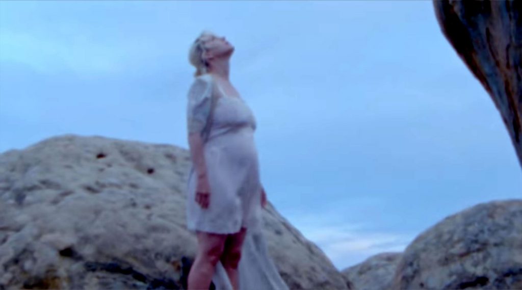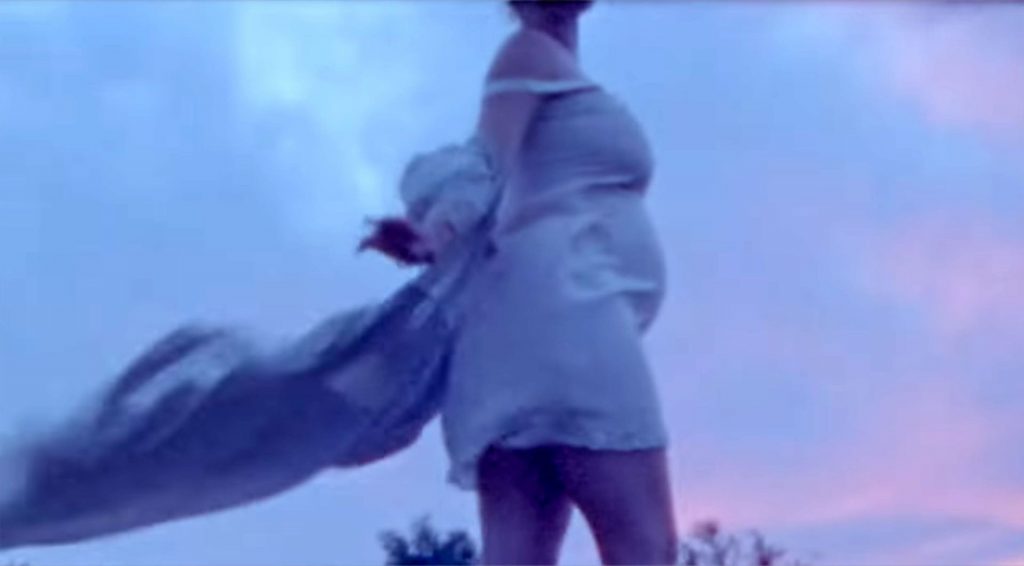 В почти трехминутном видео беременная певица надела романтичное белое льняное платье, а затем полностью разделась, открывая фанатам четкий вид на свой обнаженный, растущий животик.