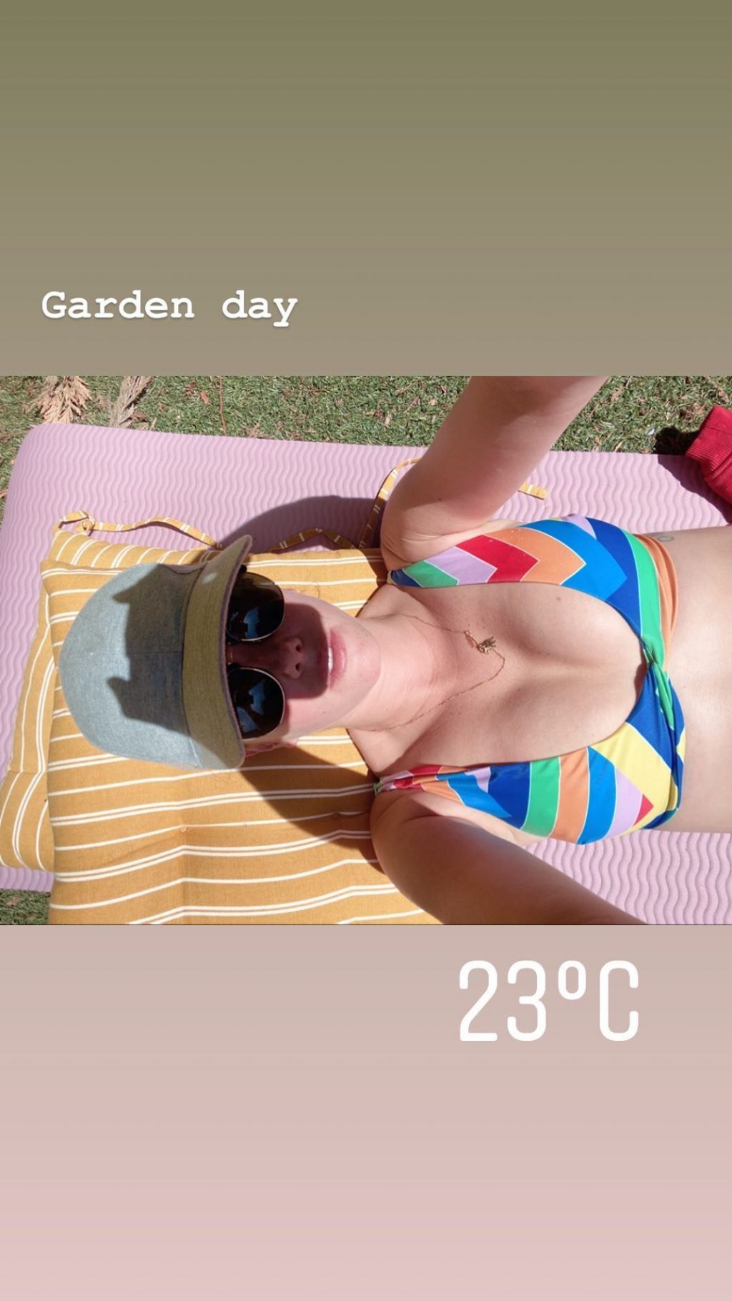 Актриса и звезда The Fappening Кая Скоделарио демонстрирует свои горячие сиськи, надевая бикини во время отдыха во дворе – Instagram, 19.05.2020.