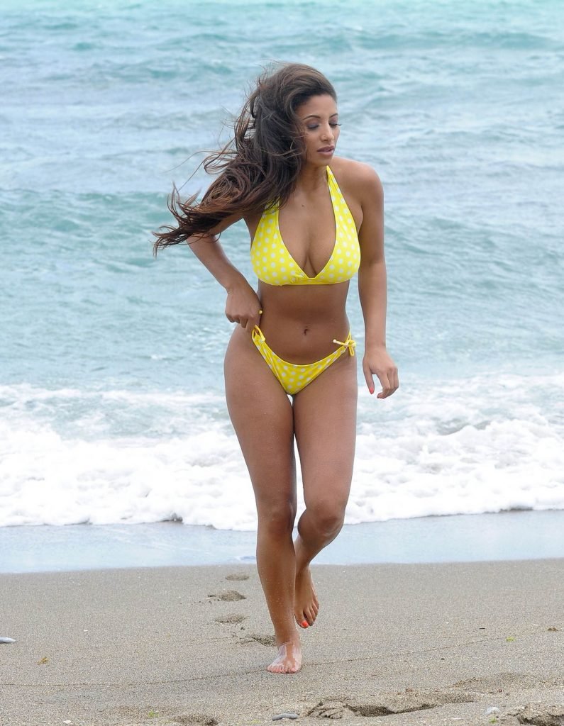 Участница Big Brother, звезда Ex on the Beach и модель Кейли Моррис демонстрирует своё идеальное тело в жёлтом бикини на пляже во время отпуска в Марбелье, Испания, 13.06.2018.