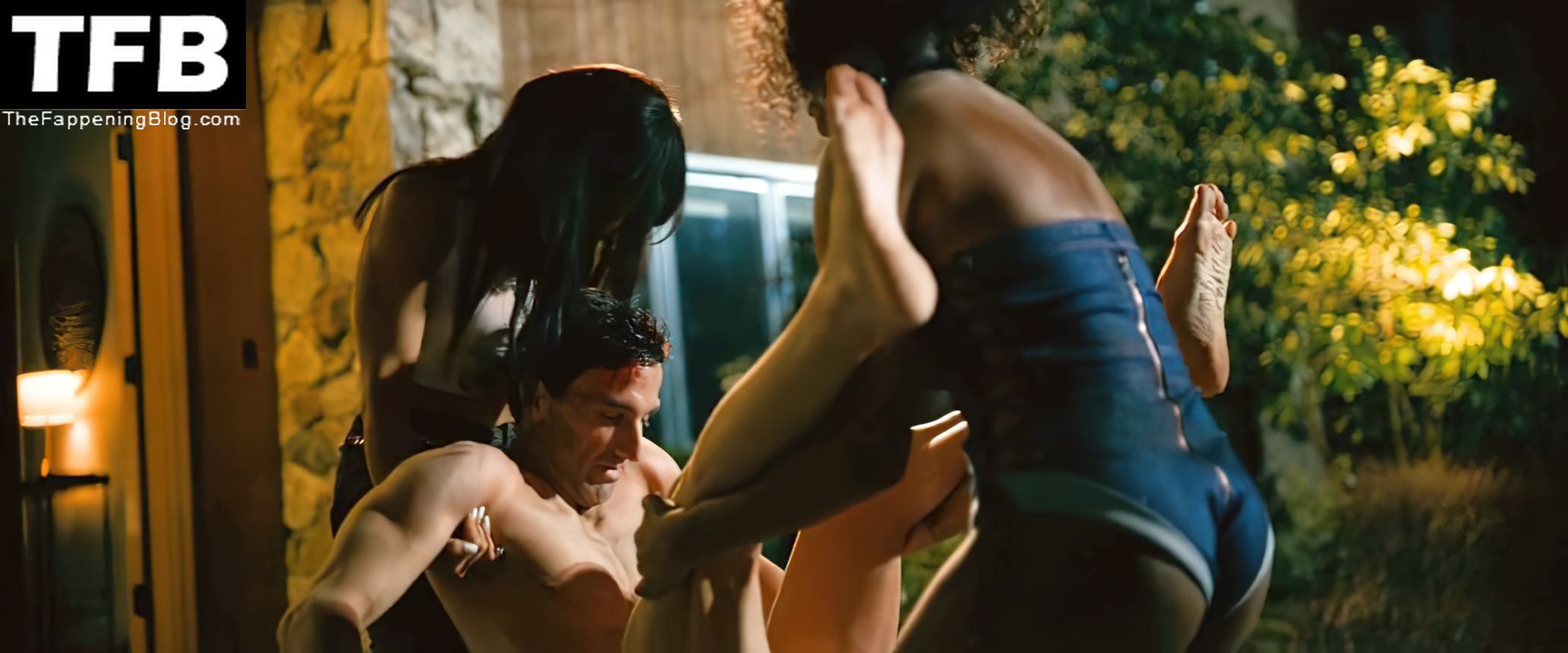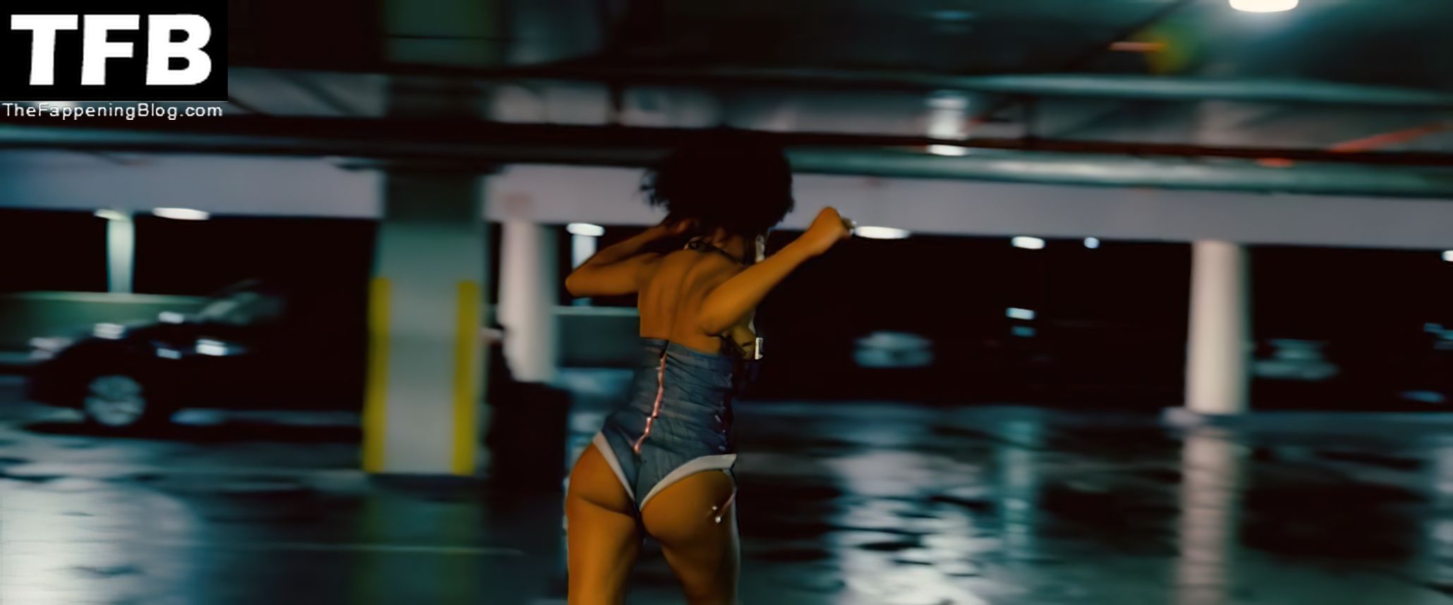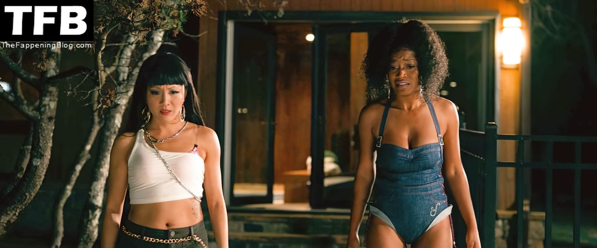 Кеке Палмер, известная по сериалам “Берлинская станция” и “Королевы крика”, одета в джинсовый боди в стиле синих джинсов с почти стринговой спинкой, показывая нам множество кадров с её ягодицами и декольте, приглашая Констанс Ву во двор, где на земле у бассейна лежит обнажённый мужчина без сознания, затем она наклоняется, чтобы поднять его, и они несут его к машине и садят на заднее сиденье, пока Лили Рейнхарт наблюдает, после чего начинают выносить его из машины в другом здании, Кеке наблюдает и паникует, а затем в конце концов убегает.