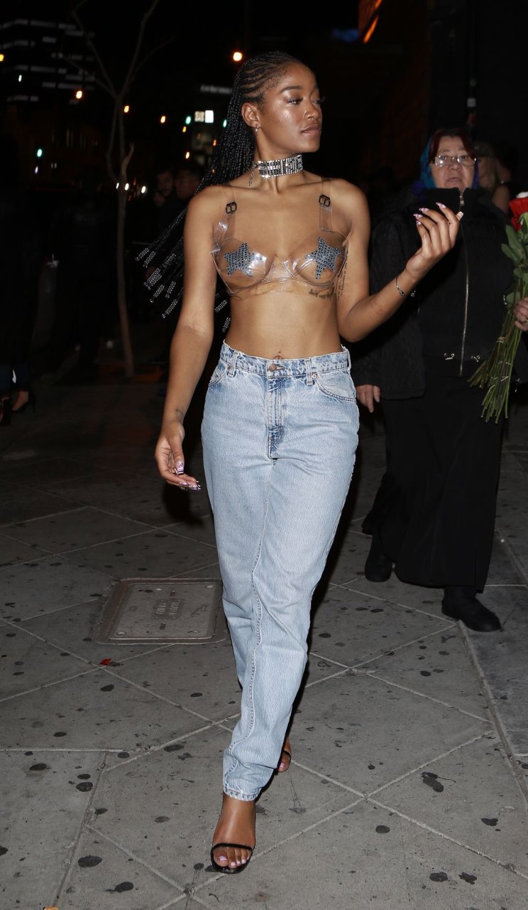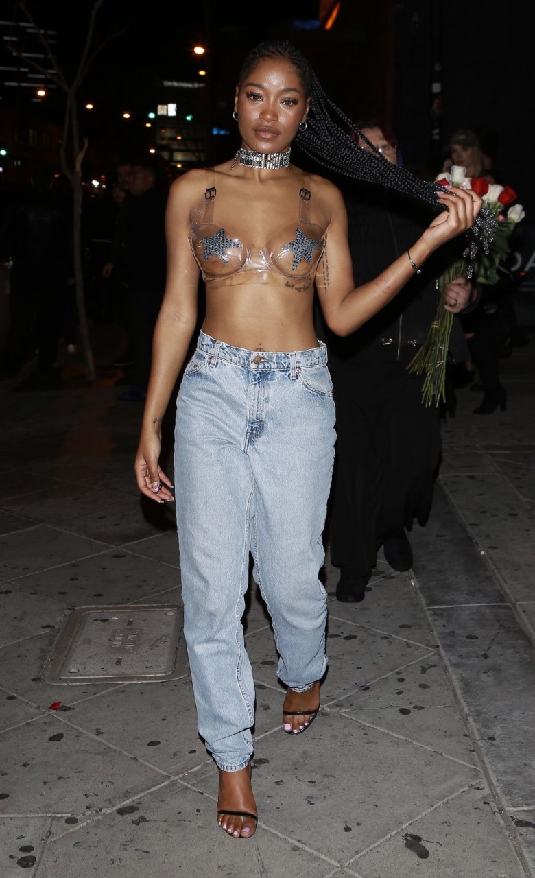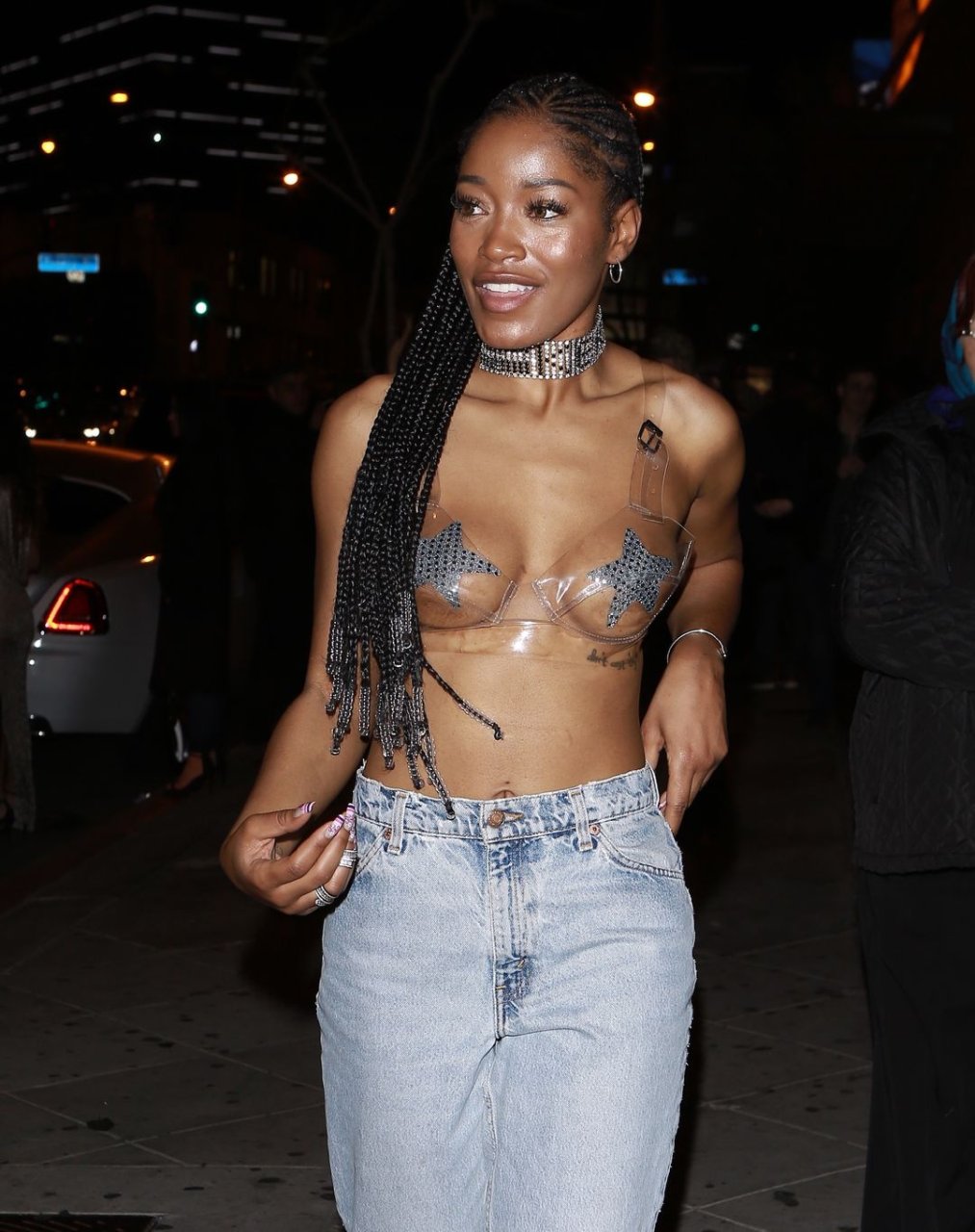 Keke Palmer носит пластиковый бюстгальтер со звездочками-пастисами в клубе 1 Oak в Вест-Голливуде, 17.01.2017. Лорен Кеяна «Кеке» Палмер — певица, автор песен, актриса (сериал Raymond & Lane) и телеведущая из Харви, Иллинойс. Возраст: 23 года (родилась 26 августа 1993).