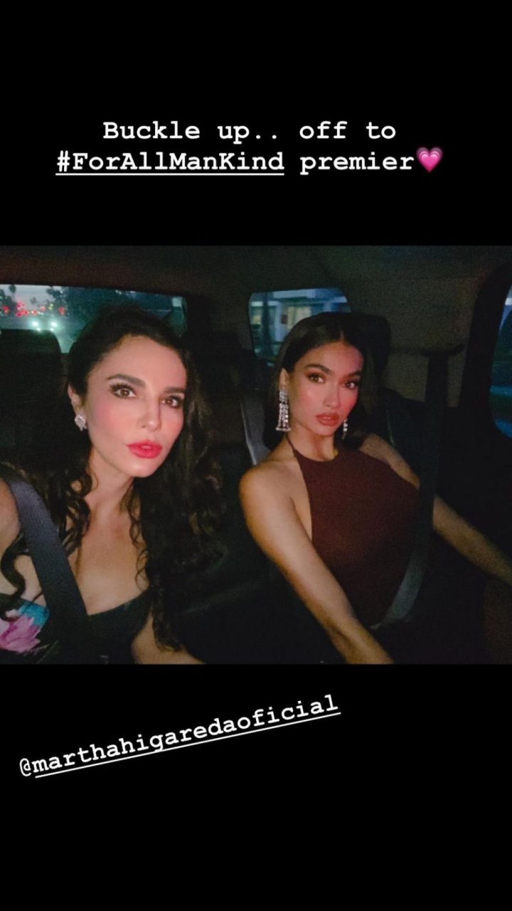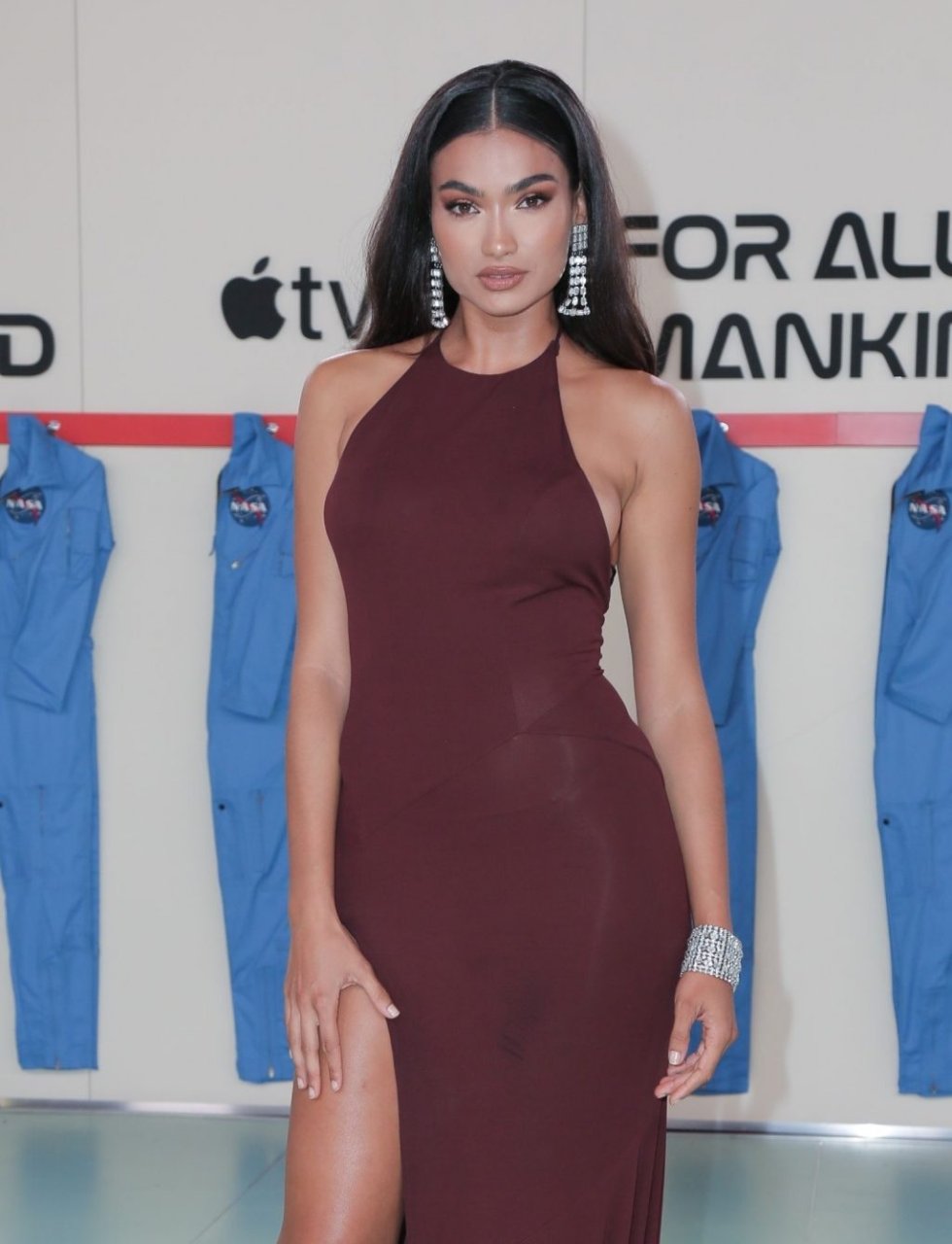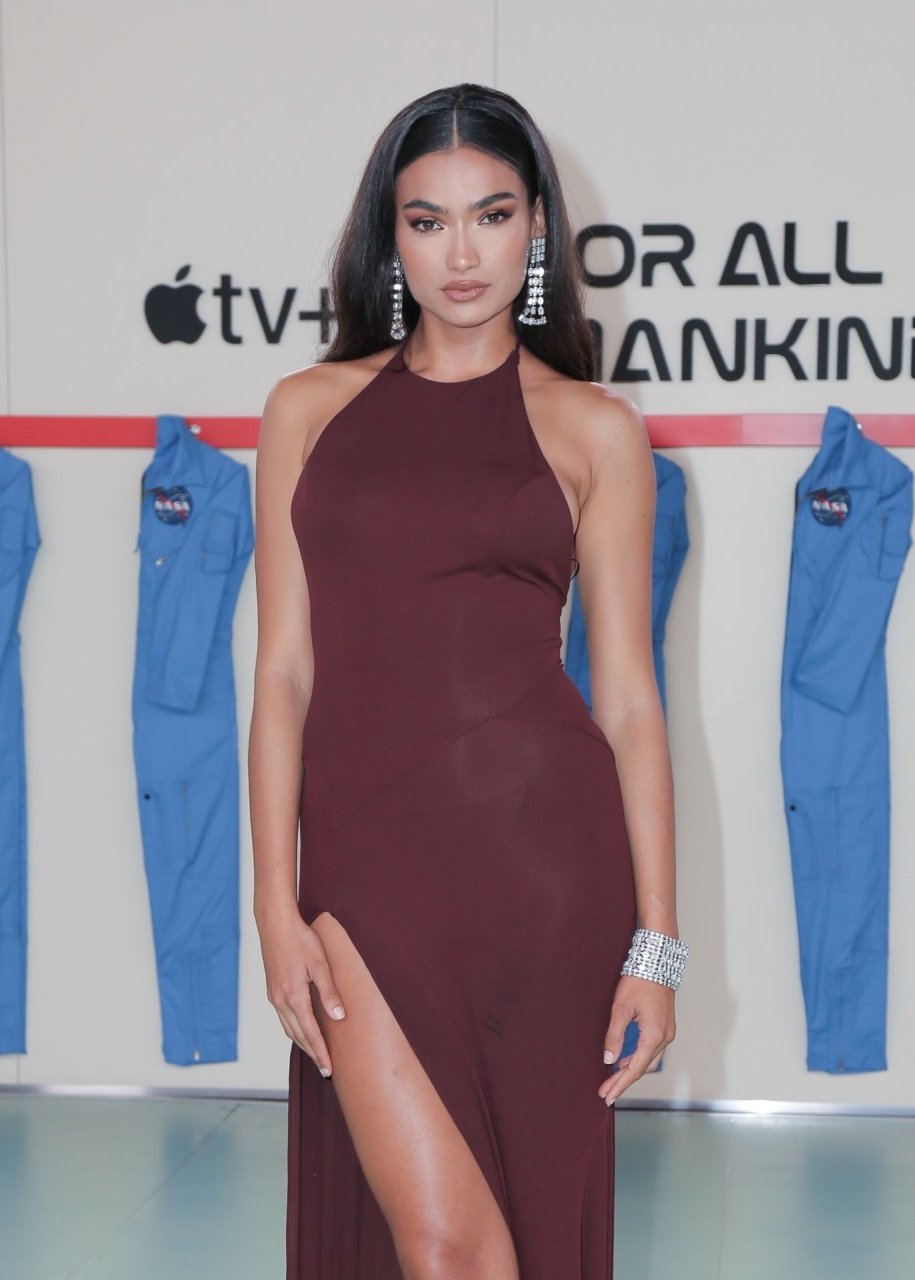 Длинноногая модель Келли Гейл была замечена в вишневом платье вместе с Джоэлом Киннаманом на мировой премьере сериала Apple TV+ «Для всего человечества» в театре Regency Village в Вествуде, 15.10.2019.