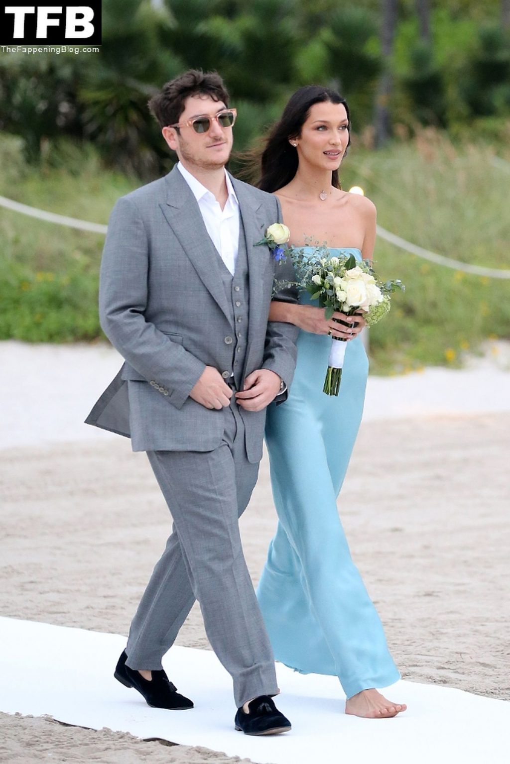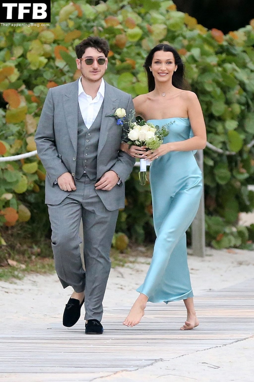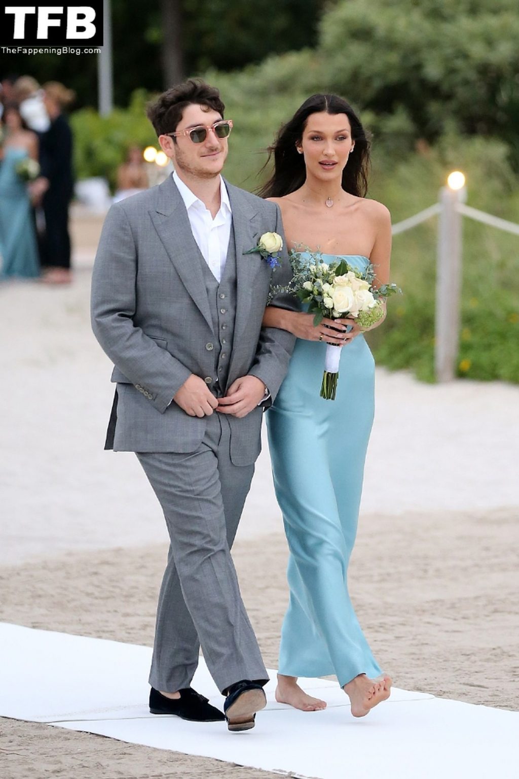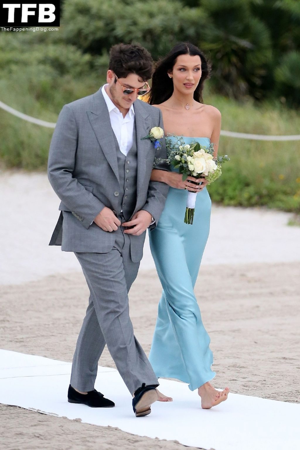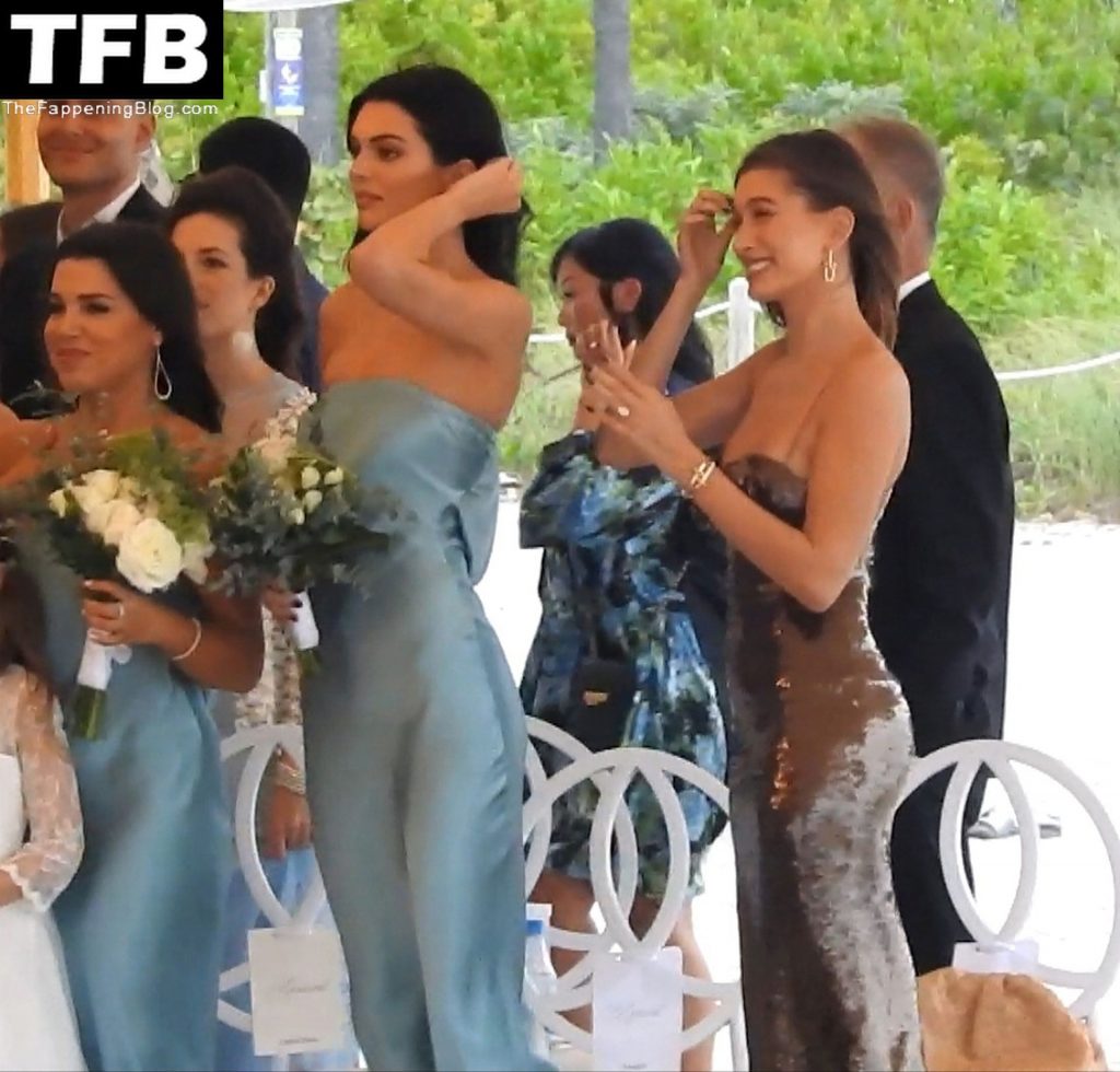Модели Кендалл Дженнер и Белла Хадид выглядят сияющими в роли босоногих подружек невесты на пляжной свадьбе в Майами, в то время как Хейли Бибер присутствует на мероприятии без спутника.