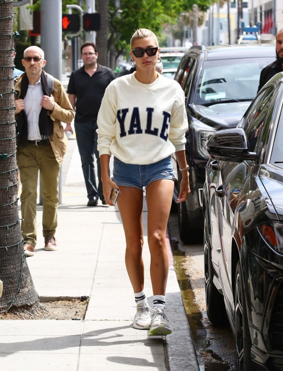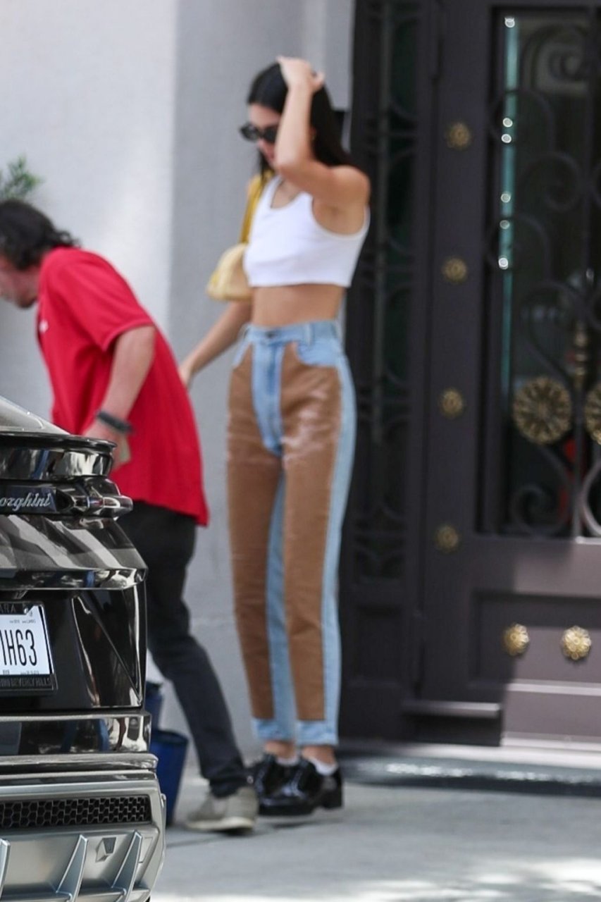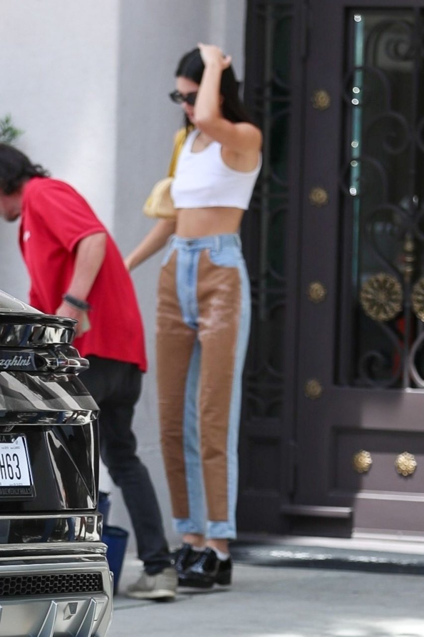 Кендалл Дженнер без бюстгальтера привлекла внимание, демонстрируя невероятно подтянутый живот, пока сексуальная модель делала покупки с Хейли Бибер (Болдуин) в Беверли-Хиллз, 11.06.2019. Хейли показала свои подтянутые ноги в паре очень коротких джинсовых шорт.