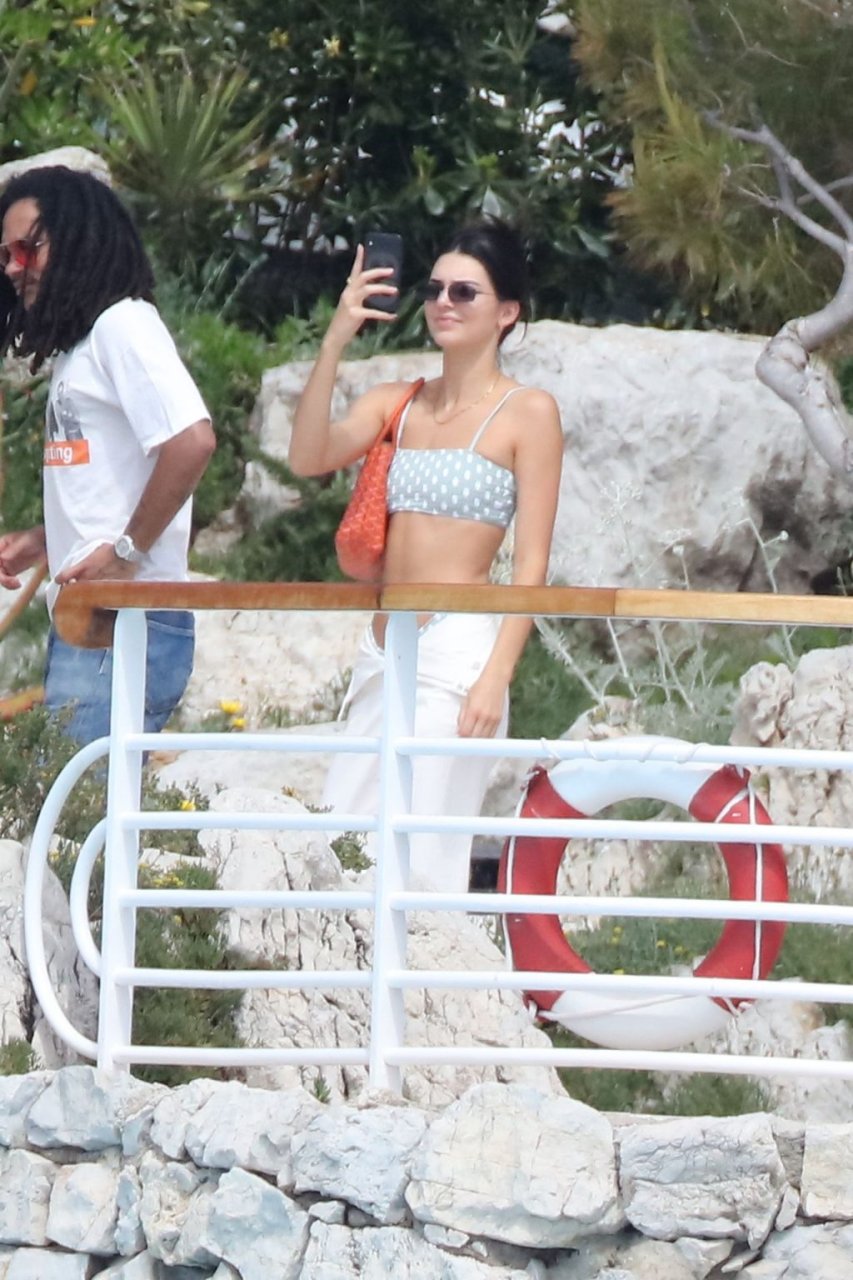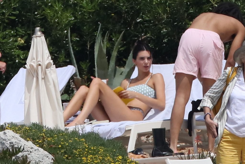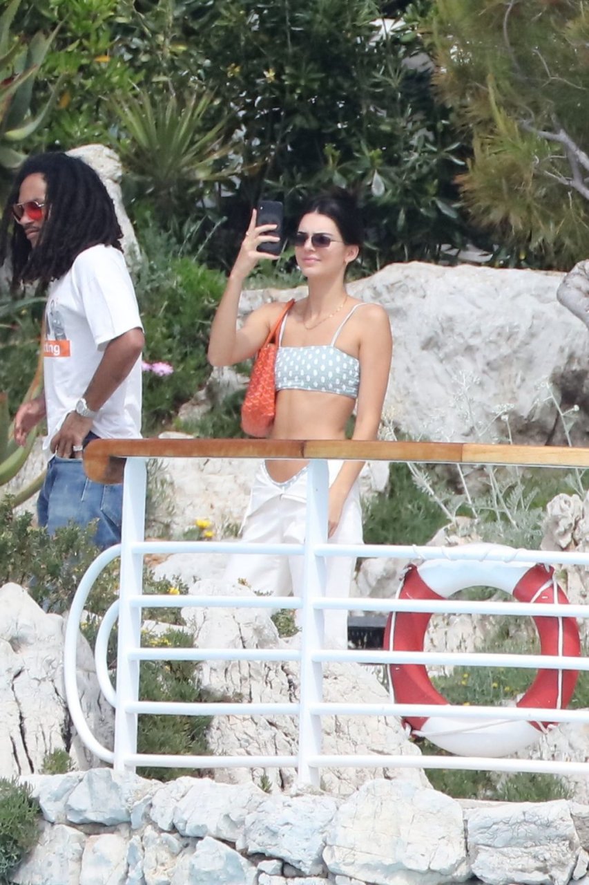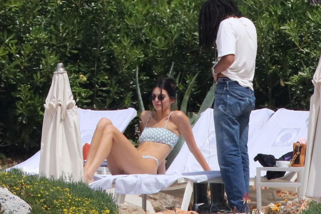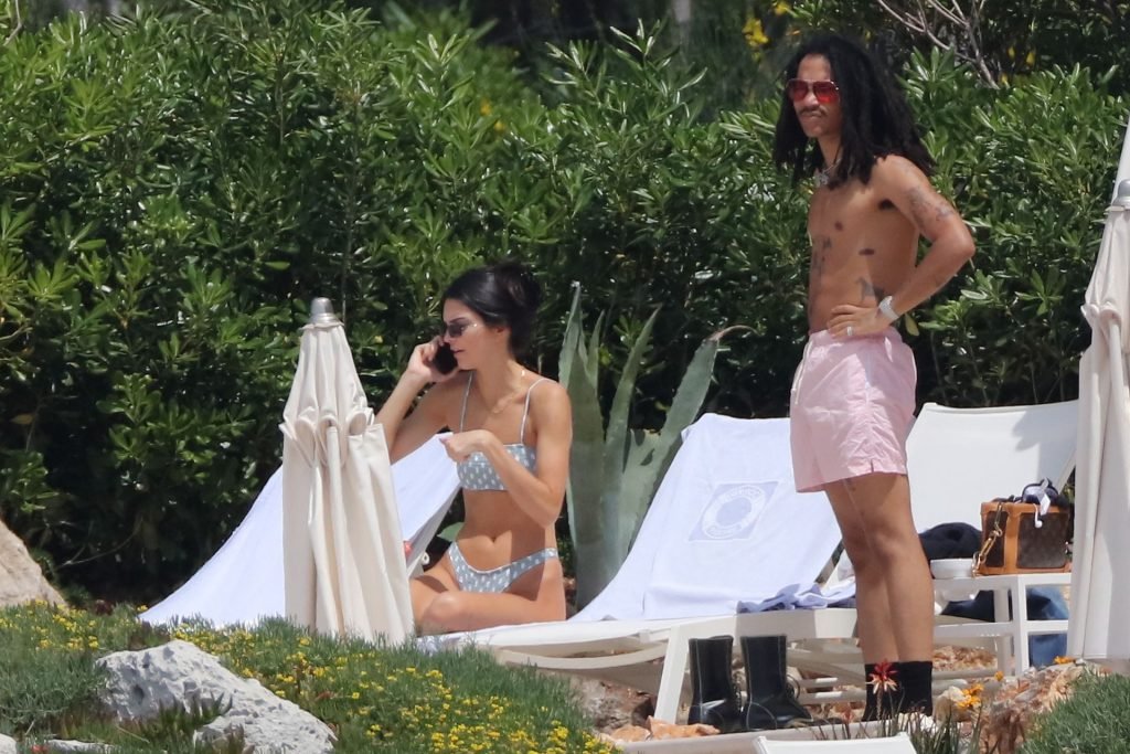 Модель Кендалл Дженнер была сфотографирована в купальнике в горошек, отдыхая вместе с моделью Лукой Саббатом в отеле Hotel du Cap-Eden-Roc во время 72-го Каннского кинофестиваля, 23.05.2019.