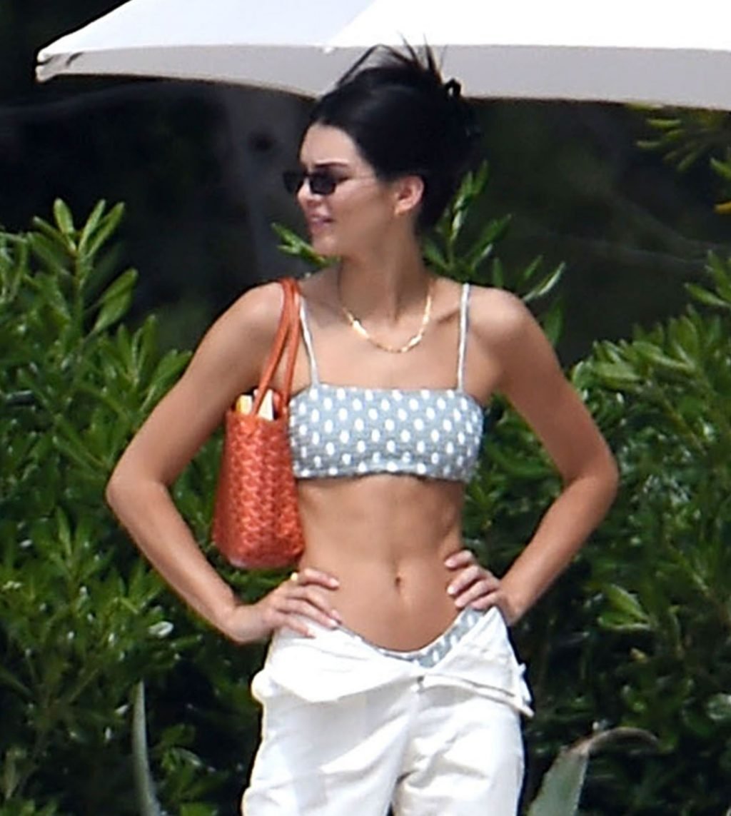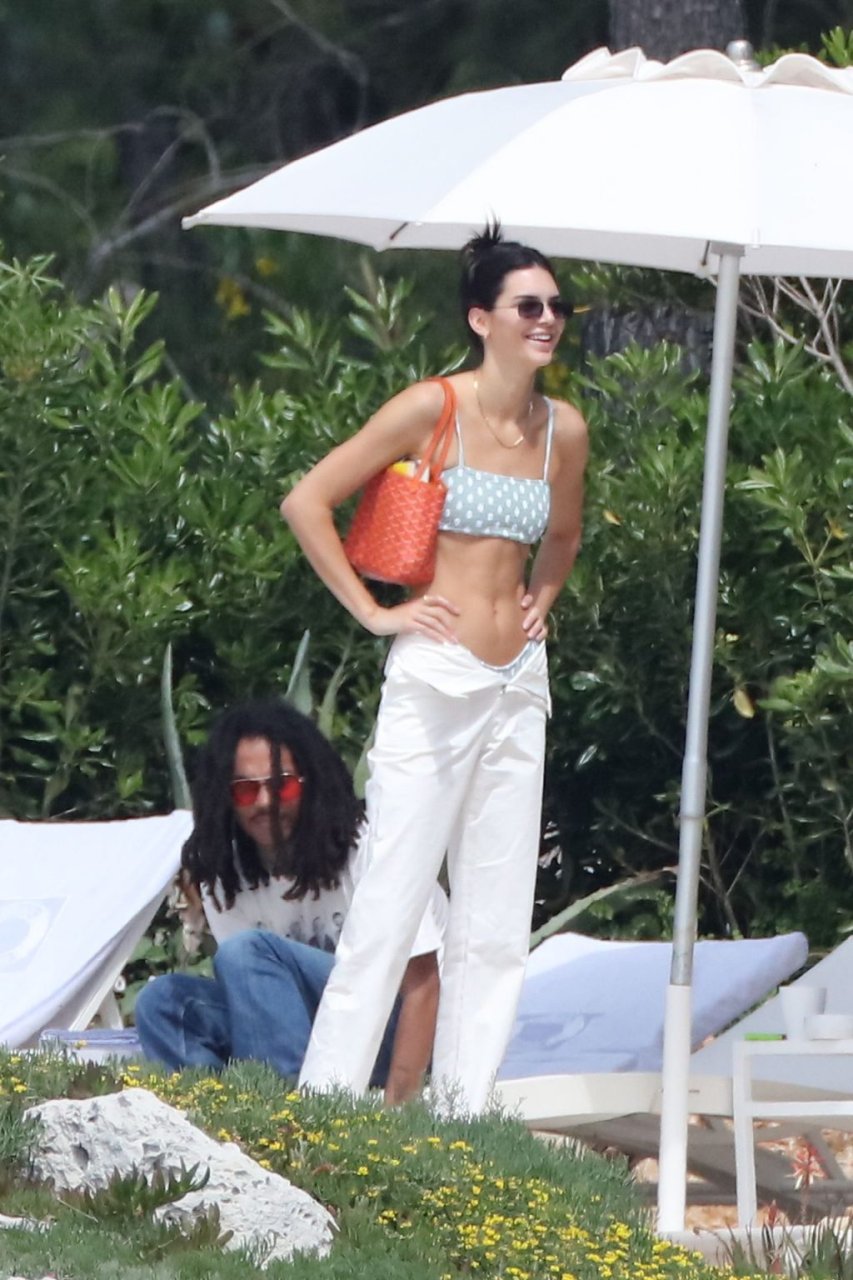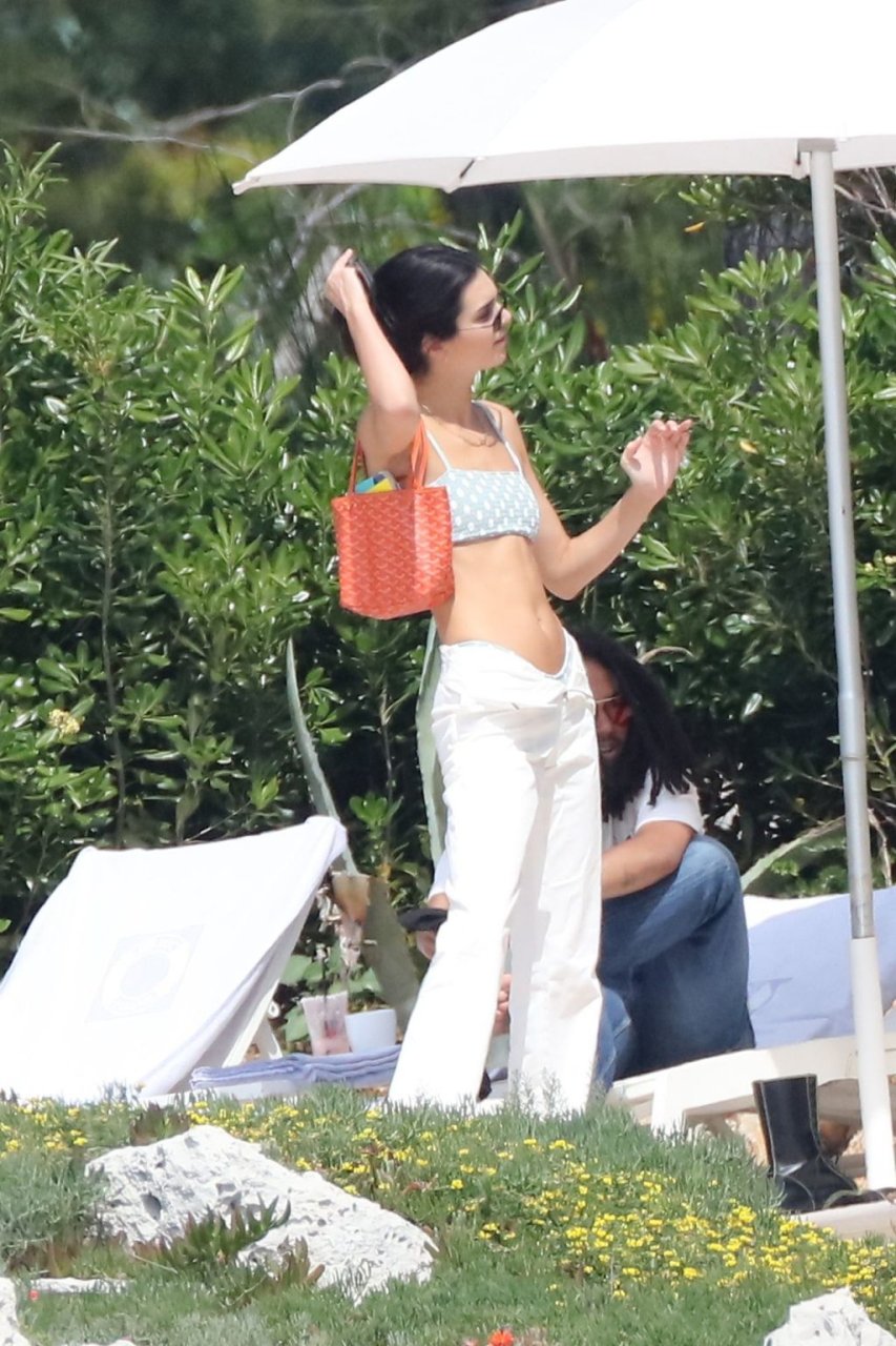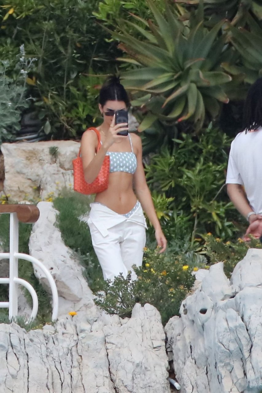Модель Кендалл Дженнер была сфотографирована в купальнике в горошек, отдыхая вместе с моделью Лукой Саббатом в отеле Hotel du Cap-Eden-Roc во время 72-го Каннского кинофестиваля, 23.05.2019.