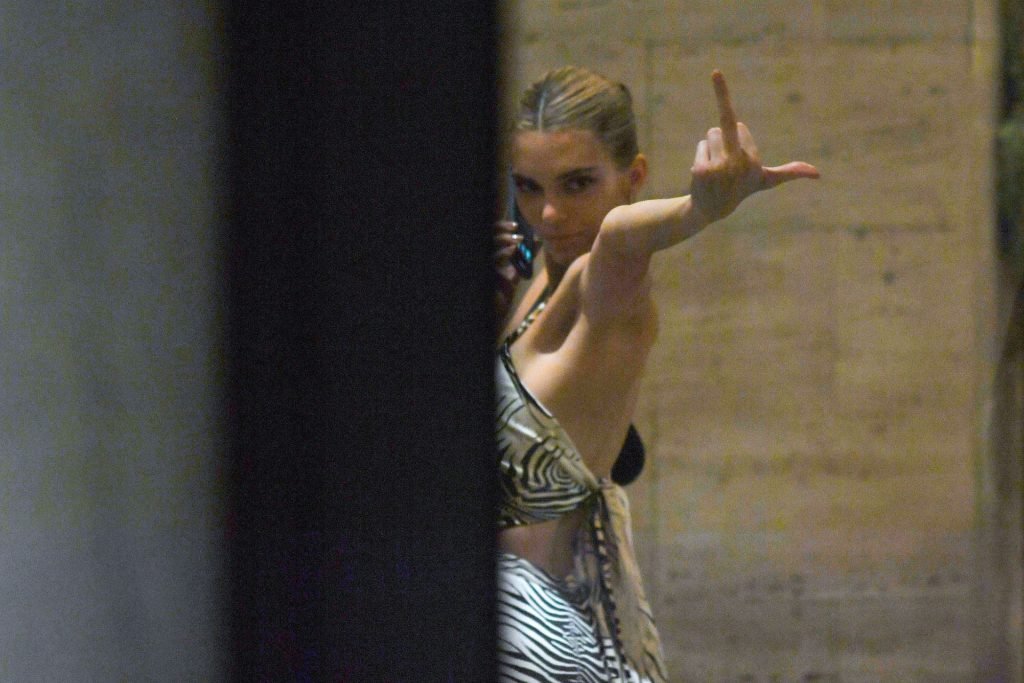 Модель Кендалл Дженнер была замечена, показывающей средний палец во время Недели моды в Милане, 20.09.2019.